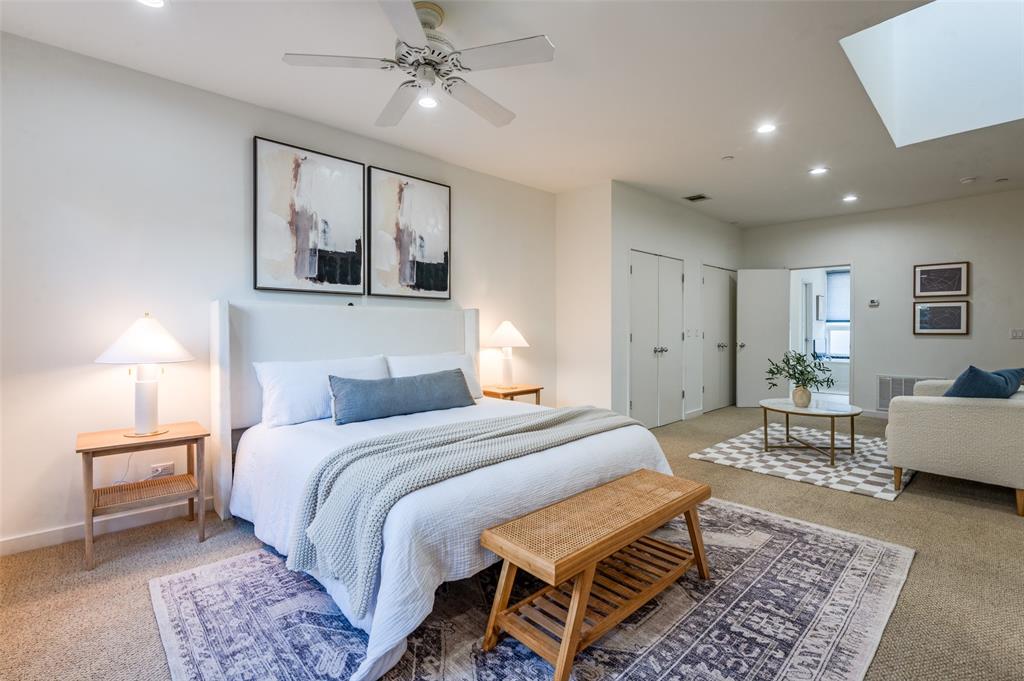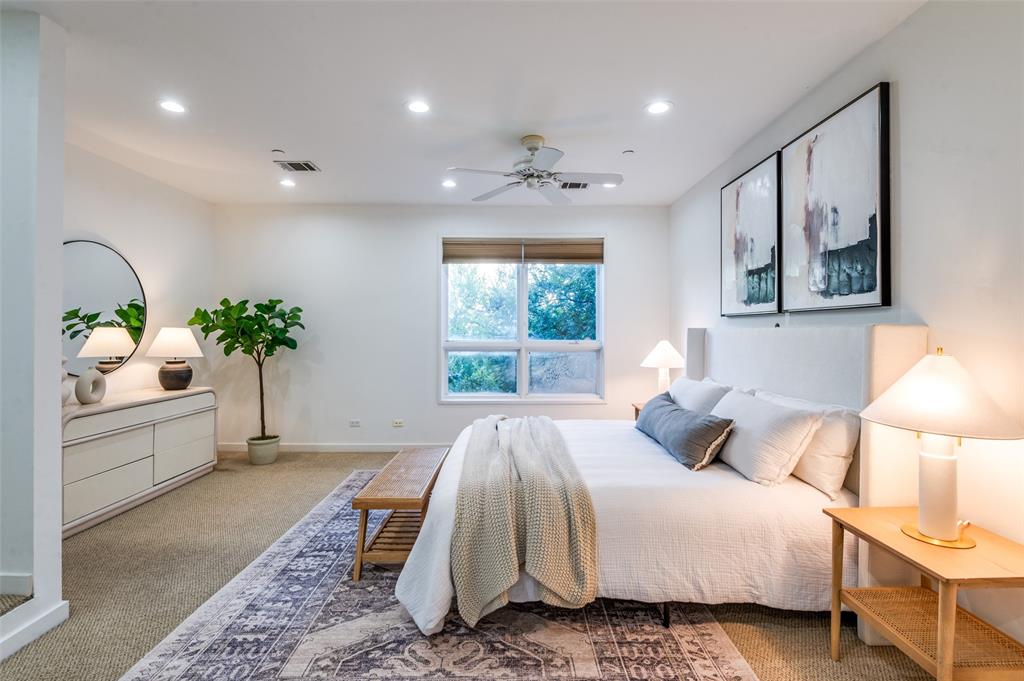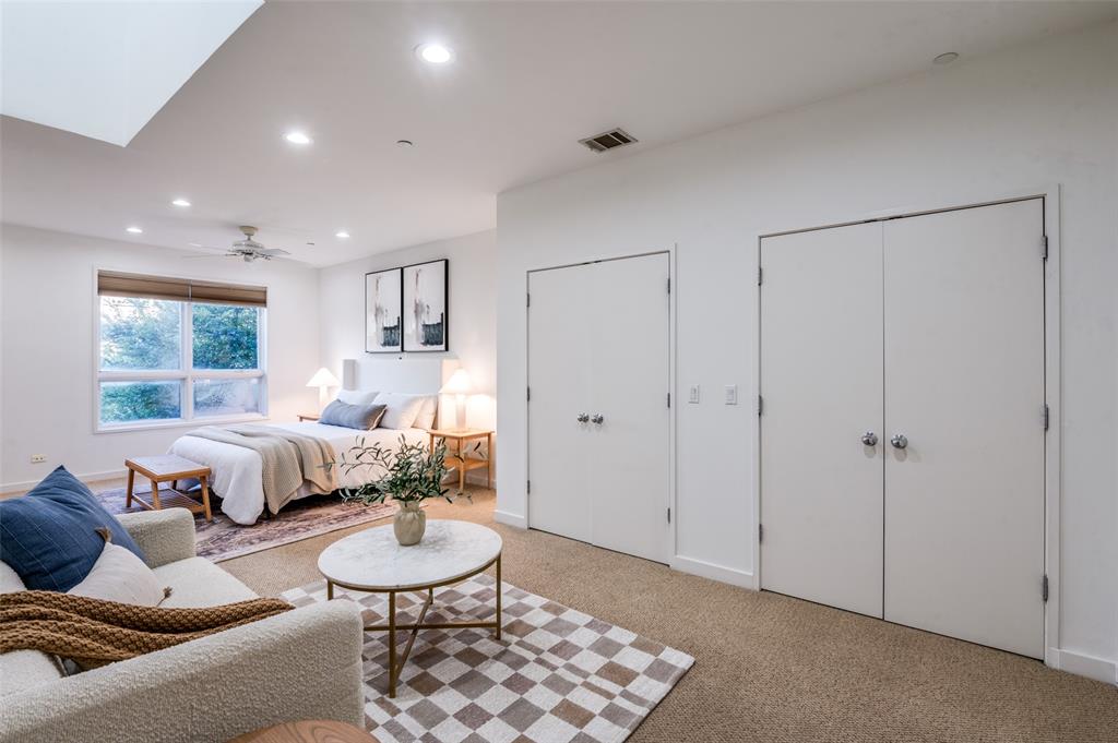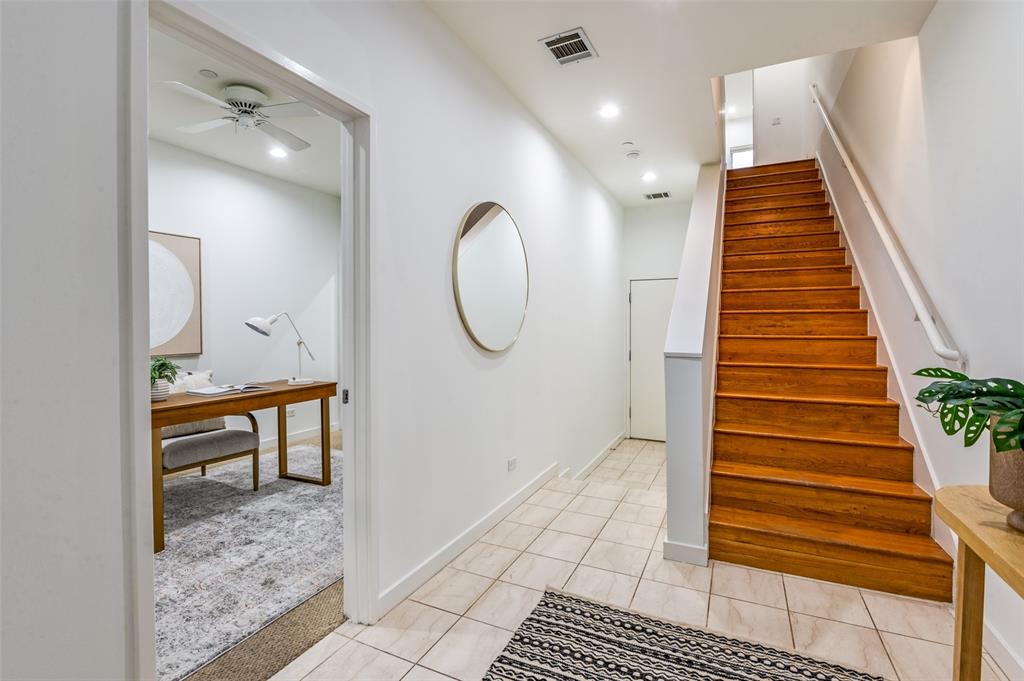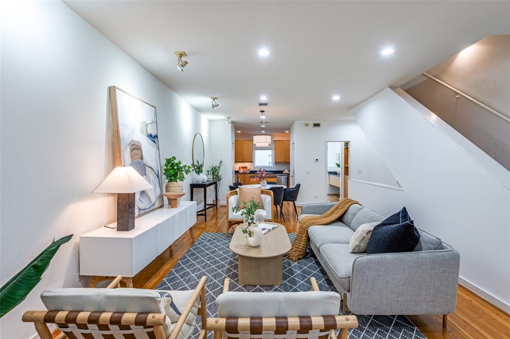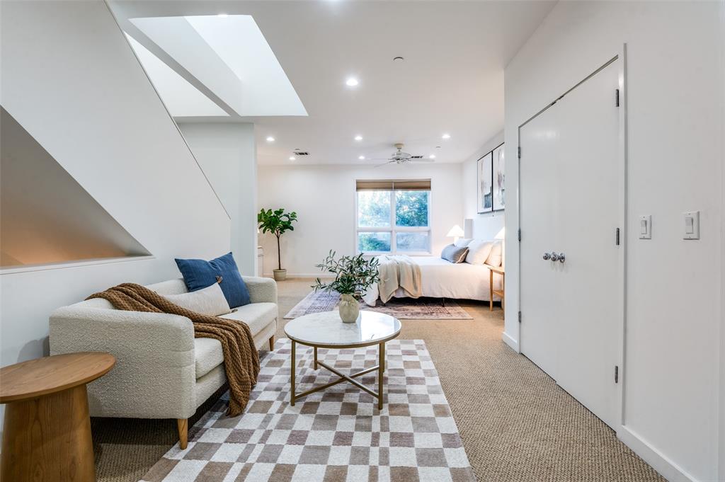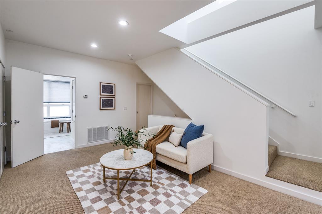 Iconic State Thomas townhome just a few doors down from trendy coffee shops, restaurants, fitness studios, Griggs Park, and even Whole Foods. Let your vibrant walkable lifestyle begin in this 3 story home with one of the best rooftop views in Dallas. Open the living room Juliet balcony and enjoy the lively tree-lined streets of State Thomas. The ground level consists of an attached 2 car garage, guest bedroom with en-suite and foyer. Second level is all living space, kitchen and large half-bath. The primary suite makes up the entire third floor and includes a flex space, laundry room, additional storage closet and fully updated ensuite. Take the stairs from your bedroom right up to the fourth level rooftop for un-beatable panoramic views of the Downtown Dallas skyline. Perfect setup for indoor and outdoor entertaining! NO HOA, use your property to suit your own needs.