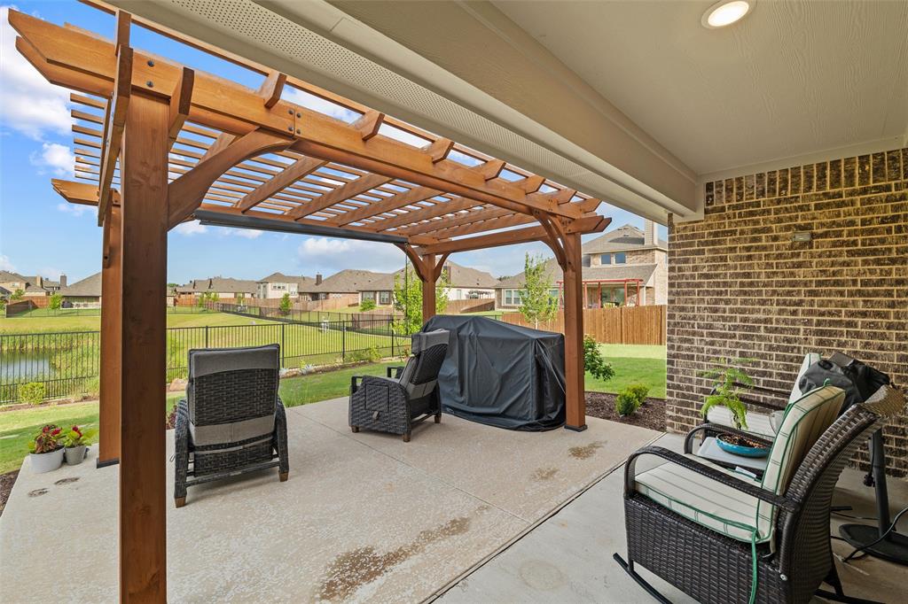 Step outside to your private backyard oasis—complete with an extended patio, stylish pergola, built-in fire pit, and tranquil views of the pond and fountain just beyond your fence. It’s the ideal space for entertaining or simply unwinding year-round.