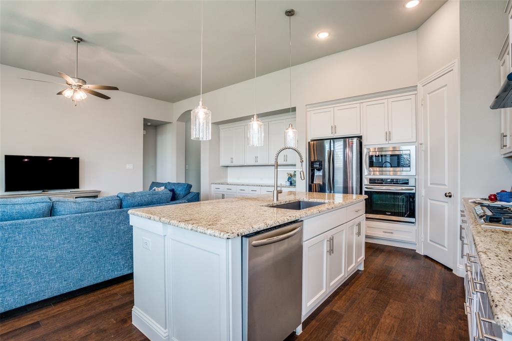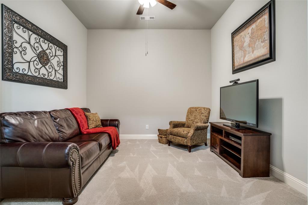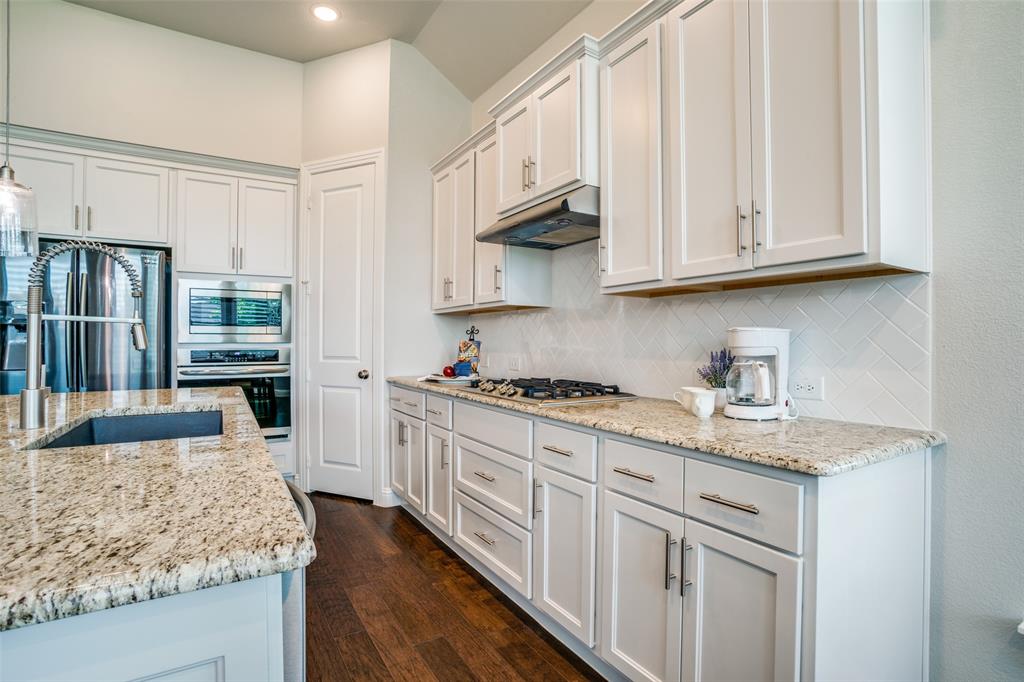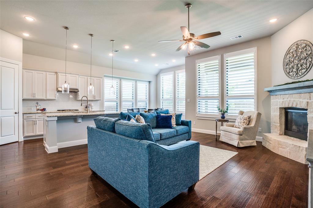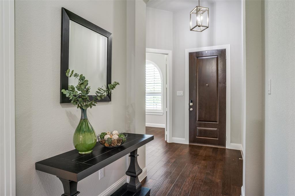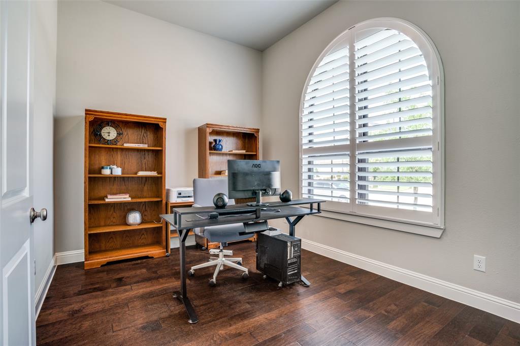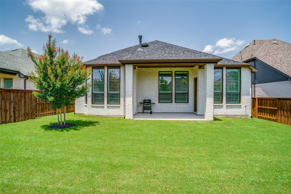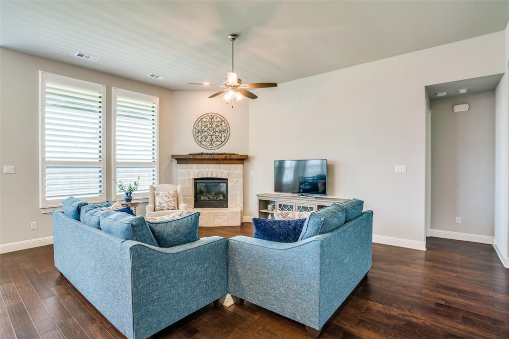 Discover the perfect blend of luxury and convenience in this remarkable single-story residence featuring the highly sought-after Denton floor plan by Highland Homes. Nestled in the master-planned community of Mantua Point in Van Alstyne, this property offers an unparalleled lifestyle with resort-style amenities such as a pool, splash pad, miles of hiking and biking trails, serene lakes, and a vibrant community center, all while ensuring easy access to schools and Highway 75 for a seamless commute. Step inside to an open floor plan where functionality meets fine design, highlighted by rich hardwood floors stretching through the living, dining, kitchen, office, and all major traffic areas. Bask in the abundance of natural light as it streams through plantation shutters, casting a warm, inviting glow throughout the home. The spacious interior is thoughtfully designed to accommodate both intimate gatherings and grand entertaining, with every room exuding elegance and comfort. The heart of the home is the gourmet kitchen featuring sleek countertops, an abundance of modern cabinetry, and top-of-the-line appliances, perfect for culinary creativity. Adjacent to the kitchen, the dining space, with a charming window seat, offers an inviting space for hosting. Unwind in the privacy of your media room, an ideal retreat for cinematic experiences or serene relaxation. An oversized, double door, hall closet provides convenient storage for seasonal decorations and more. The home's exterior matches its interior allure with a professionally designed and meticulously maintained lawn. The light-colored brick exterior, accented by a cedar-stained garage door and bronze-finished windows, creates striking curb appeal. This property presents a rare opportunity to own a beautifully appointed home in one of Van Alstyne's premier developments. Enjoy an unparalleled lifestyle in Mantua Point, where luxury meets community and convenience.