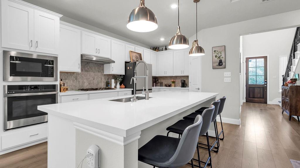 This IS the jewel of the neighborhood with over $70k in upgrades on a premium lot! There are so many great things to say about how amazing this home really is! A very well built Taylor Morrison design, so crisp and clean with everything in its place. A host of upgrades places make a for a perfect place to call home. Extra large lot with stone retaining wall, and a backyard built for entertaining, extended screened patio with room to move and plenty of room to cook. Relax on the covered front porch in your easy chair and enjoy the view. Enter the home with a soaring staircase to the left, and home office with French doors on the right. The living room is huge with a cozy gas log fireplace and open to the kitchen so you can watch all the action. Enjoy preparing an exquisite meal with tons of counterspace, and center island as guests watch from the breakfast bar. Upgraded appliance package featuring convection oven, microwave, five burner gas cooktop, and exterior venting hood. The primary master retreat is nestled downstairs in the rear of the home. En suite styled bathroom with glass enclosed shower, soaking tub, dual sink vanity, and huge walk in wardrobe with Closets by Design to organize it all. The upstairs features three way bedroom split, two full bathrooms, plus a huge bonus flex room would make a great second living room or studio. Truly something for everyone! Make your private appointment now!