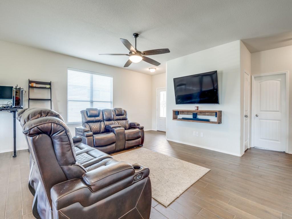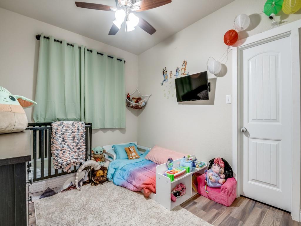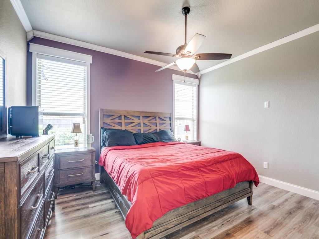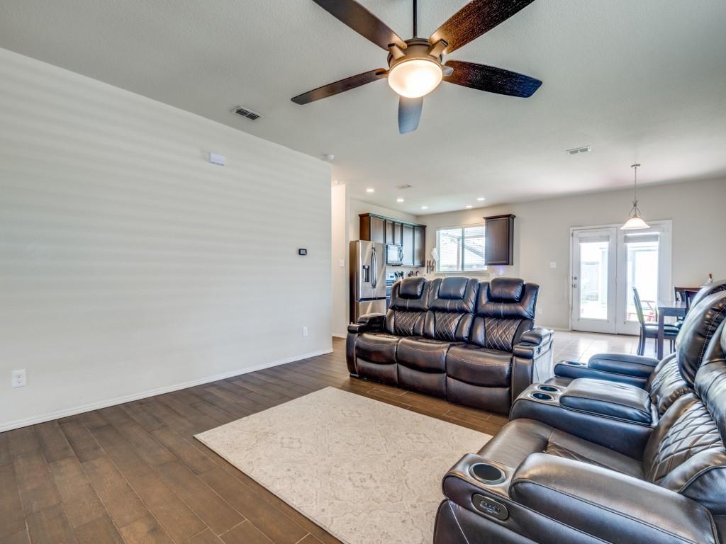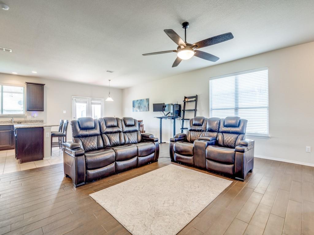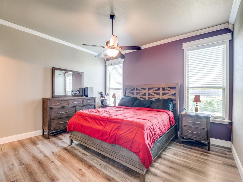 Ready for Move In! The Open floor plan floor has been upgraded with wood grain flooring tile and decorative ceiling fan. The kitchen dishwasher has been replaced with Stainless. The master suite upgraded with vinyl plank floor, slate floor and double sinks enhanced master bath and features decorative paint. Second and third bedroom are split and one bedroom also has the vinyl plank floor other with carpet. Outside the HOA Approved Shed and a garden area.