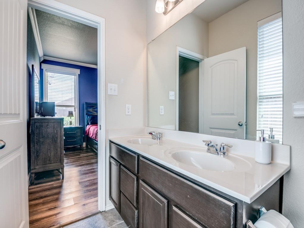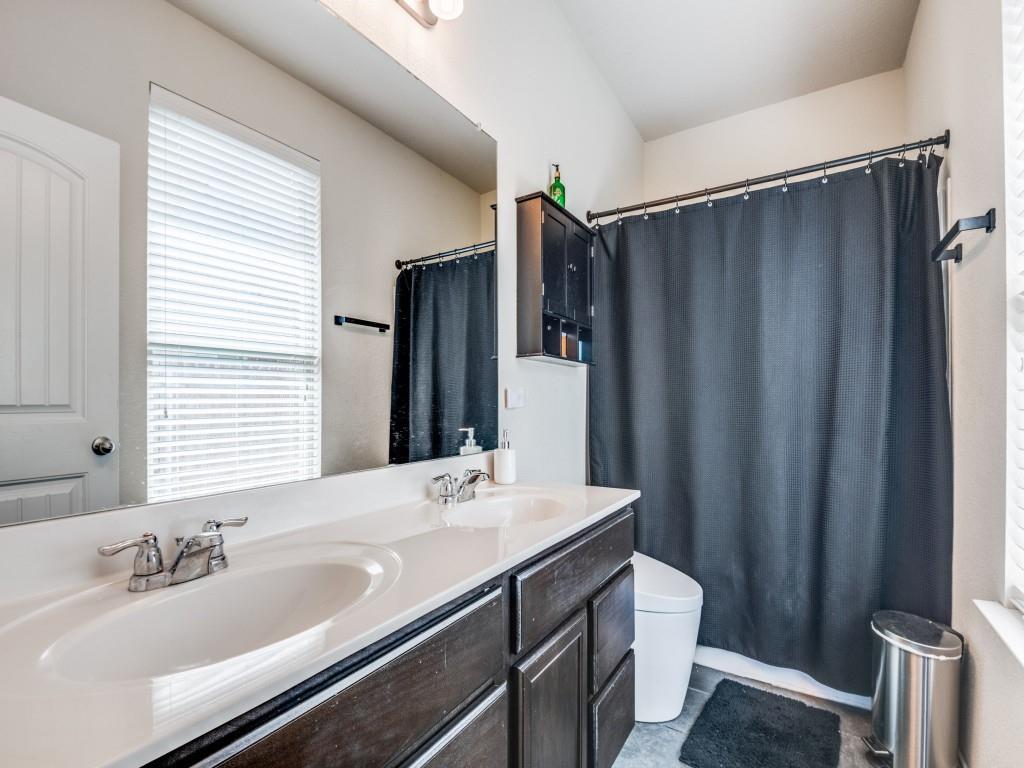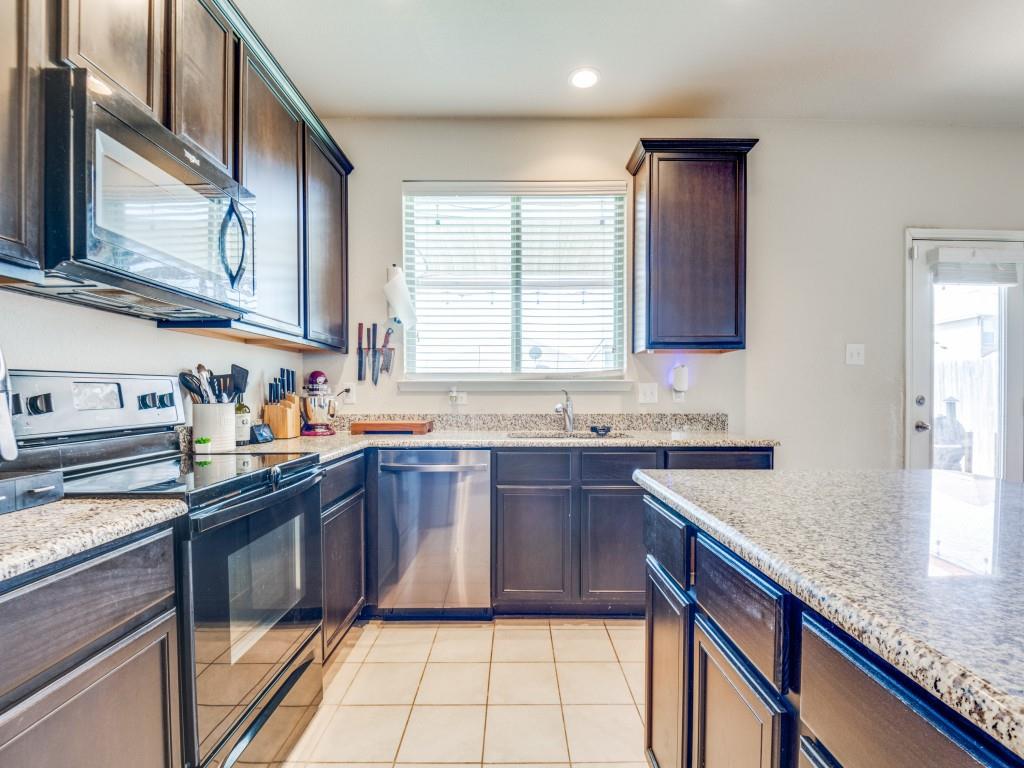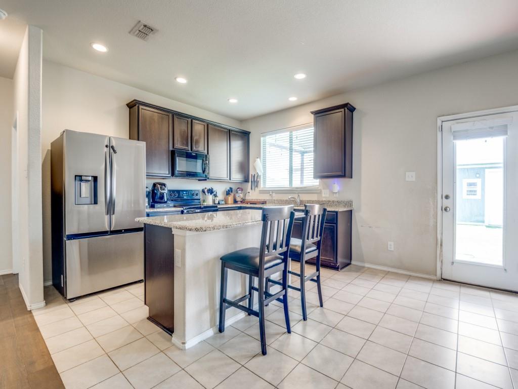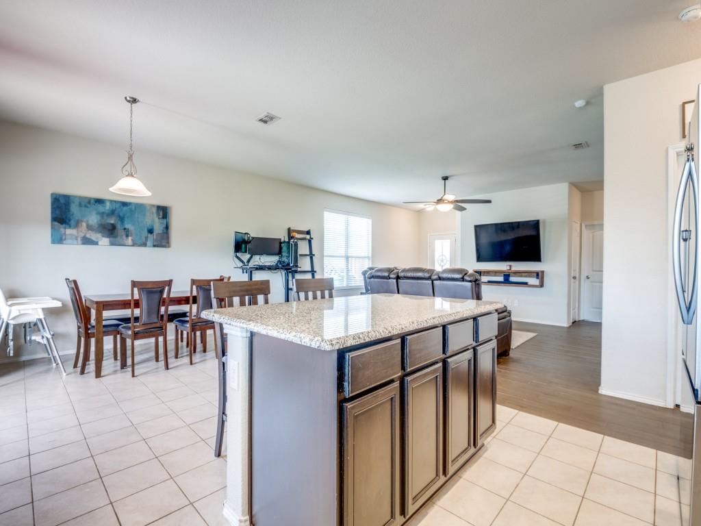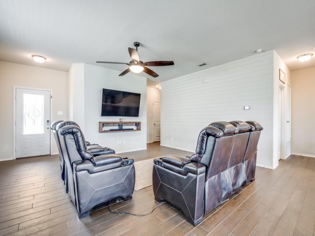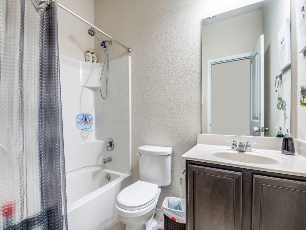 Ready for Move In! The Open floor plan floor has been upgraded with wood grain flooring tile and decorative ceiling fan. The kitchen dishwasher has been replaced with Stainless. The master suite upgraded with vinyl plank floor, slate floor and double sinks enhanced master bath and features decorative paint. Second and third bedroom are split and one bedroom also has the vinyl plank floor other with carpet. Outside the HOA Approved Shed and a garden area.