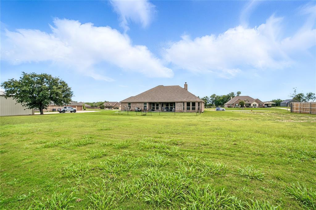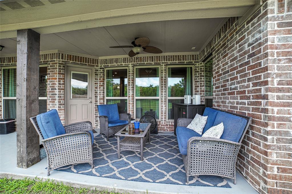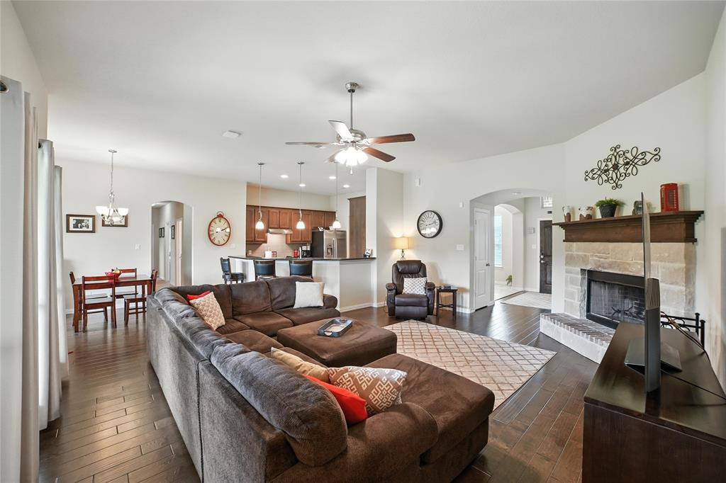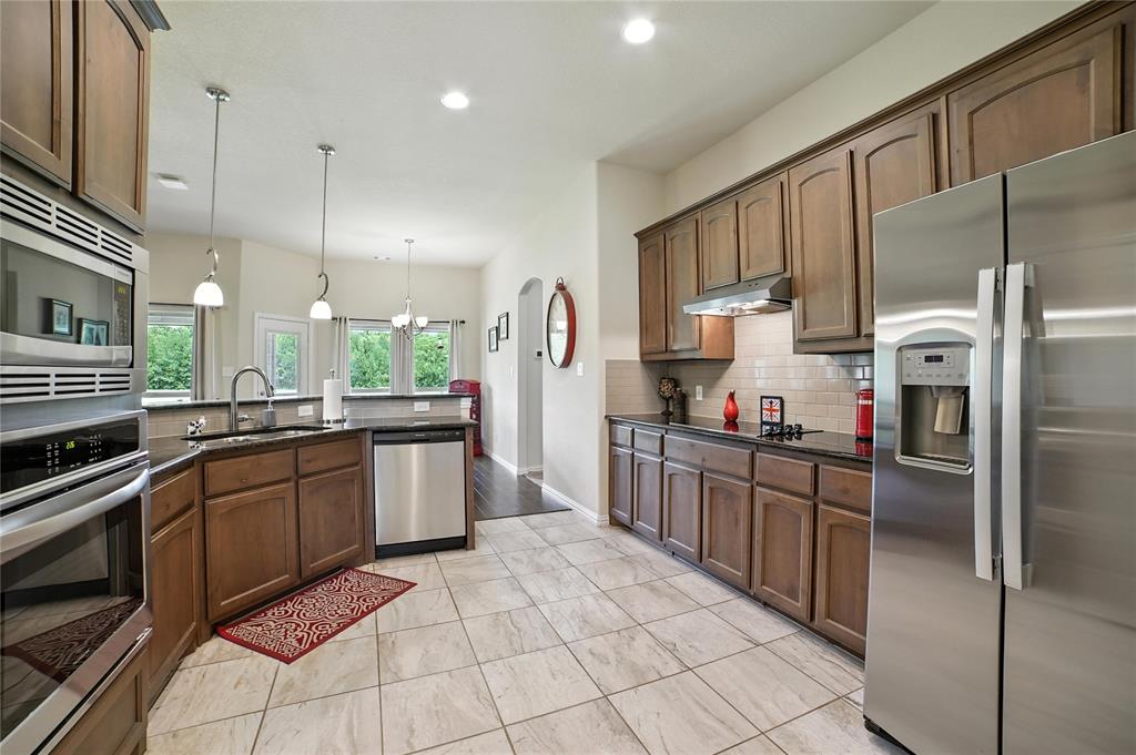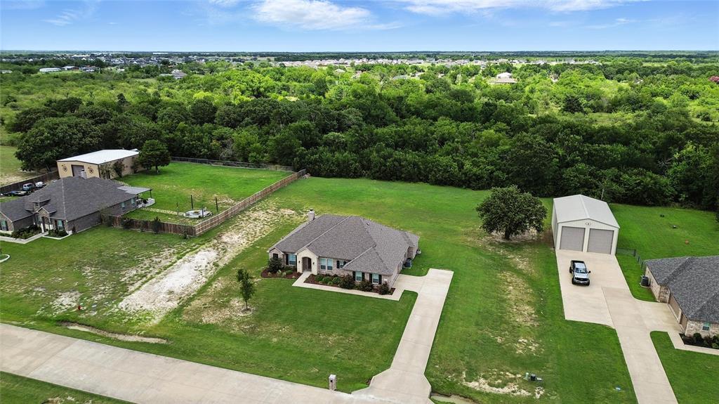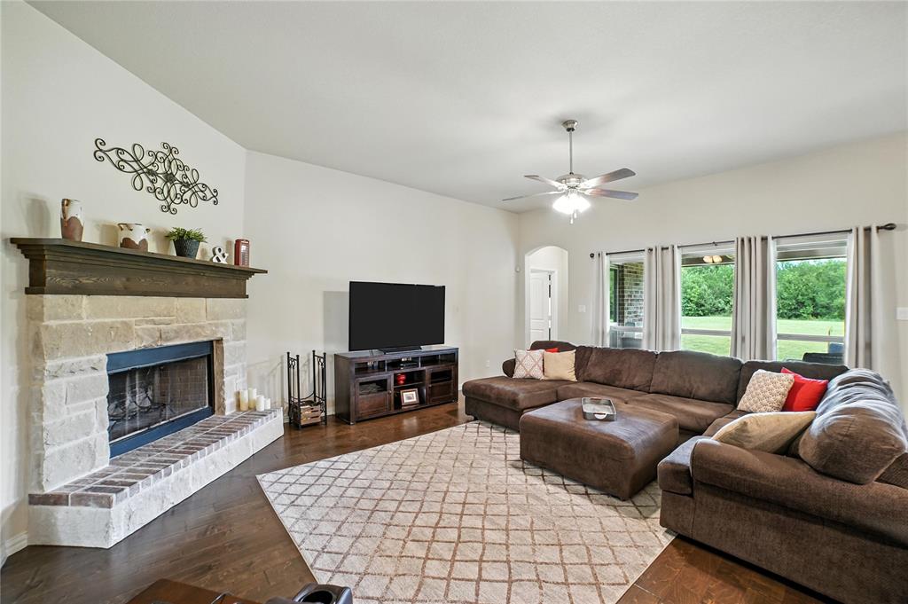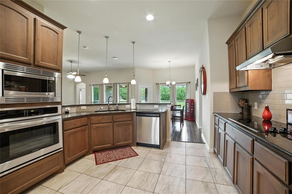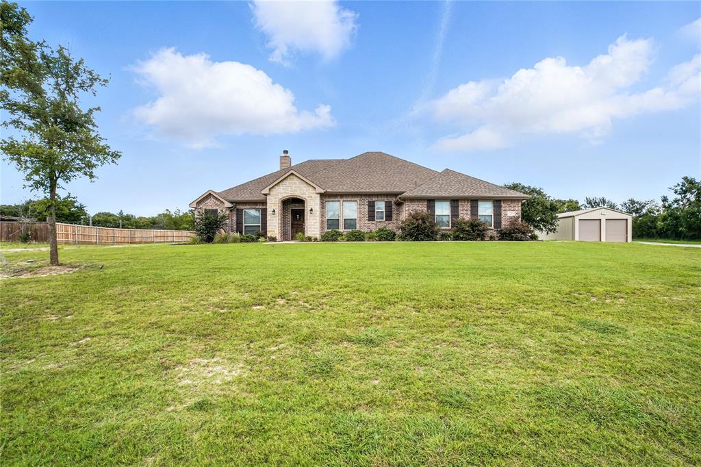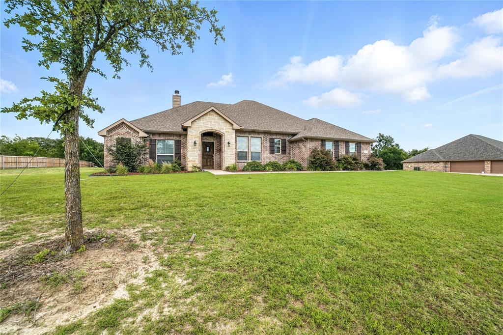 Welcome to this beautifully maintained 4-bedroom, 2-bathroom home nestled on just over an acre in the sought-after Village at Oak Ridge community. Built in 2018, this spacious 2,471 sq ft residence offers the perfect blend of country charm and modern convenience—all with no HOA! Step inside to find an inviting open floor plan with wood and ceramic tile flooring throughout the main living areas, complemented by decorative lighting and a cozy stone fireplace in the living room. The kitchen is a chef’s dream featuring granite countertops, an oversized island, built-in cabinets, walk-in pantry, and stainless steel appliances, including an electric cooktop and double ovens. Adjacent to the kitchen, you'll find both a formal dining room and a breakfast nook with views of the backyard. Retreat to the spacious primary suite, complete with a sitting area, large walk-in closet, dual vanities, garden tub, and separate shower. Three additional bedrooms each offer generous closet space and ceiling fans. Enjoy the outdoors with a covered rear patio overlooking a large, landscaped backyard—perfect for entertaining or relaxing in privacy. The oversized 2-car side-entry garage includes ample storage space and measures approximately 20x20x22. Other highlights include a dedicated office, utility room, mud room, and aerobic septic system. Located in Terrell ISD and just outside the city limits, this home provides the space and freedom you’ve been searching for. Don’t miss your chance to make this peaceful retreat your own!
