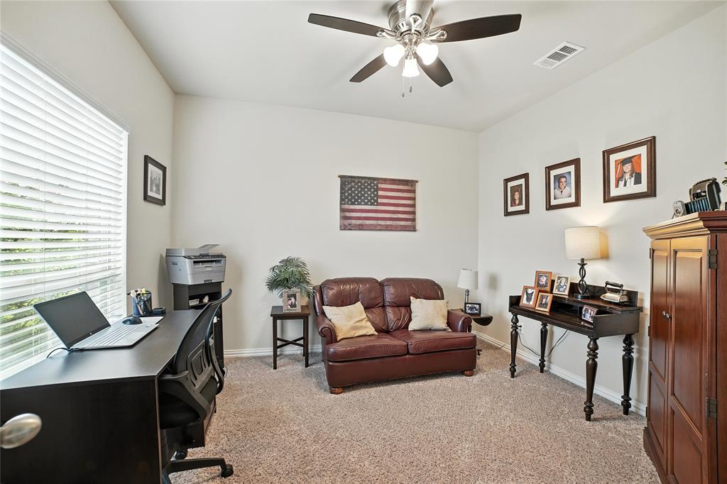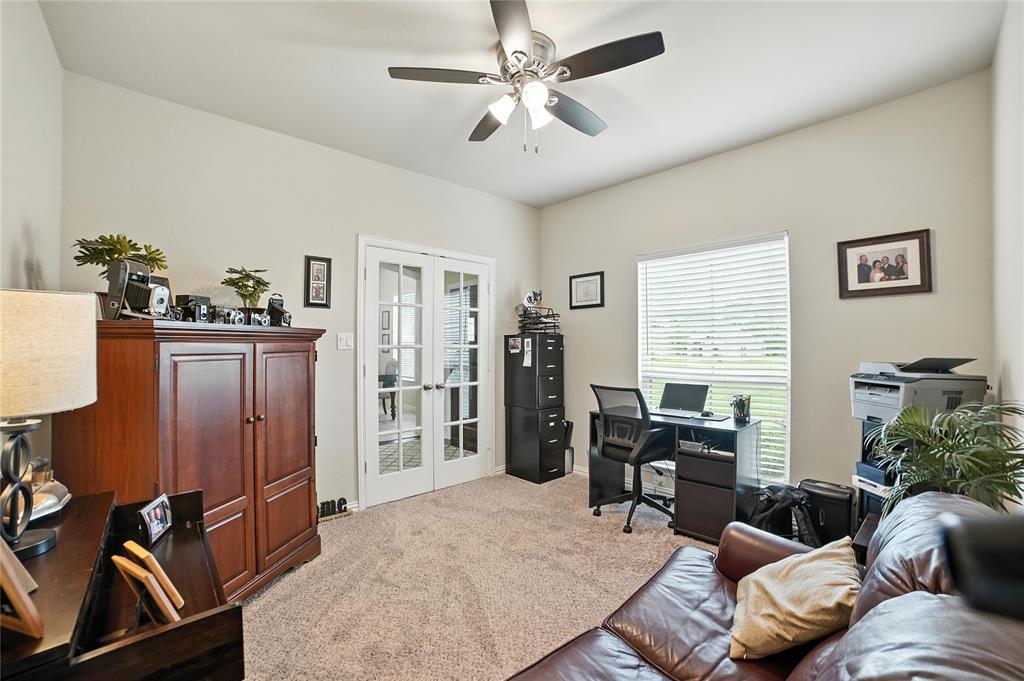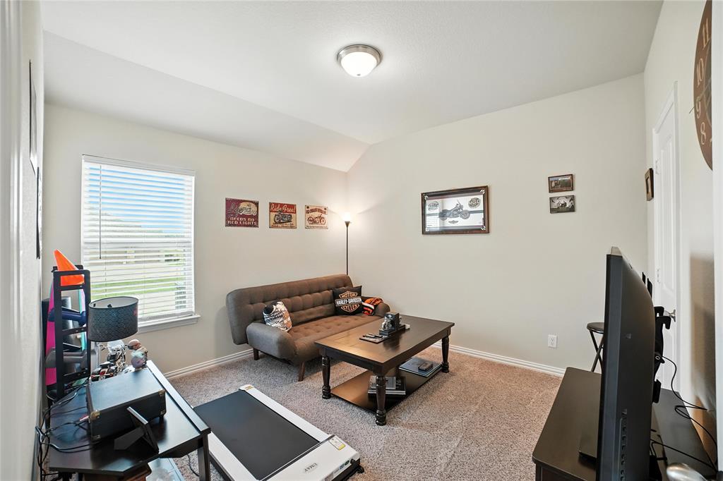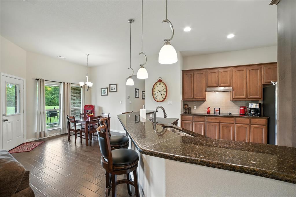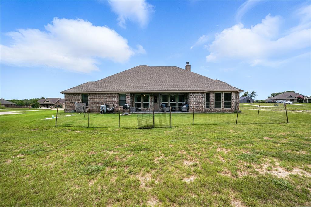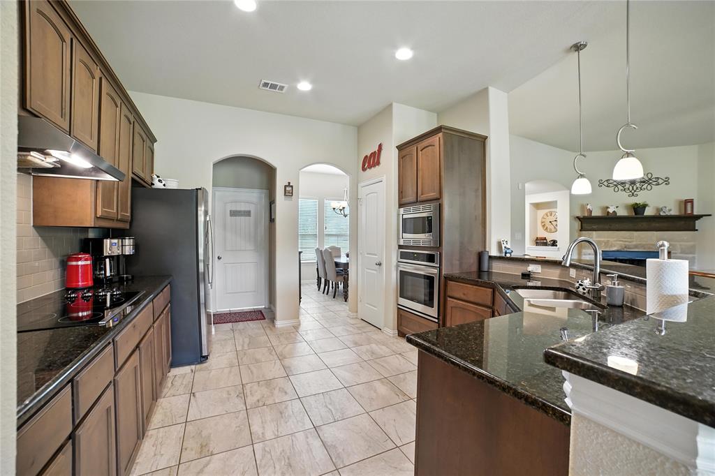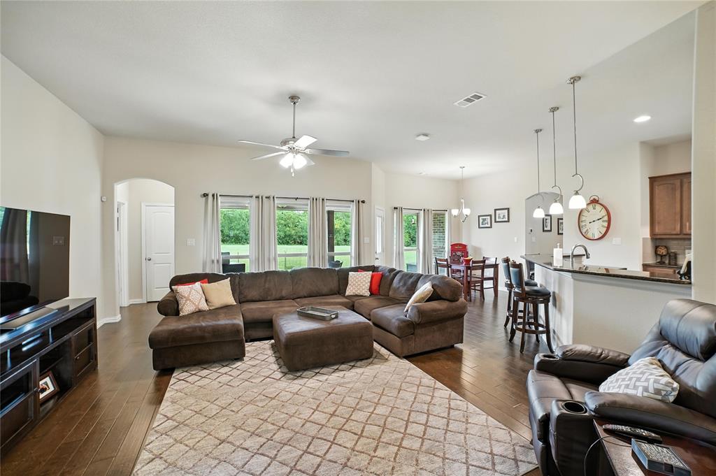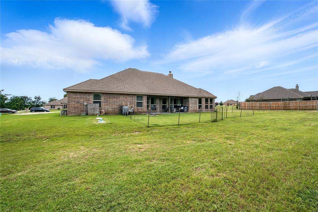 Welcome to this beautifully maintained 4-bedroom, 2-bathroom home nestled on just over an acre in the sought-after Village at Oak Ridge community. Built in 2018, this spacious 2,471 sq ft residence offers the perfect blend of country charm and modern convenience—all with no HOA! Step inside to find an inviting open floor plan with wood and ceramic tile flooring throughout the main living areas, complemented by decorative lighting and a cozy stone fireplace in the living room. The kitchen is a chef’s dream featuring granite countertops, an oversized island, built-in cabinets, walk-in pantry, and stainless steel appliances, including an electric cooktop and double ovens. Adjacent to the kitchen, you'll find both a formal dining room and a breakfast nook with views of the backyard. Retreat to the spacious primary suite, complete with a sitting area, large walk-in closet, dual vanities, garden tub, and separate shower. Three additional bedrooms each offer generous closet space and ceiling fans. Enjoy the outdoors with a covered rear patio overlooking a large, landscaped backyard—perfect for entertaining or relaxing in privacy. The oversized 2-car side-entry garage includes ample storage space and measures approximately 20x20x22. Other highlights include a dedicated office, utility room, mud room, and aerobic septic system. Located in Terrell ISD and just outside the city limits, this home provides the space and freedom you’ve been searching for. Don’t miss your chance to make this peaceful retreat your own!