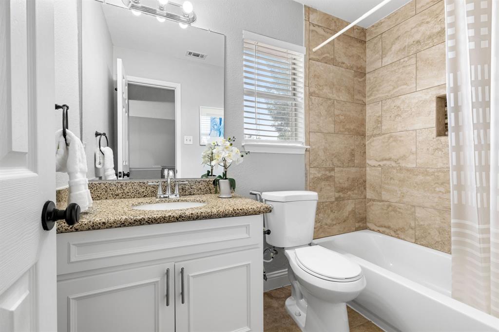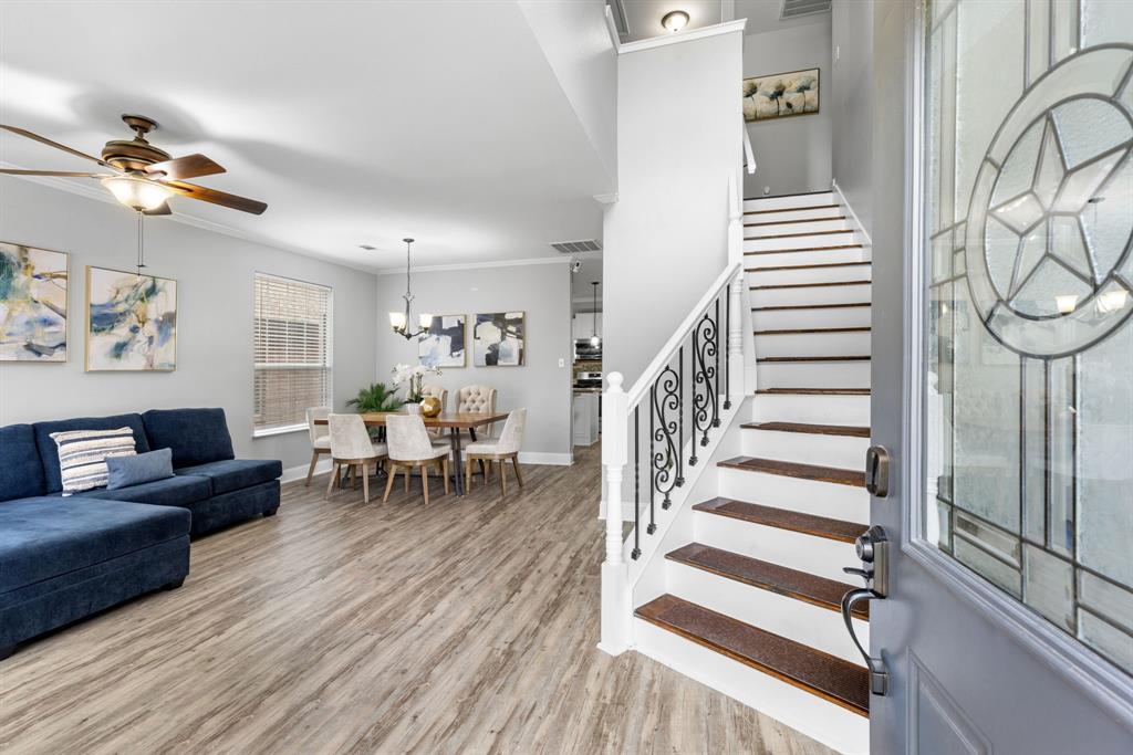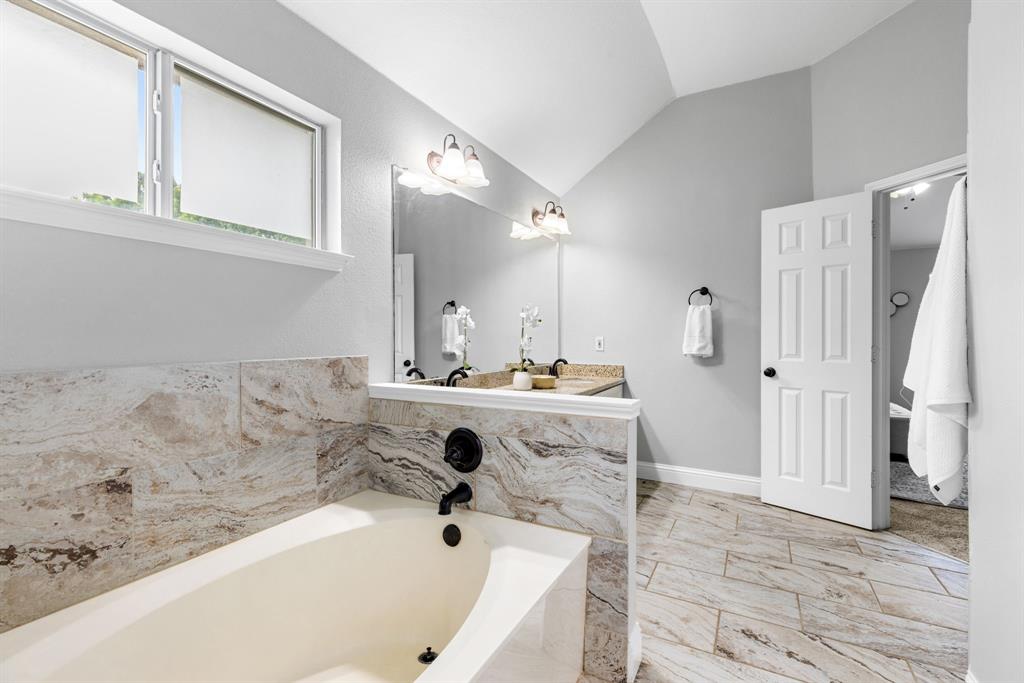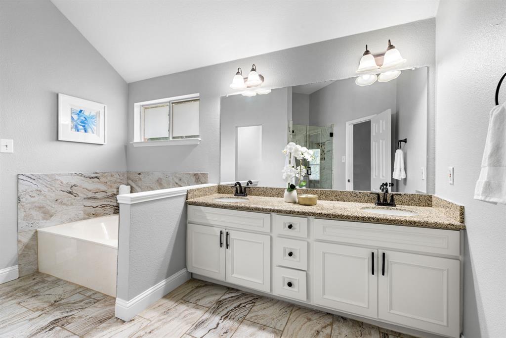 A beautiful gem nestled in the heart of Flower Mound. This lovely two story home has very comfy feel with a lot of natural light throughout the home. It has a flex room or Bonus room that can serve as an office or workout room and has it's own AC unit. The seller's recently replaced the water heater, added landscaping along with a new path to the backyard, and added new gutters. There is high quality vinyl floors throughout the bottom floor, hardwood stairs and granite counters in the Kitchen and bathrooms. They have a spacious garage with epoxy floors. The master bedroom is oversized with a updated master bathroom attached. The Kitchen fridge (2021), and the washer and dryer (2023) will remain with the property with a strong offer. Both the gas stove and dishwasher were changed in 2023. Feeds to all Flower Mound schools! Come see for yourself how lovely this home is!