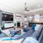 Step inside to rich hardwood floors, plantation shutters, electric shades, and an open-concept layout designed for both comfort and entertaining. The chef’s kitchen boasts sleek Silestone countertops, a massive island, custom cabinetry with slide-out drawers, and a walk-in pantry with built-in outlet. Premium appliances include a six-burner gas cooktop and smart convection double ovens. The adjoining living area offers a cozy fireplace and surround sound for immersive relaxation.