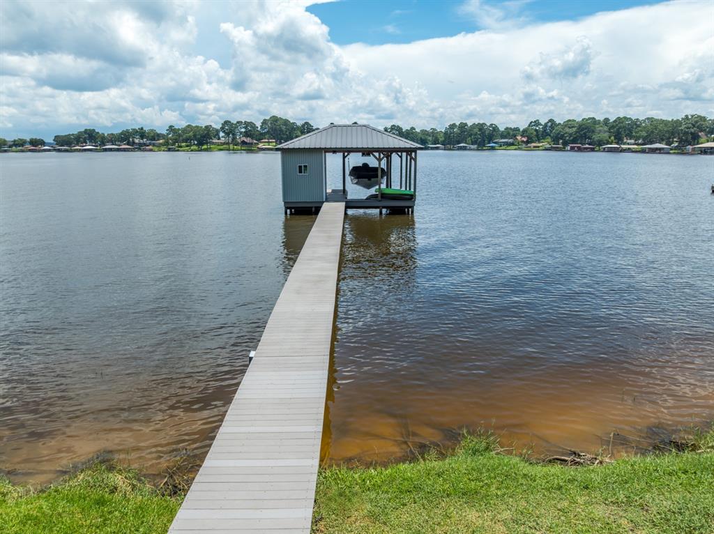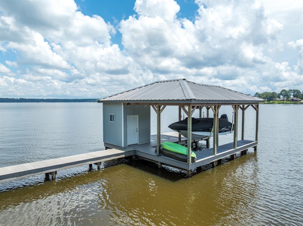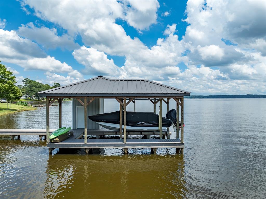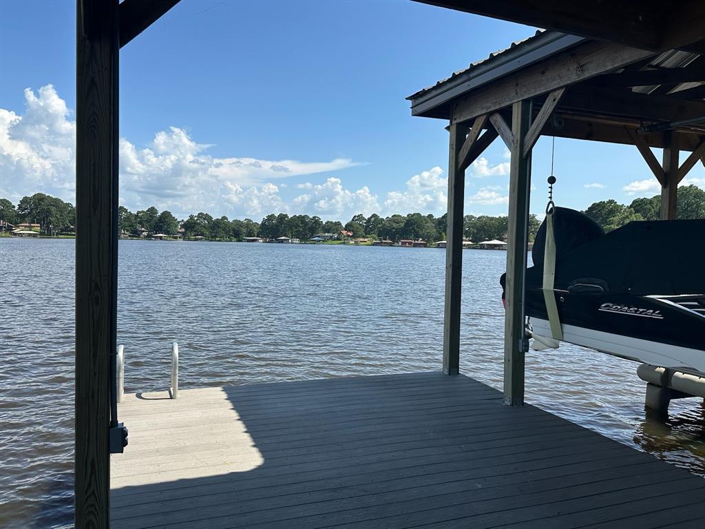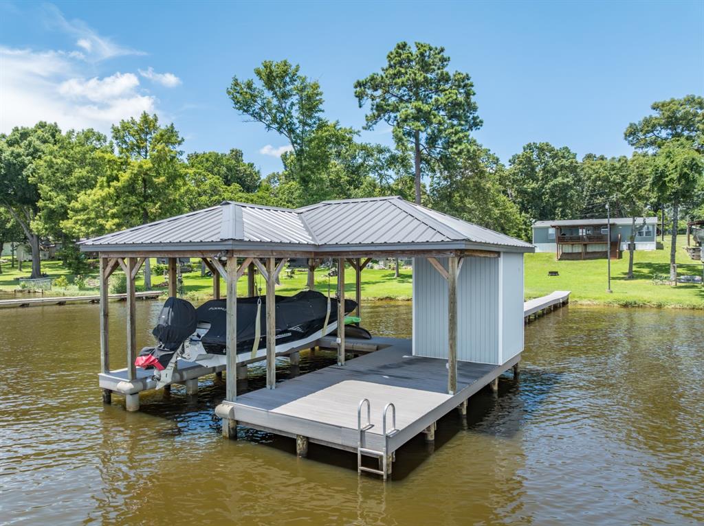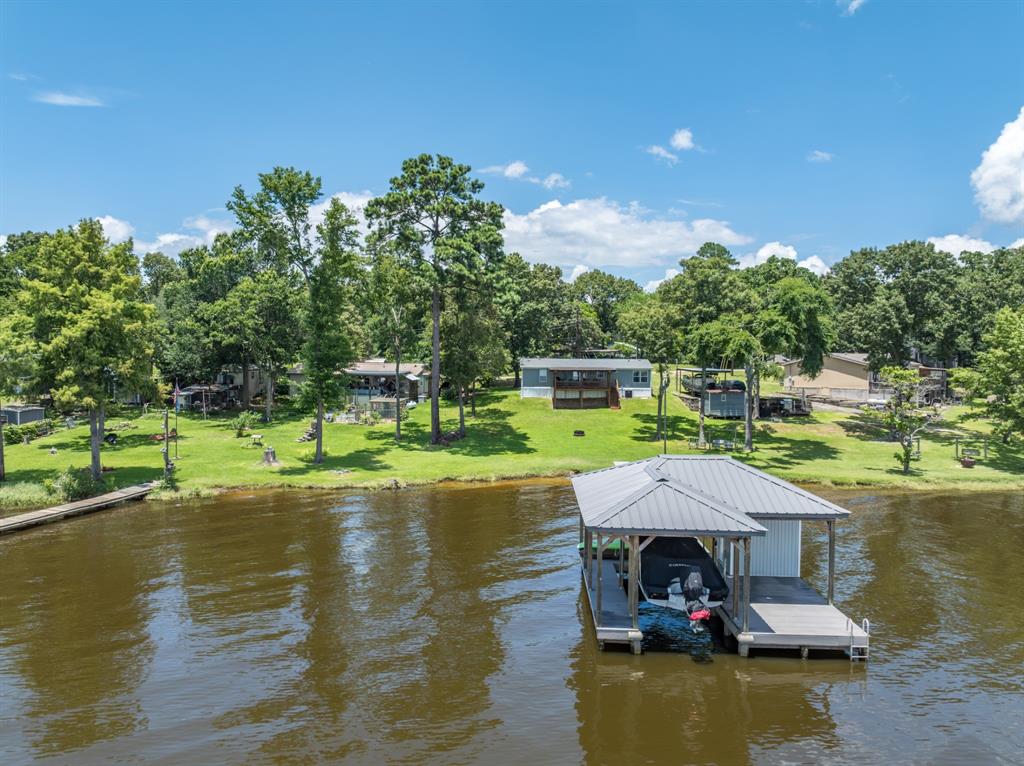 Charming Waterfront Retreat on Big Eddy Bay! Discover easy lake living with this well-maintained 3-bedroom, 2-bath manufactured home offering 1,248 sq. ft. of comfortable space on popular Big Eddy Bay, known for its great recreational boating and fishing. Nestled on two waterfront lots, this inviting home welcomes you to full time lake living or a reasonably priced second home. As you enter from the landscaped tree-shaded front porch, you find a comfortable open concept living, dining, and kitchen area filled with natural light - perfect for gathering with family and friends. A convenient utility room just off the breakfast area provides access to the side yard, while the spacious covered back patio is the ideal spot to relax and take in the breathtaking south-facing lake views and breeze. Sellers will leave most furnishings, if desired. The large backyard extending to the 117' shoreline, creates plenty of room for outdoor fun, relaxing around a firepit, and lakeside entertaining. A new one-stall boathouse with metal roof, 8' x 8' storage and a 24' slip with electric lift plus covered & open sitting area, makes launching your boat or casting a line quick & easy. Included in this retreat is a double lot across the street that houses a 4-car covered carport, offering ample parking and storage for vehicles, boats, or lake toys. This property is located in the southernmost area of Westwood Beach where you’ll enjoy a friendly neighborhood atmosphere and endless opportunities to soak up the lake lifestyle on beautiful Lake Palestine!