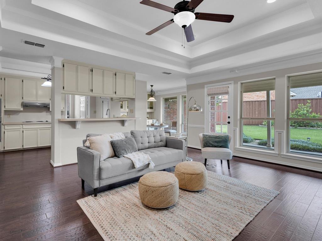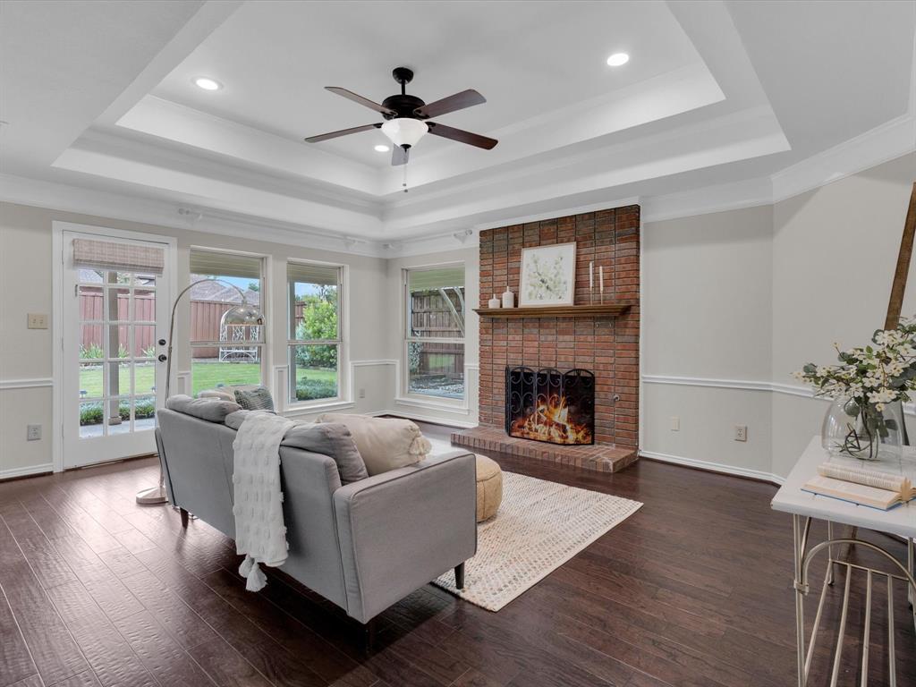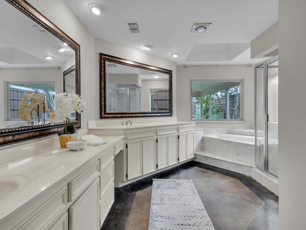 Welcome to 4029 Tumbril Lane - centrally located gem in the heart of Plano! Welcome to this beautifully maintained home where all new exterior Hardie Board and exterior paint done in 2024, new gutters and covers 2024, water heater replaced 2024, French drains and irrigation in 2023, interior paint done in 2025, this home is just waiting for your personal touch! It has 4 bedrooms, 4 bathrooms that offers over 2,800 square feet of flexible living space. With two expansive living areas, two dining rooms, and a wet bar just off the kitchen, this home is perfect for entertaining. The primary suite is conveniently located on the main floor and features tray ceilings and a private bonus room with a charming window seat, perfect for a home office, nursery, gym, or cozy reading nook. Large primary bathroom with his and her sinks, vanity and 3 windows letting in tons of natural light. Engineered flooring throughout the entry way, dining room, kitchen, and den. Pool sized backyard with a board on board wood privacy fence with space to make it your own. Upstairs, you’ll find generously sized secondary bedrooms, each with large walk-in closets for ample storage, wall to wall windows and 2 full bathrooms. Located in Plano's top rated schools, zoned to Wells Elementary, near tons of shopping, dining, and major commuter routes, this home offers timeless charm, everyday functionality, and room to grow. Don’t miss your chance to call it home!