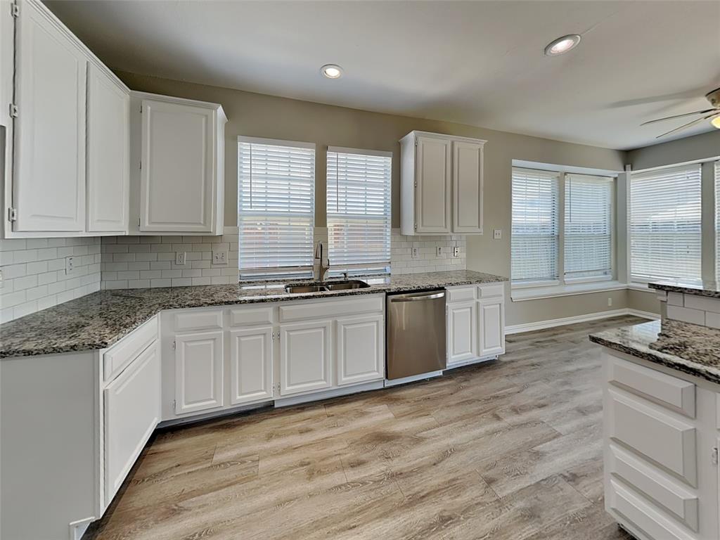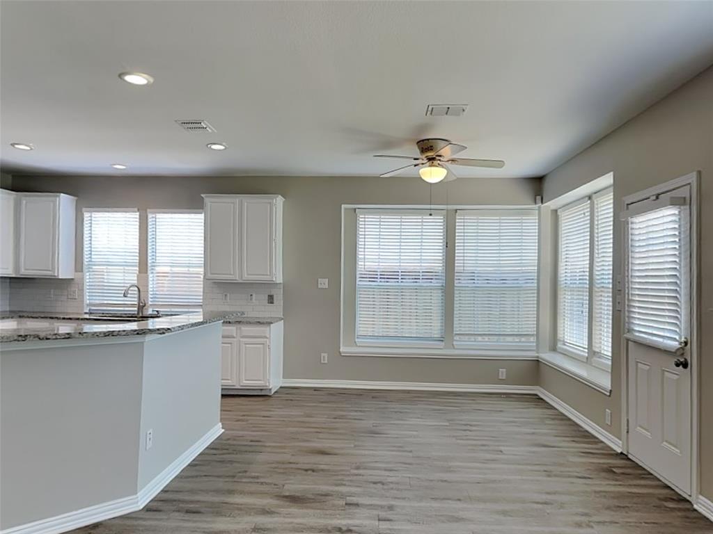 The large open kitchen is designed for both function and flow, complete with a breakfast bar and a cozy breakfast nook, making mealtimes easy and enjoyable.