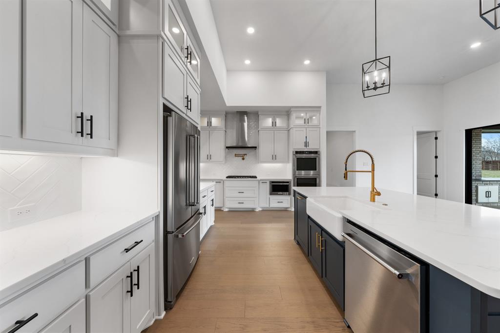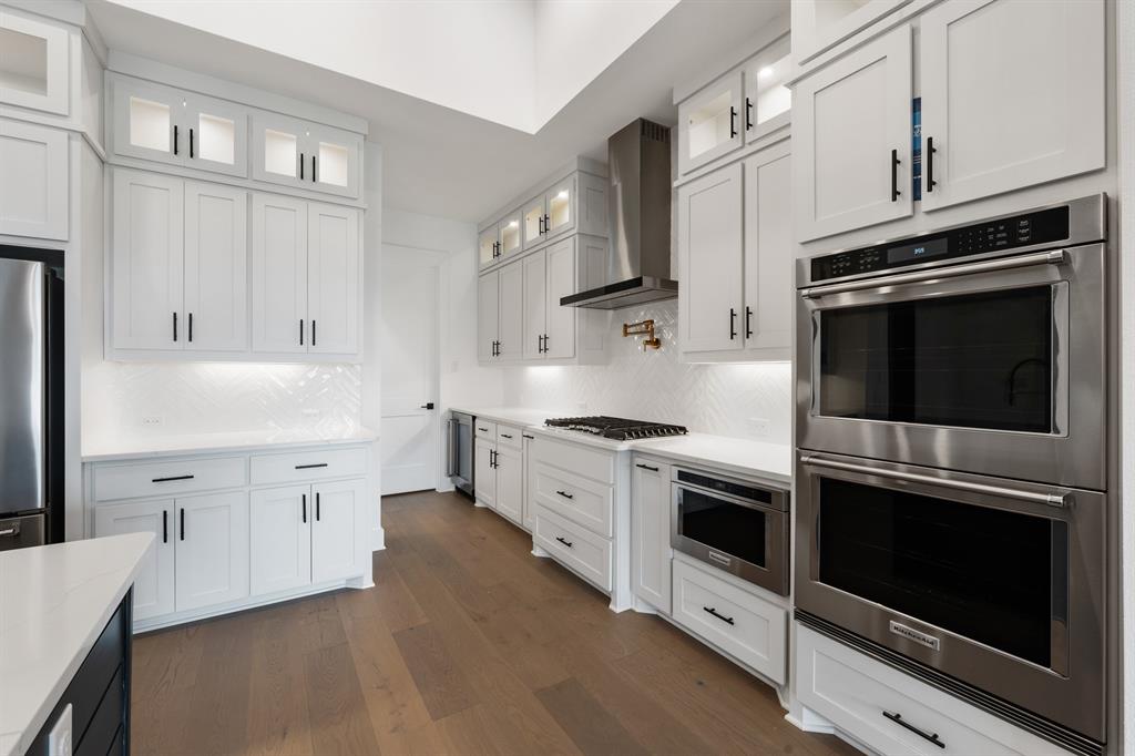 The Woodlands provides homeowners with premium upgrades and finishes, included Kitchen-Aid kitchen appliances, and dining, shopping, and recreational activities all close by. With the top-rated Aubrey ISD schools, low taxes, and no HOA – The Woodlands offers the best value in Denton County. The beautiful Bradley floorplan features three-bedrooms, two-and-a-half-bathrooms, and well designed 3,042 SQFT of space. This floor plan unites the kitchen, breakfast area and family room. Inside the kitchen, homeowners will love the quartz countertops, designer cabinetry, and oversized pantry. The primary bedroom features an en-suite bathroom with expansive vanities, standalone tub, walk-in shower, linen closet and sizable walk-in closet with direct access to the laundry room. In the backyard, the covered patio features an outdoor kitchen with counterspace, a sink and a grill.