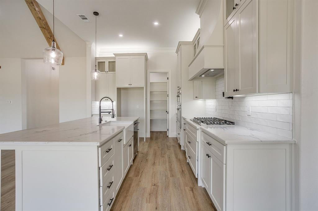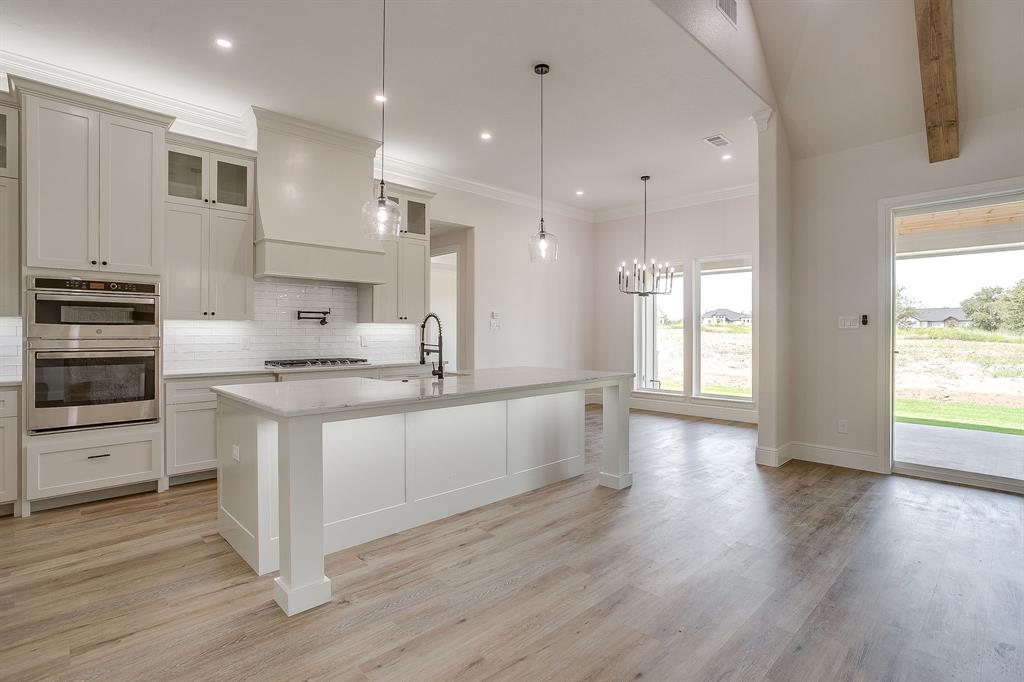 BUILDER INCENTIVE available! Up to 5k toward buyers closing costs. Welcome to luxury living in the exclusive community of Wild Horse Hills. 8501 Wild Colt Drive is situated on a premium 1 acre CORNER lot. With Godley High School in the distance, this location offers quick access to 171, FM 917 and FM 2331. This thoughtful BRAND NEW single story plan provides 4 bedrooms, 3 full bathrooms PLUS a dedicated home office, and 2 car side entry garage. Stunning custom upgrades throughout include foam encapsulation, towering ceilings, wood beams, 6 inch baseboards, shaker cabinets, quartz countertops, designer lighting and paint, LVP through main spaces and tile in wet areas. The living room is breathtaking with cedar beams and custom floor to ceiling Austin stone fireplace with mantel and hearth. The kitchen is a true delight with abundant storage, gas range, wall oven and microwave, quartz countertops, single basin farm sink, pot filler and enormous walk in pantry. Plenty of seating options for all with counter height island and large dining room. The primary ensuite is the perfect retreat. The spa like bathroom includes fabulous walk in shower with bench and shampoo niche, dual sinks, soaking tub, and luxurious closet with nook for your safe or vanity. Laundry room is accessible from MudRoom or Primary Bathroom. It is well appointed with full size hookups, cabinets, folding counter and hang bars. This split floor plan offers 2 separate guest room hallways from the living room. Bedroom 2 includes an adjacent full bathroom. Bedrooms 3 and 4 share a wonderful jack and Jill style bathroom. Large covered back patio with dual slider doors to enjoy coffee and wildlife. Everything you would choose in a custom home without the wait! Builders warranty included! Welcome home!!