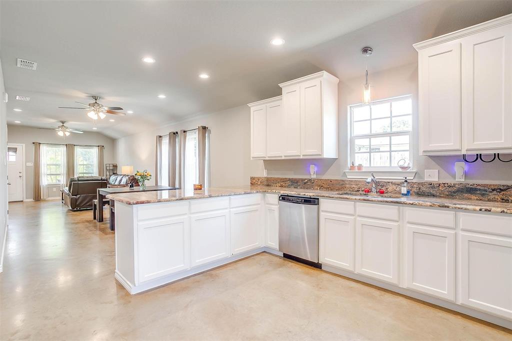 Inside, you’ll find an open-concept layout with updated flooring, fresh paint, and a bright, airy feel throughout. The kitchen features sleek countertops, ample cabinetry, and stainless steel appliances, opening seamlessly to the dining and living areas—perfect for everyday living or entertaining guests.