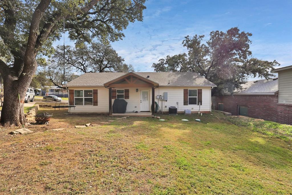 New roof to be installed prior to closing! Convenient location, energy efficient home, country like setting, low taxes, workshop - and the house is really cute! Home nestled in the trees, 5 minutes from downtown Granbury, you'll live by everything Granbury has to offer in a country like setting, and pay no city taxes. This cottage like home features front & back covered porches, a double lot, and a detached workshop with parking. Inside you'll find a peaceful living area defined by a hip vault and drop ceiling fan, exceptional wood-look stained concrete floors that have proven to be very durable, kitchen counter space, a full size pantry, and a separate full size laundry room. Full encapsulation spray foam home insulation. Summertime electric bills average around $200, with the AC set at a chilly 67 degrees! Western Hills Harbor HOA provides community lake access for dues of less than $90 a year.