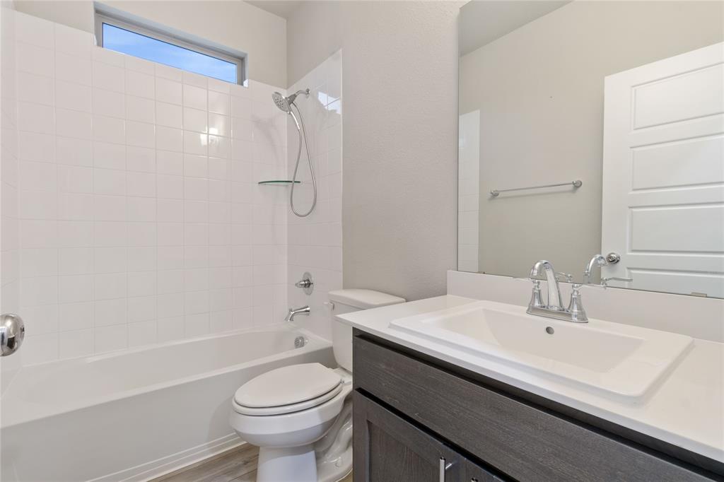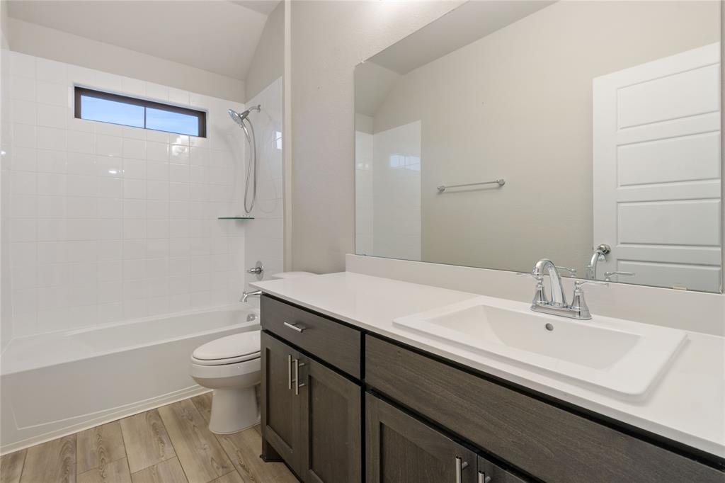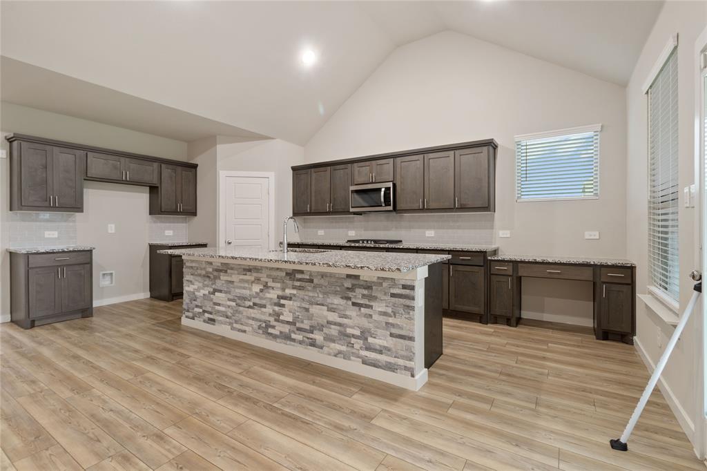 Bank Approved Price! Nestled in the heart of the charming Oakmont Park community, this new-construction (built in 2022) impresses with both its amount of living space and its sophisticated curb appeal. The brick-clad facade, framed by a covered front porch, greets you warmly and sets a tone of modern elegance. Inside, soaring ceilings and an open-floor plan connect a gourmet kitchen equipped with stone countertops, gas cooktop, and a center island, seamlessly flowing into a dramatic family room perfect for gathering and entertaining. This thoughtfully designed two-story home offers five generously sized bedrooms and four full baths, including a luxurious primary suite on the first floor with double vanities. Beyond the interior, the corner lot delivers a smartly designed layout with a covered patio, wood fencing, gutters, and a classic two-car front-facing garage. It's an ideal home that effortlessly balances open social spaces with private retreats, all wrapped in energy-efficient, modern living.