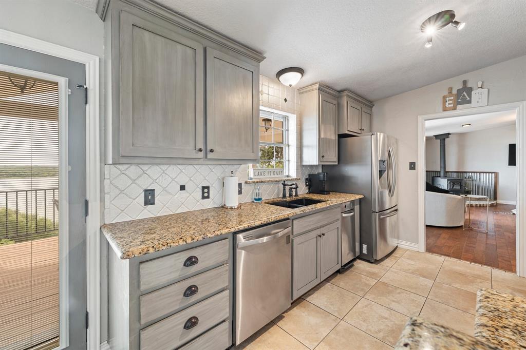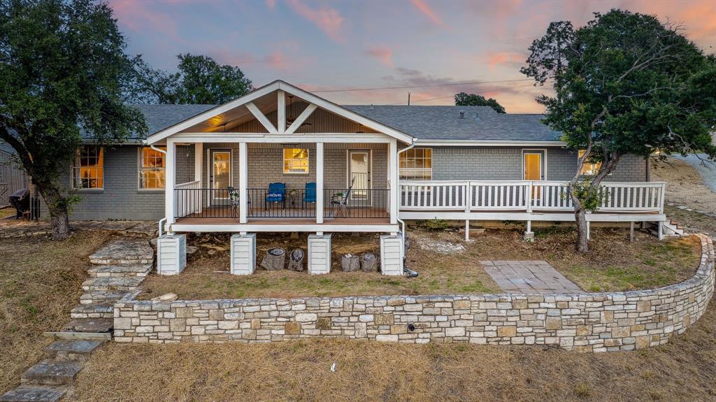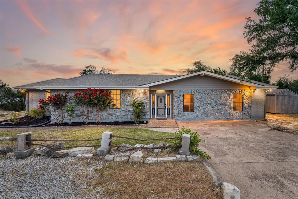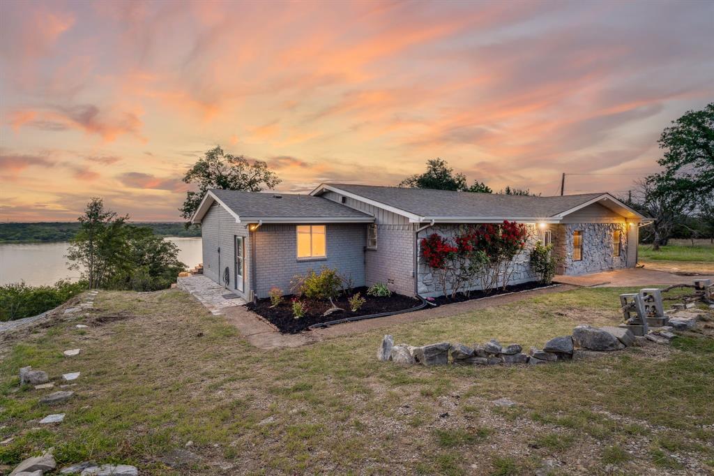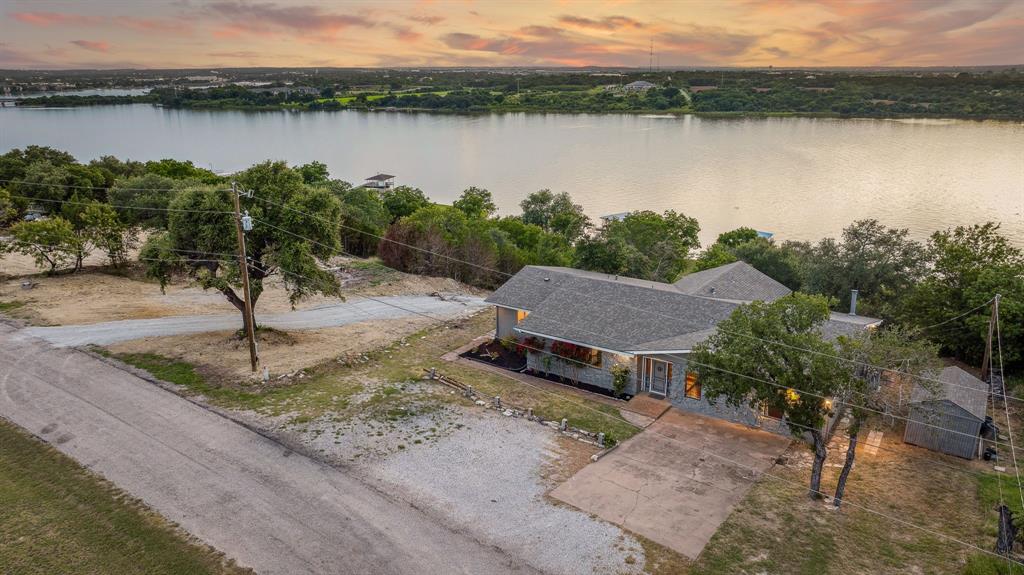 Mainbody Lakefront Stunner with Panoramic Views! Experience breathtaking sunsets and lakeside living from this elevated gem on Lake Granbury. Perfectly situated in a park-like setting at the end of a quiet cul-de-sac, this home offers the ideal blend of tranquility and convenience—just minutes from shops, restaurants, golf courses, and Granbury's historic downtown. Whether you're looking for a peaceful weekend escape or a full-time lakefront residence, this property delivers. The updated home features two spacious living areas, three full bathrooms, and three bedrooms, plus a versatile flex room currently used as a fourth bedroom. Enjoy cozy evenings by the wood-burning stove while soaking in sweeping lake views. Step out onto the expansive covered deck, accessible from the family room, dining area, and primary suite—perfect for entertaining or simply unwinding. The oversized lot offers ample space for outdoor enjoyment or the potential to build an additional home or guesthouse. Recent improvements include a new roof and gutters (July 2025), with brand-new windows scheduled for installation by the end of July. Extra parking ensures plenty of room for guests and lake toys, and a storage shed adds convenience for all your recreational gear. Don't miss this rare opportunity to own a slice of lakefront paradise in one of Granbury’s most desirable neighborhoods. Optionally sold fully furnished.
