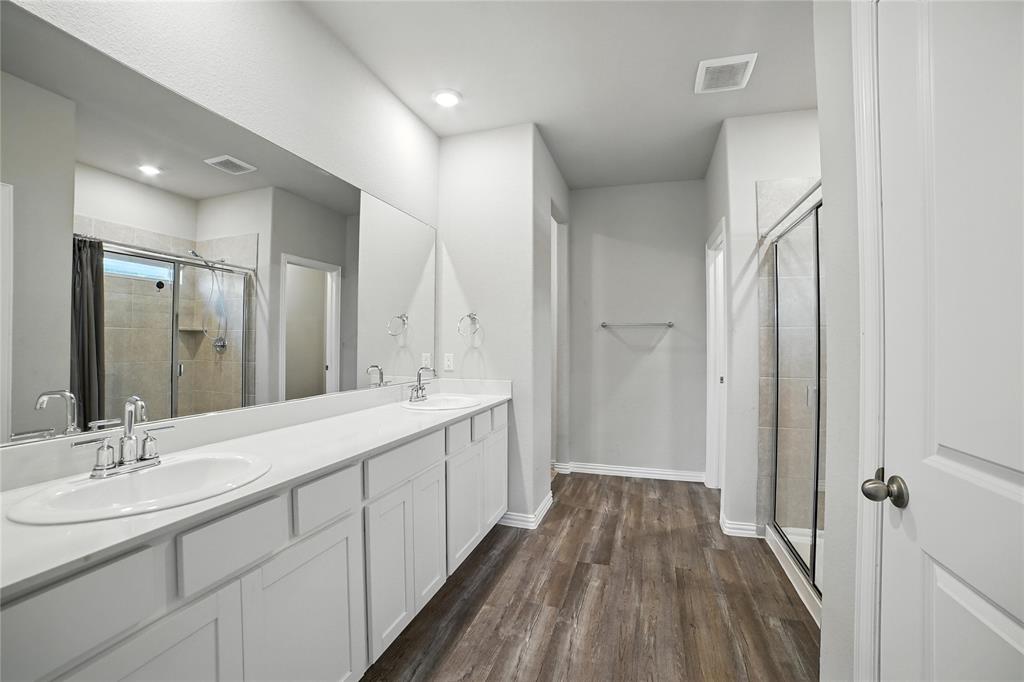 MOTIVATED SELLER!!! Spacious and move-in ready, this stunning 5-bedroom, 3-bathroom home in the desirable Woodcreek community offers over 3,100 square feet of thoughtfully designed living space. Built in 2020, this two-story gem features an open-concept layout with a large kitchen showcasing granite countertops, a center island, stainless steel appliances, and an eat-in dining area—perfect for entertaining. The first floor includes a generously sized primary suite with dual vanities, a walk-in shower with body spray, and a large walk-in closet. A second bedroom and full bath downstairs offer flexibility for guests or multigenerational living. Upstairs, you’ll find three more spacious bedrooms, a full bathroom with dual sinks, and a versatile game room ideal for movie nights or playtime. Additional highlights include luxury vinyl plank flooring, ample storage, a covered front and rear porch, a 2-car garage, and energy-efficient features like a tankless water heater. Located in Rockwall County and served by Royse City ISD, this home also enjoys access to community amenities like a pool, pickleball courts, and playgrounds. Schedule your tour today and enjoy the perfect blend of comfort, space, and community living in Fate, Texas! Home has been staged via AI, house is empty.