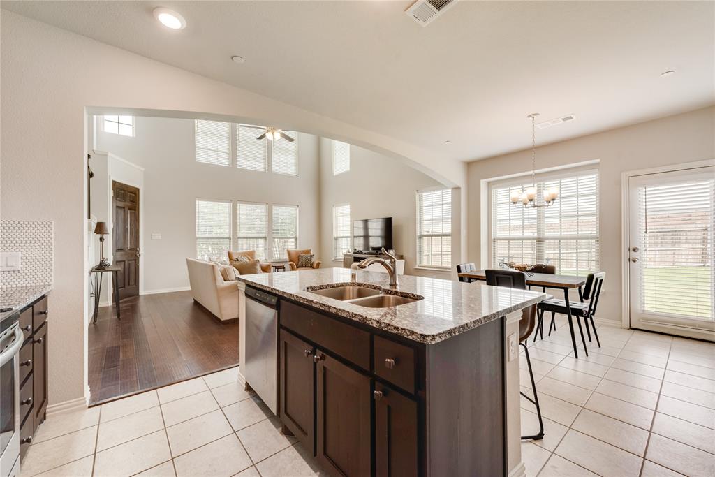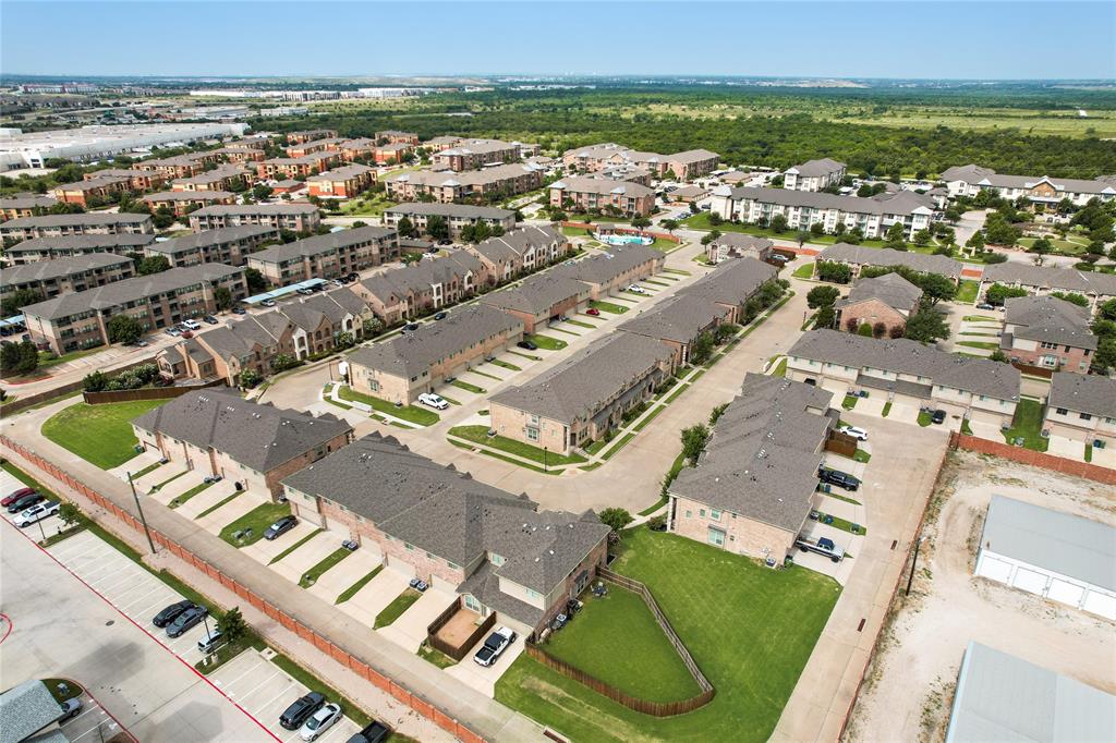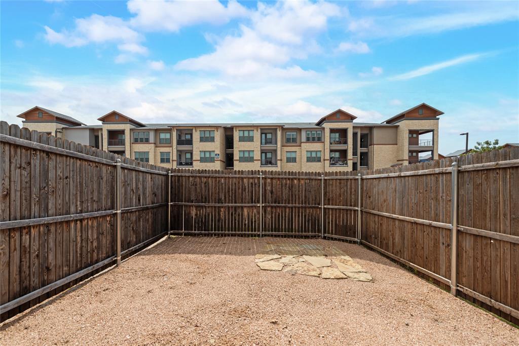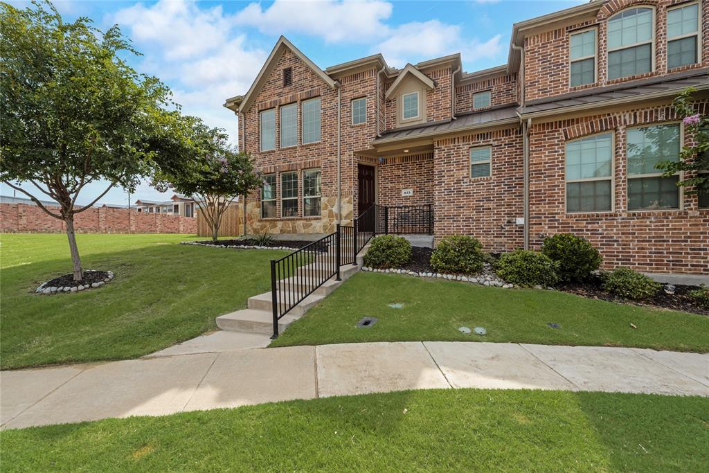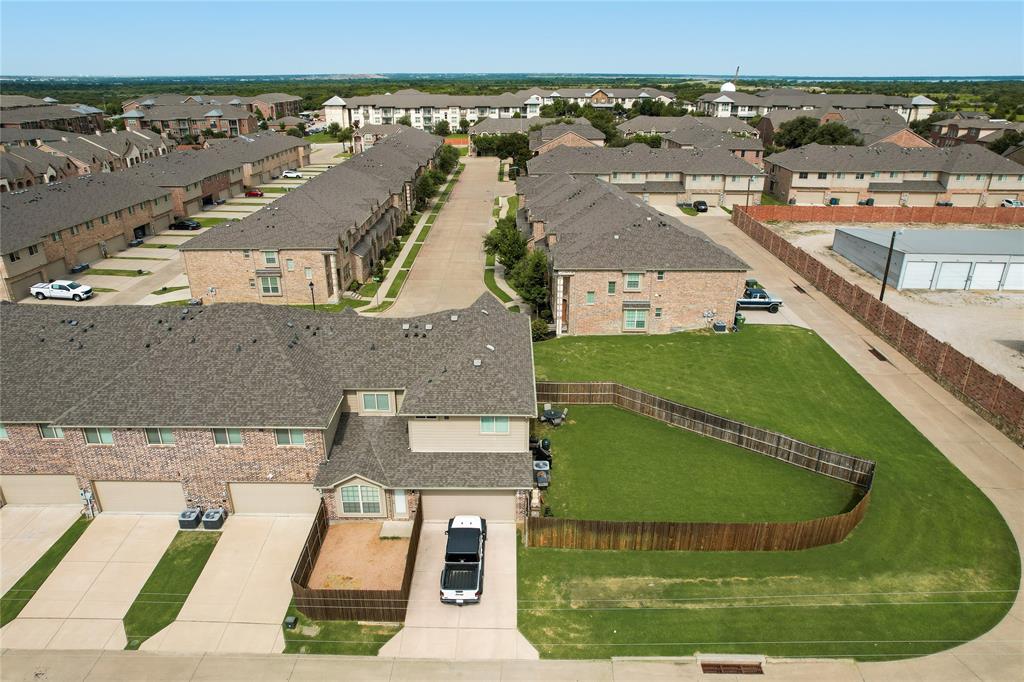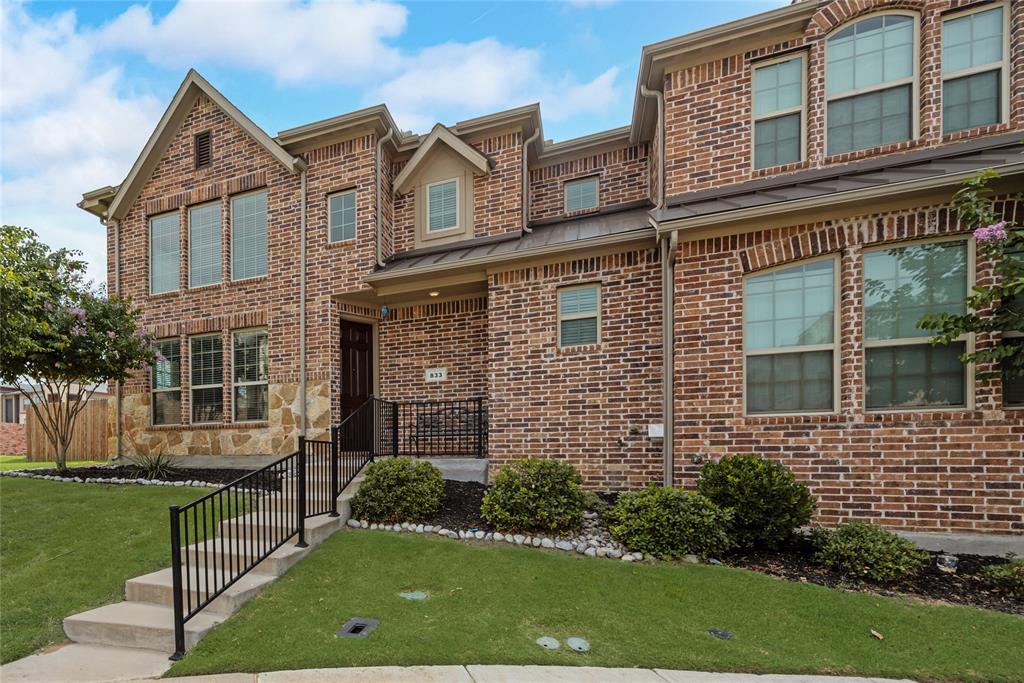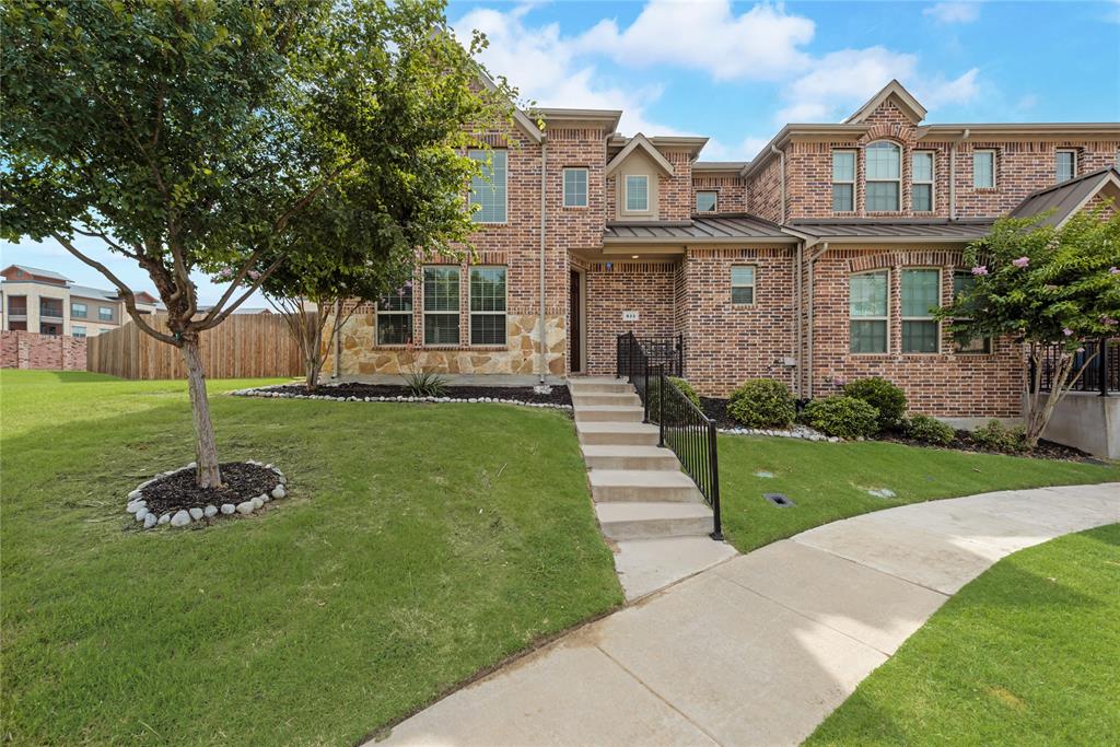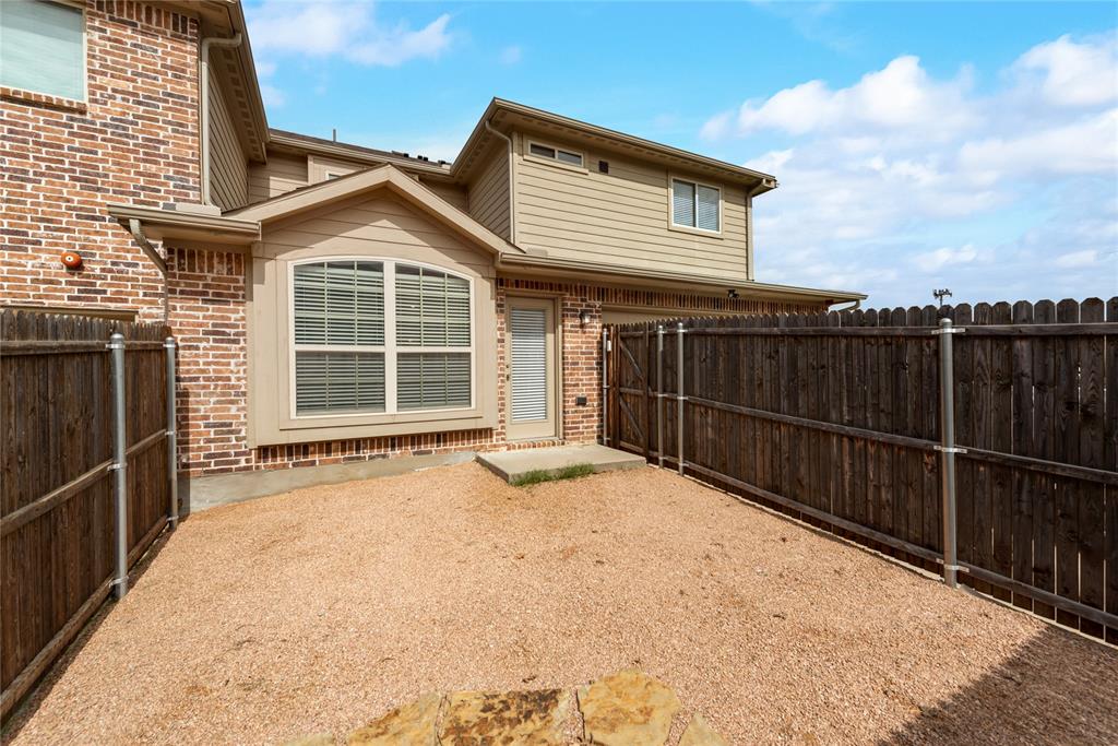 Step into this stunning end-unit townhome that perfectly blends timeless elegance with modern convenience. This spacious residence greets you with a charming brick and stone exterior and lush landscaping, setting the tone for what awaits inside. The expansive living room boasts soaring ceilings, an abundance of natural light streaming through the large windows, and rich hardwood floors. Open concept kitchen and dining area is a true highlight, featuring granite countertops, sleek stainless-steel appliances, and dark wood cabinetry offering both beauty and functionality. The large island with bar seating is perfect for casual meals or entertaining guests. Upstairs, unwind in the cozy living area that’s ideal for a game room or additional living space. Small niche loft area currently set up as a music room but idea for a reading nook or much more. Retreat to the generous primary suite with ensuite bath, complete with a separate shower, soaking tub, and ample closet space. Additional bedrooms on second floor, split from primary, are spacious and versatile, ready to meet your family’s needs. Enjoy outdoor living with a large, private backyard — a rare find in townhome living — offering plenty of space for kids, pets, or weekend barbecues. Additional fenced in outdoor living area privately tucked off the primary bedroom. As an end-unit, this home offers extra privacy, additional natural light, and a more spacious feel throughout. Located in the desirable Lake Ridge community with convenient access to schools, shopping, dining and entertainment, this townhome is move-in ready and waiting for you to call it home!