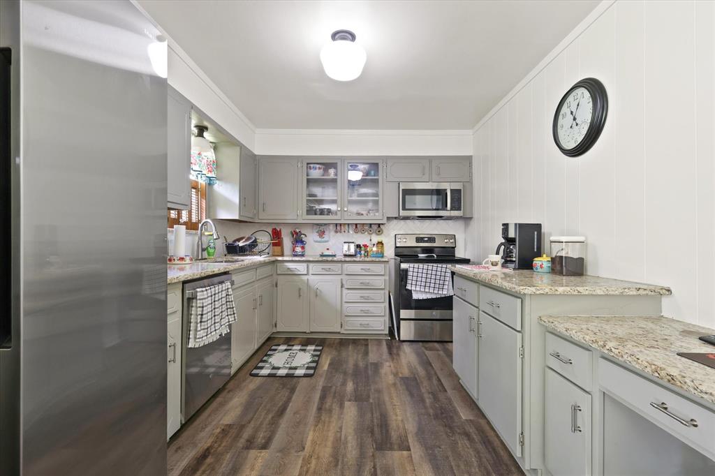 This newly renovated charming 3 bedroom, 2 bath home nestled in an established neighborhood, sits on an oversized lot in Cleburne offering a tranquil setting while still being close to nearby schools and shopping conveniences. The interior is fully remodeled with fresh paint, laminate flooring, cabinets and baths. The living area is large with tons of space for your family and friends. There are two living areas or you can use the other space as a formal dining room or a great office space. Roof is approximately 3-4 years old. Schedule a private showing to see this home. This home won't last long!