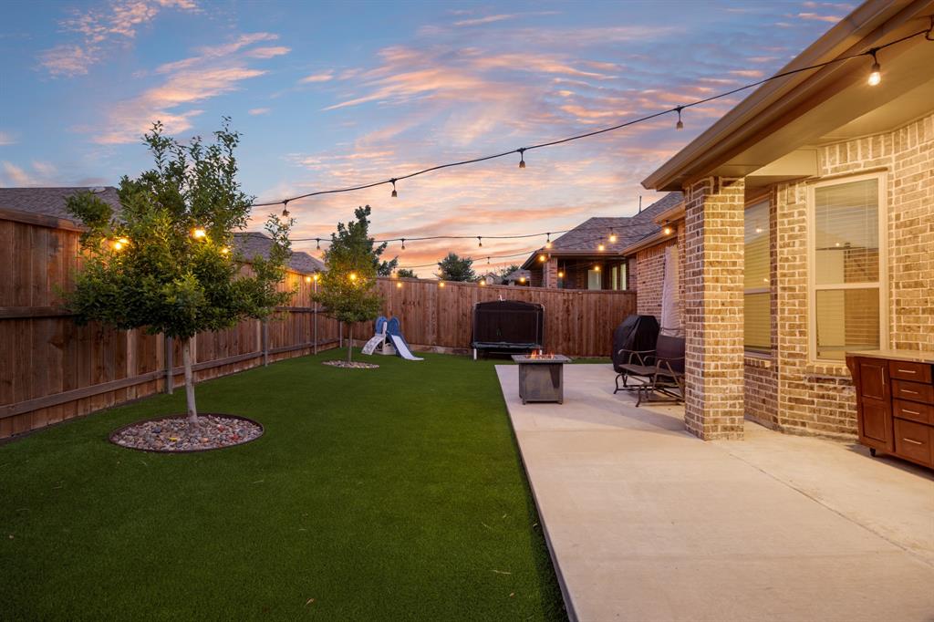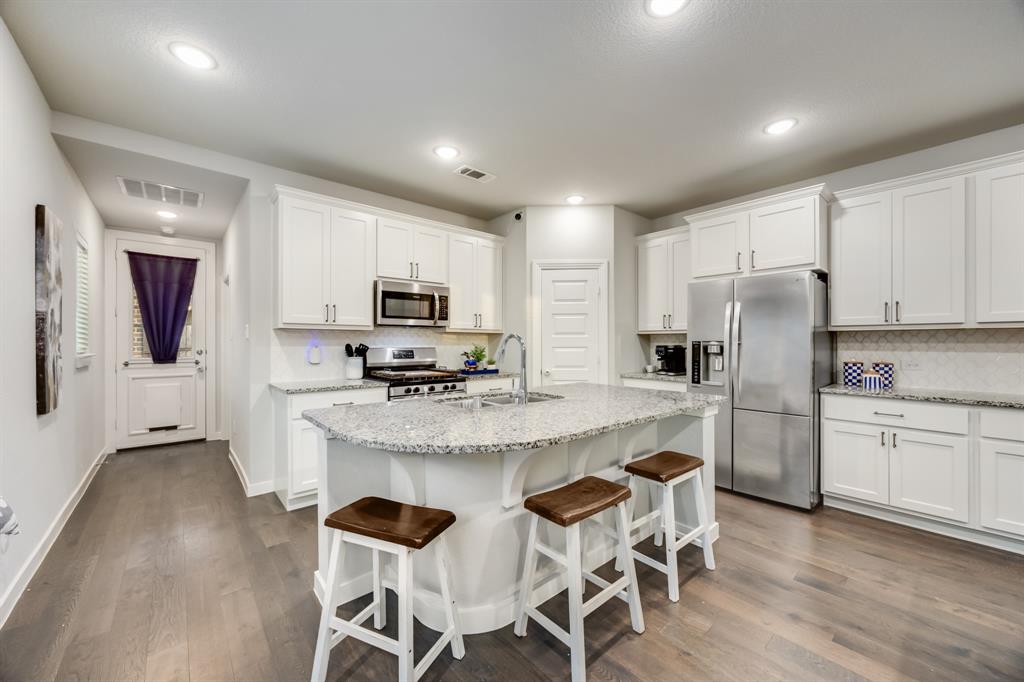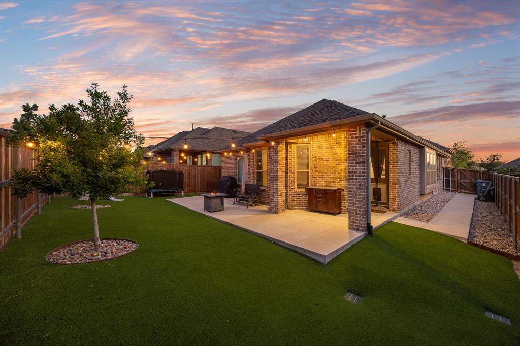 BEST VALUE IN THE NEIGHBORHOOD - Seller Relocating and Ready to Close! Don’t miss this opportunity to make this beautifully updated 3-bedroom, 2-bath home yours today. Step into comfort with fresh interior paint and durable luxury vinyl plank flooring throughout the living areas. The OVERSIZED PRIMARY suite features a spacious walk-in closet, separate shower, and garden tub. An open-concept kitchen and living space with a large island, generous countertop and cabinet space, and a 5-burner gas cooktop—perfect for hosting and entertaining. Outside, unwind on the EXPANSIVE BACK PATIO and enjoy a LOW-MAINTENANCE BACKYARD with TURF and hardscaping, giving you more time to relax and less time on upkeep. This MOVE-IN READY, INCLUDES the REFRIDGERATOR, WASHER and DRYER. Located in a vibrant community offering year-round events, fitness center, pool, splash pad, dog park, treehouse playground, stocked ponds, and scenic trails. All just minutes from H-E-B, Costco, PGA HQ, UNT, the Tollway, and the upcoming Universal Studios.