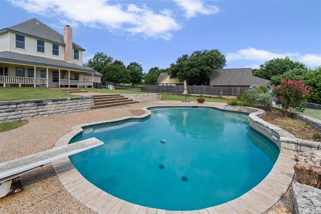 Welcome to your slice of country paradise! Nestled in a highly sought-after neighborhood, this rare gem offers 2.5 beautifully fenced acres with horse and some livestock privileges, a shared stocked pond and breathtaking panoramic views. Whether you’re looking for serenity, space or the ultimate hobby farm setup-this property delivers! The 2,682 sq ft home features 3 spacious bedrooms with oversized walk-in closets, 3.5 bathrooms, 2 living and 2 dining areas, giving you all the space you need to live and entertain in comfort. Step out onto the oversized 8x54 L-shaped covered back porch, the perfect place to relax and soak in views of the pool, barn and pond beyond.