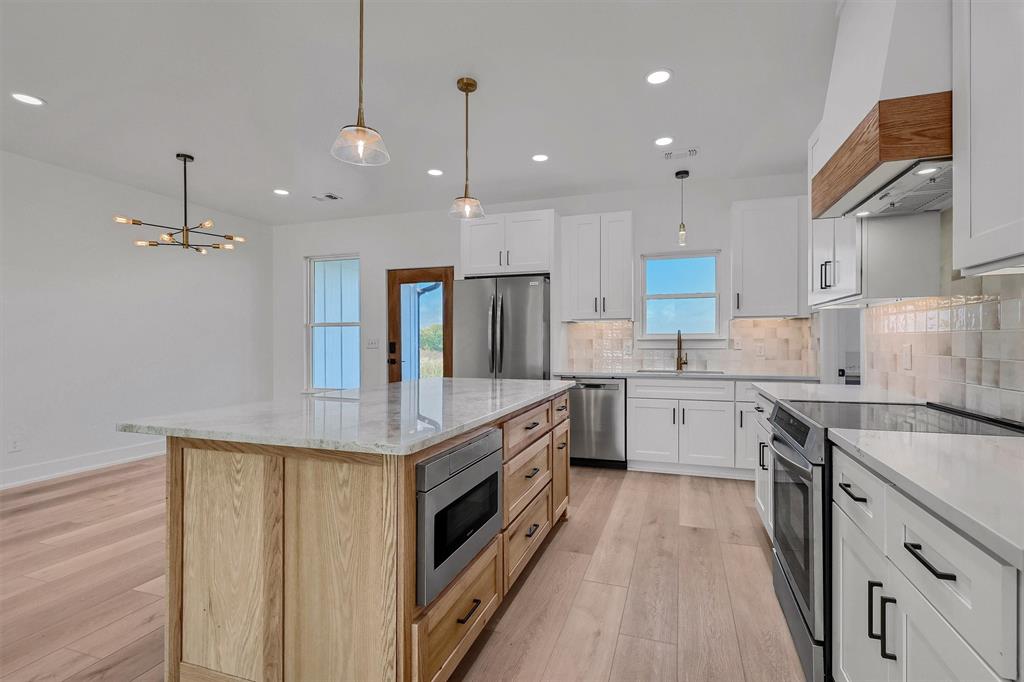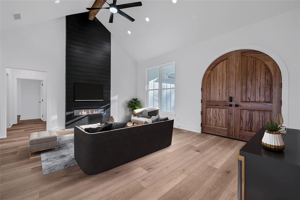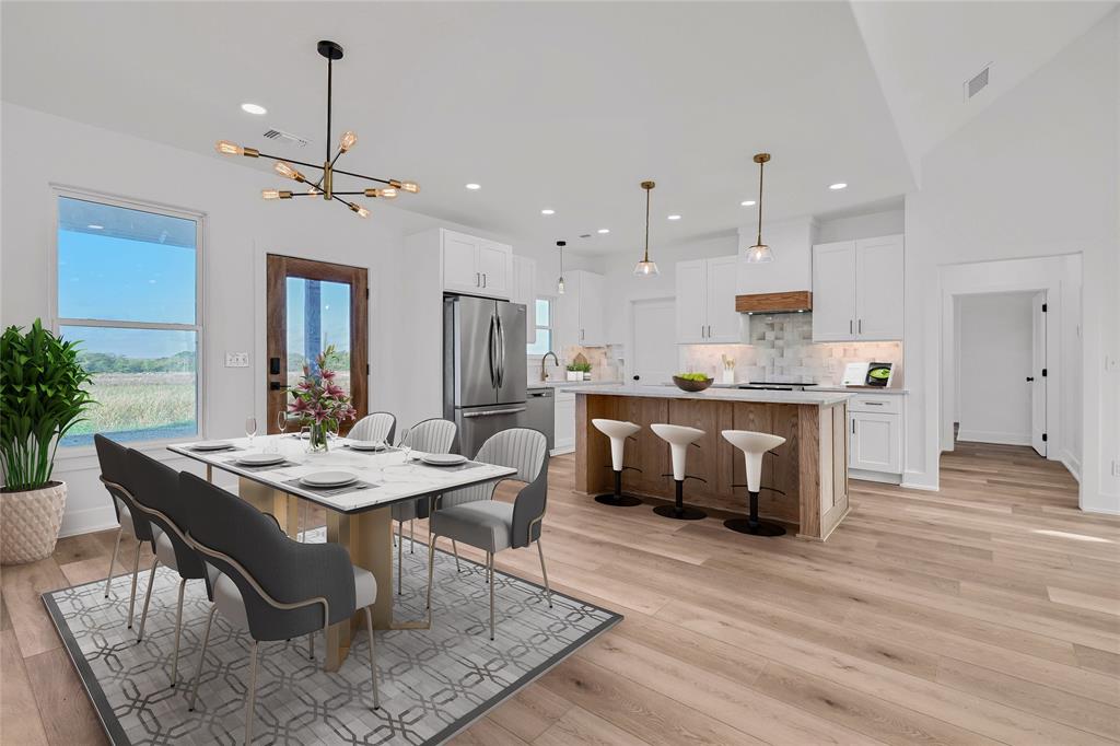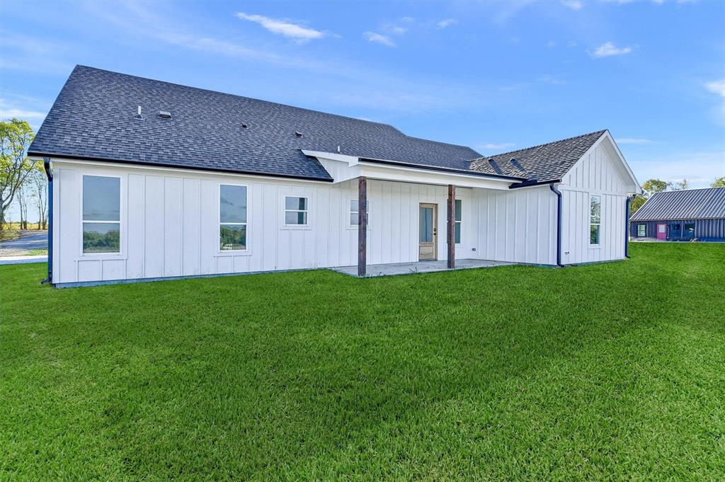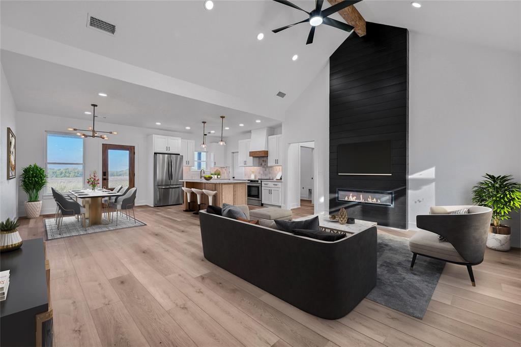 Best value around! Welcome to your brand new dream home, nestled on just over an acre in a peaceful countryside. This beautifully designed one-story home offers 4 spacious bedrooms and 2 luxurious bathrooms, all wrapped in a modern elegance and thoughtfully curated high-end finishes. Step inside and be greeted by an open-concept layout filled with natural light, soaring ceilings, and stunning designer touches throughout. The heart of the home is a sleek contemporary kitchen featuring stainless steel appliances, quartz countertops, a natural solid wood island crowned with exquisite Taj Mahal granite, and an expansive walk-in pantry with additional quartz workspace. The open living and dining area centers around a striking fireplace wall with an electric heat fireplace, complete with LED lights and a remote control for customizable ambiance - perfect for cozy evenings or entertaining guests. Your private primary suite offers a tranquil escape, complete with a spa-inspired bathroom and generous walk-in closet. Step outside to a covered patio overlooking scenic countryside views - ideal for relaxing or hosting gatherings. Beyond its beauty, this home is built for comfort and efficiency. Enjoy fully encapsulated spray foam insulation, an insulated garage door and attic access, and advanced systems including a two-stage variable speed HVAC with ERV and hybrid heath pump water heater - designed to keep your home comfortable year-round while keeping energy costs low. Sound-dampening insulation between rooms and durable commercial-grade luxury vinyl plank flooring with a 30mil scratch-resistant wear layer add both quiet and durability to daily life. This home perfectly blends modern sophistication with the warmth and serenity of country living - truly a place to call home.