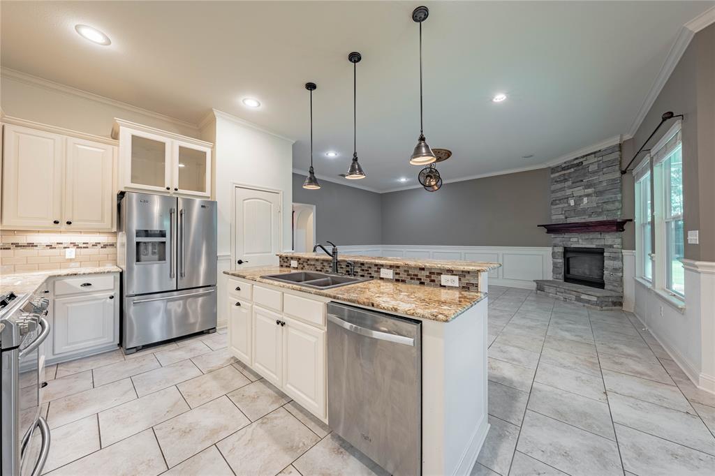 Contingent upon bank approval. Custom built home on quiet cul-de sac near Chandler, Texas. This lovely home features: 4 bedrooms, 2 full bathrooms, with 2,238 sq ft of living space. Inside you will find an open concept living room with gas log & stone surround fire place. The dining area overlooks the backyard and connects to the kitchen. The kitchen includes a gas fueled cook top with white cabinets, eat in kitchen island with granite countertops and refrigerator is included. The primary bedroom off the kitchen with en-suite bathroom includes separate vanities, separate walk in closets and separate shower. The two guest bedrooms downstairs share second full bathroom and don't miss the 4th guest bedroom upstairs that could also be used as a media room or game room space, front & back yards are beautifully landscaped. The pergola in the back yard with the mature trees are perfect for relaxation - entertaining and play. With very close proximity to Lake Palestine, schools, restaurants, & main roads this home is perfect.