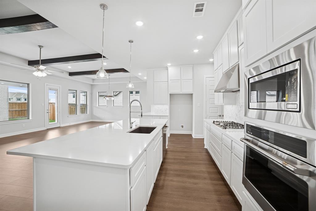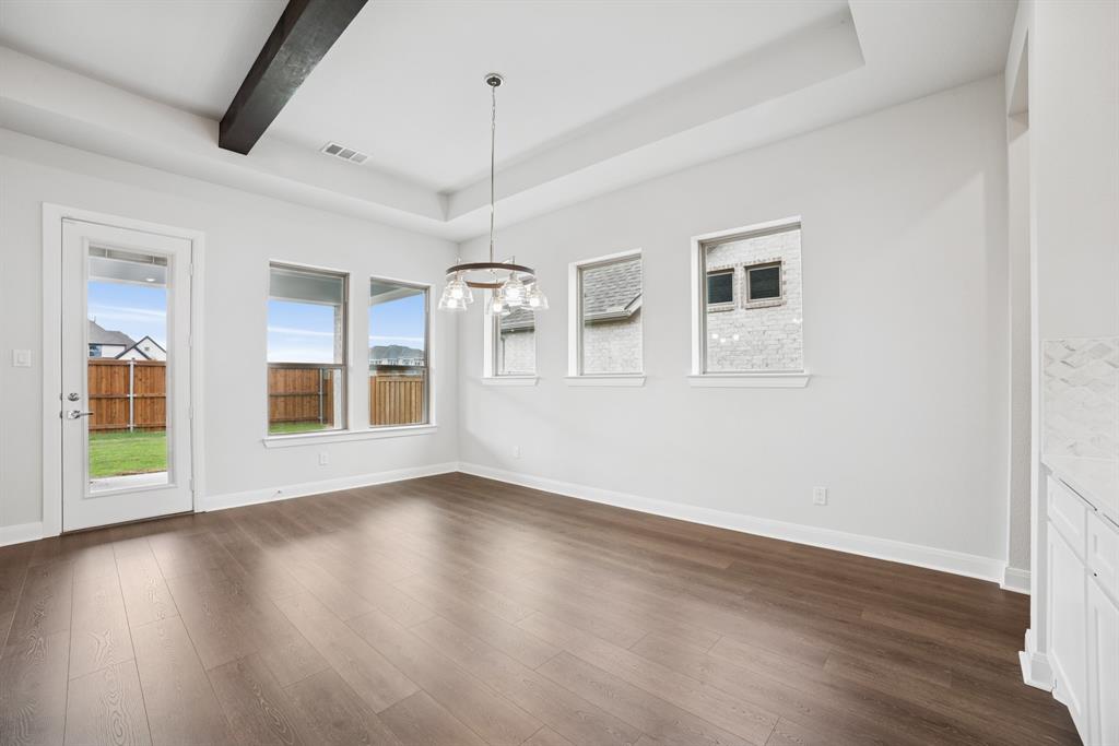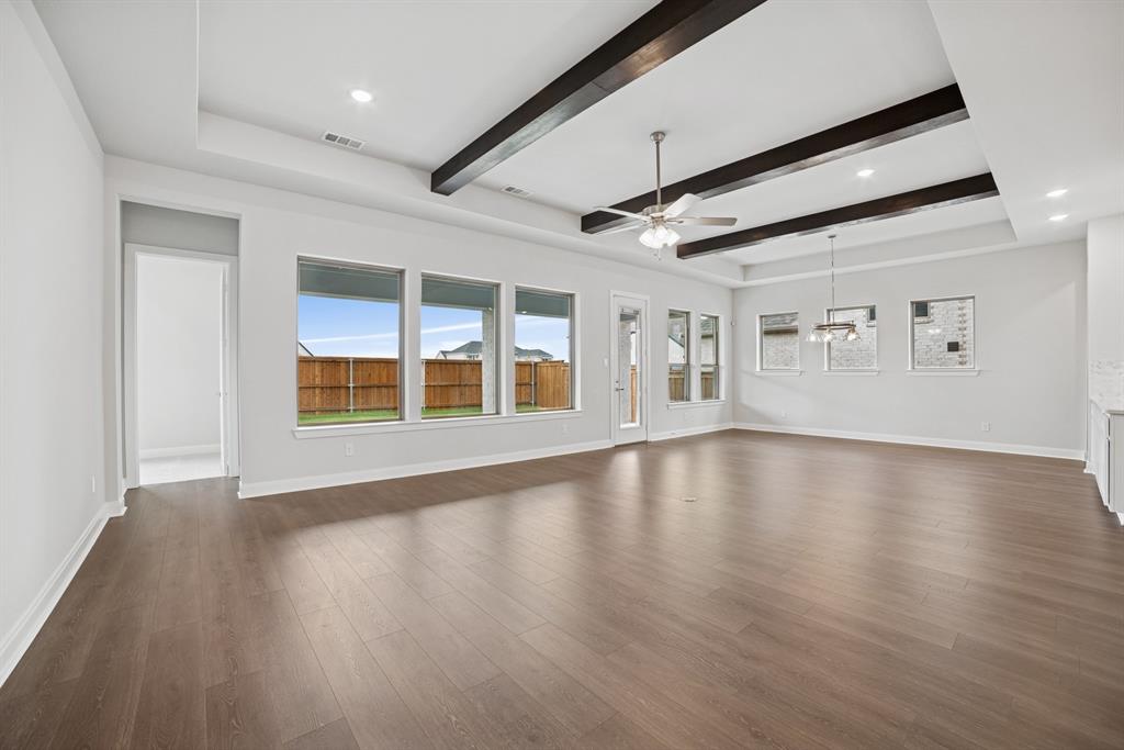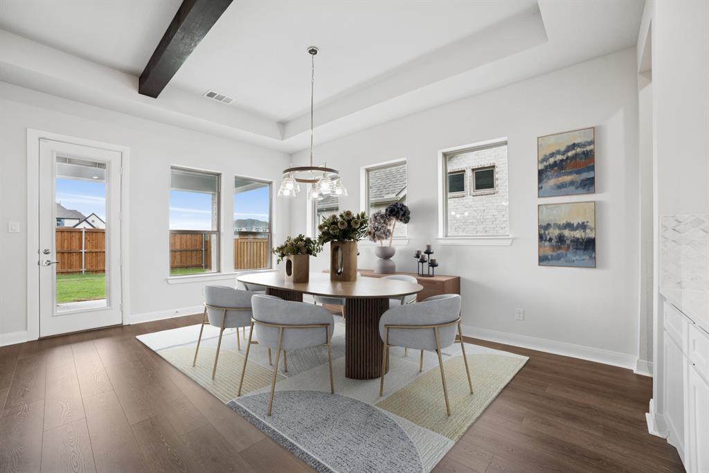 Step into The Avalon Retreat, where sophisticated design meets everyday luxury. This exquisite home boasts coffered ceilings with rich wood beams, creating a striking architectural statement while enhancing the sense of space and grandeur. The heart of the home is a beautifully designed open-concept living area, seamlessly flowing into a gourmet kitchen with ample storage. The enclosed study offers a quiet sanctuary, perfect for work or relaxation. Step outside to the large covered patio to unwind in a private outdoor oasis. Send a message to the David Weekley Homes at The Terraces Team to build your future with this beautiful new home for sale in Rockwall, Texas!