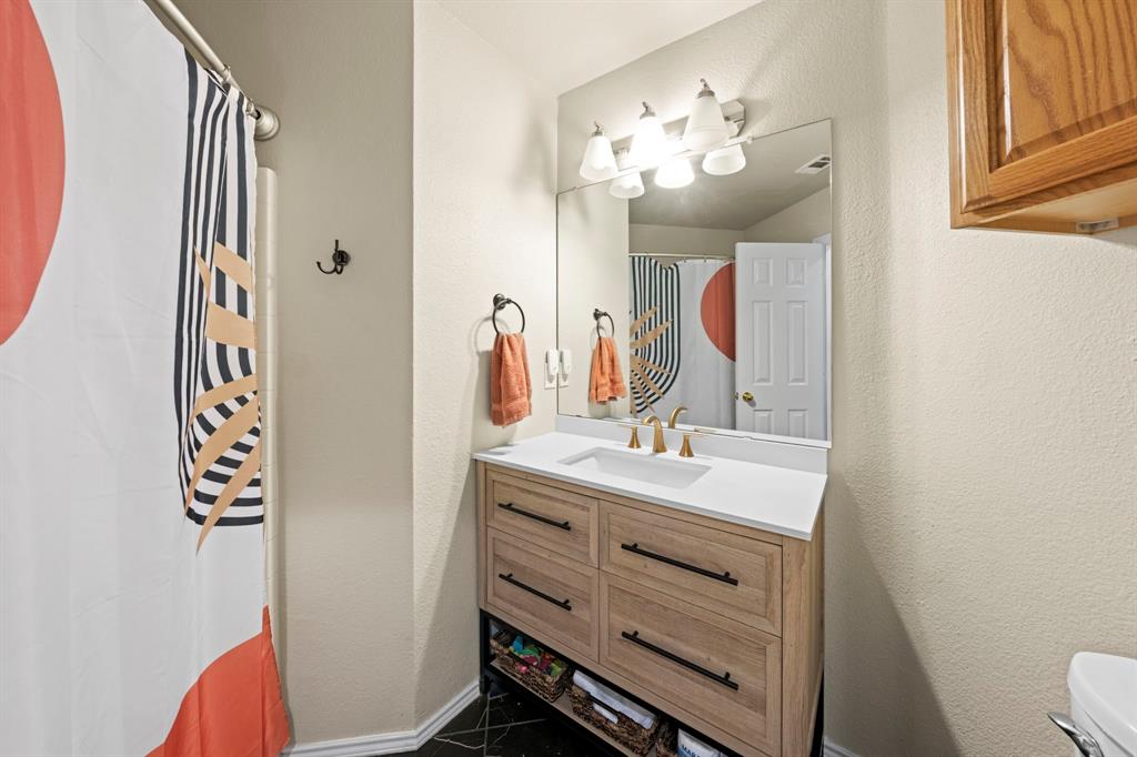 Secondary bath updated with newer tile floors and vanity. New roof and gutters (June 2025) and new back door with built-in mini blinds.