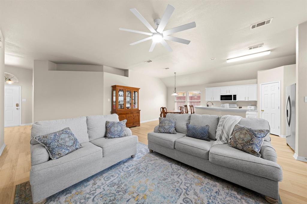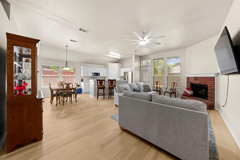 Well-maintained, move-in ready home in a desirable cul-de-sac location next to a park with walking trails. Open-concept floor plan with wood-burning fireplace, high ceilings, and ceiling fans throughout. Newer luxury vinyl plank (LVP) flooring provides durability and modern style.