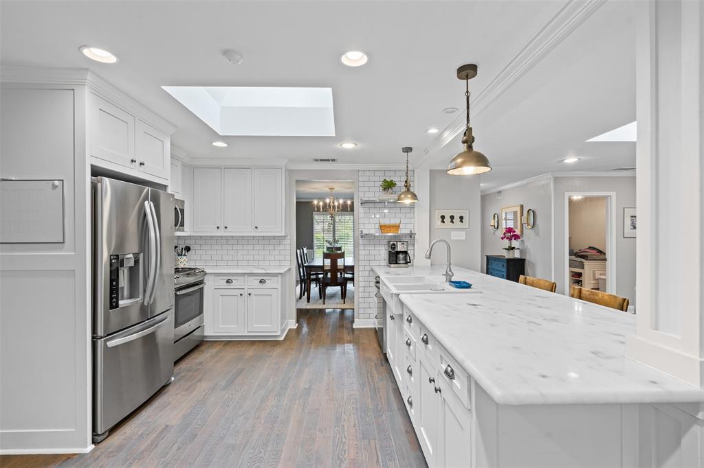 Step inside to discover a perfect blend of modern updates and timeless character. The open-concept kitchen is a chef’s dream, complete with marble countertops, a breakfast bar, stainless steel appliances, and a pantry for added storage. Recent renovations have refreshed both the kitchen and bathrooms, giving the home a crisp, contemporary aesthetic.