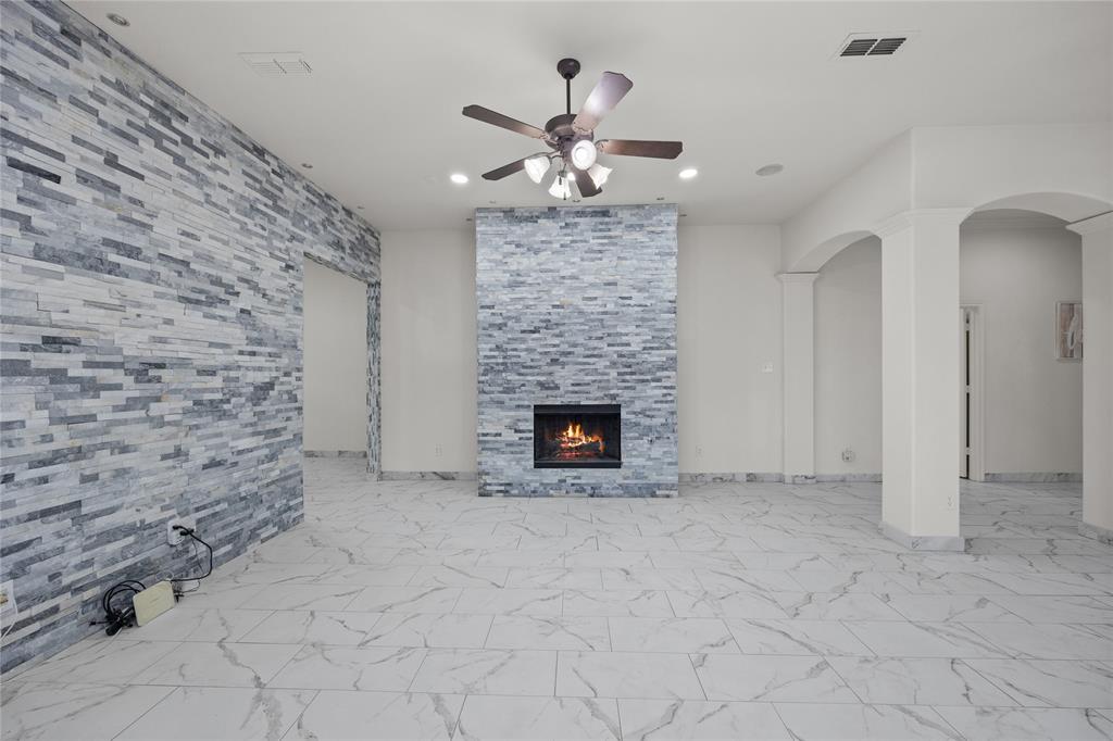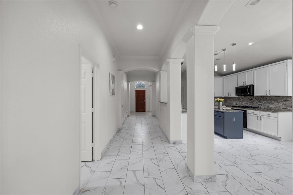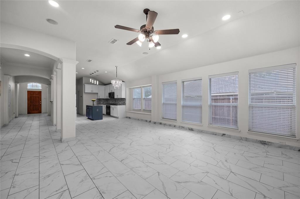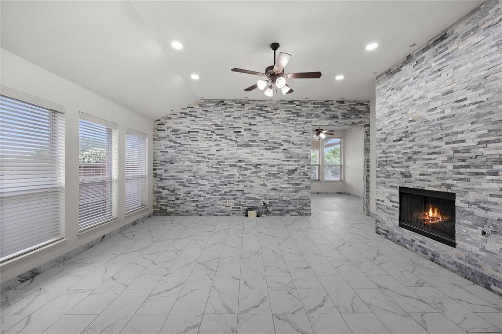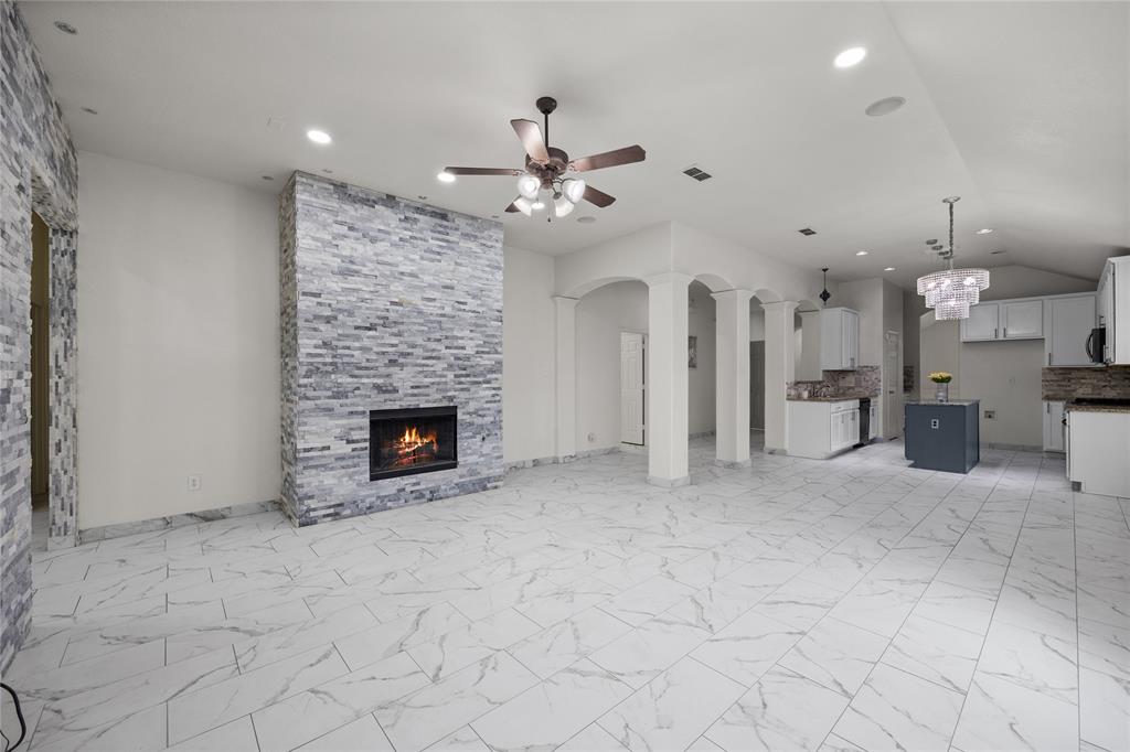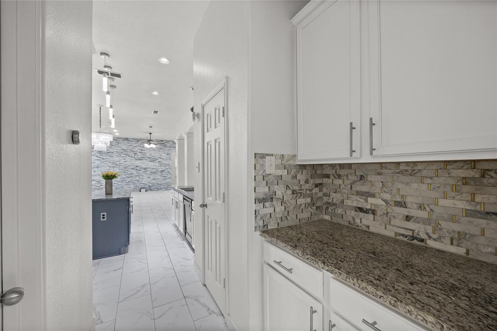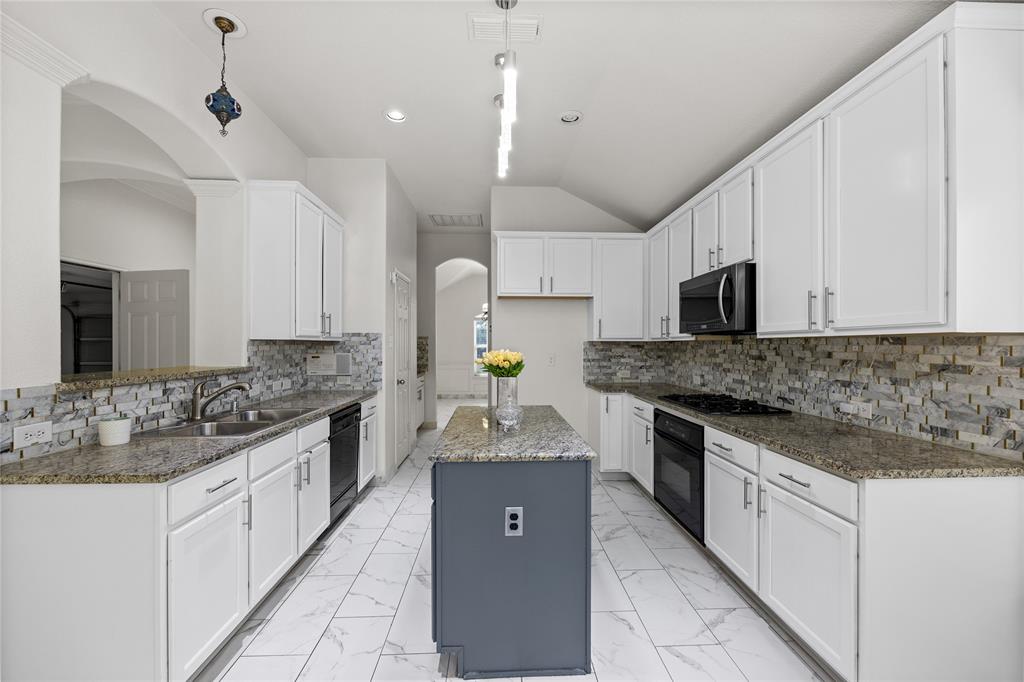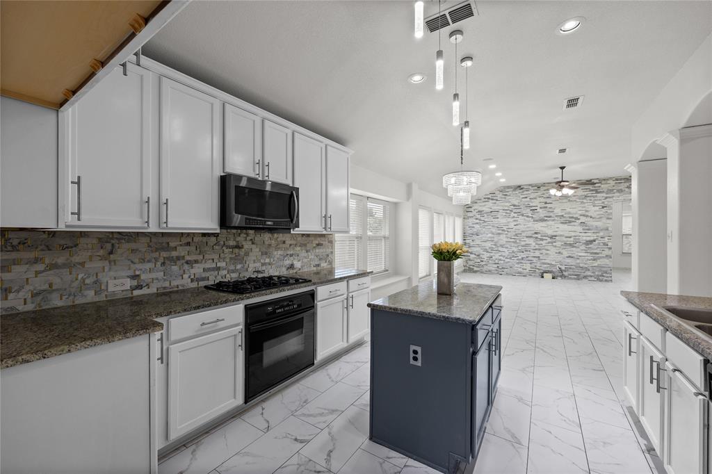 It has 4 bedrooms, 2 living areas, and 2 dining spaces. The flooring has been upgraded, with new paint and a tile backsplash. The kitchen connects to the formal dining room and overlooks the living room, which features a cozy fireplace—perfect for chilly evenings. The kitchen also boasts a kitchen island with gorgeous granite. Must See it!