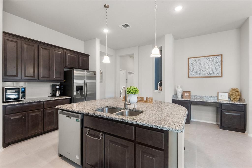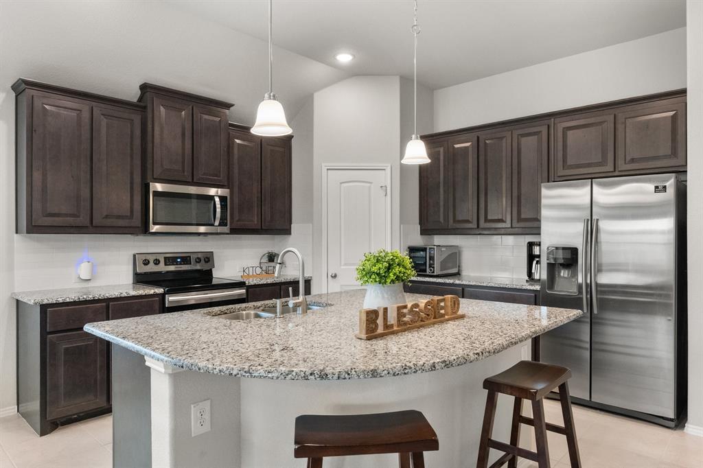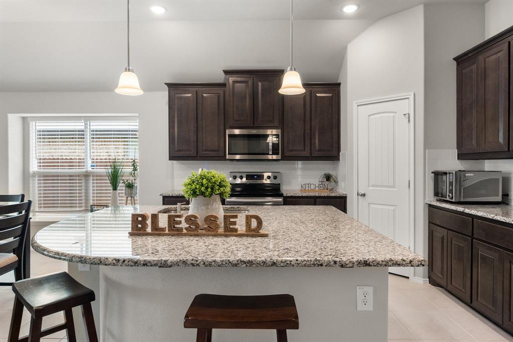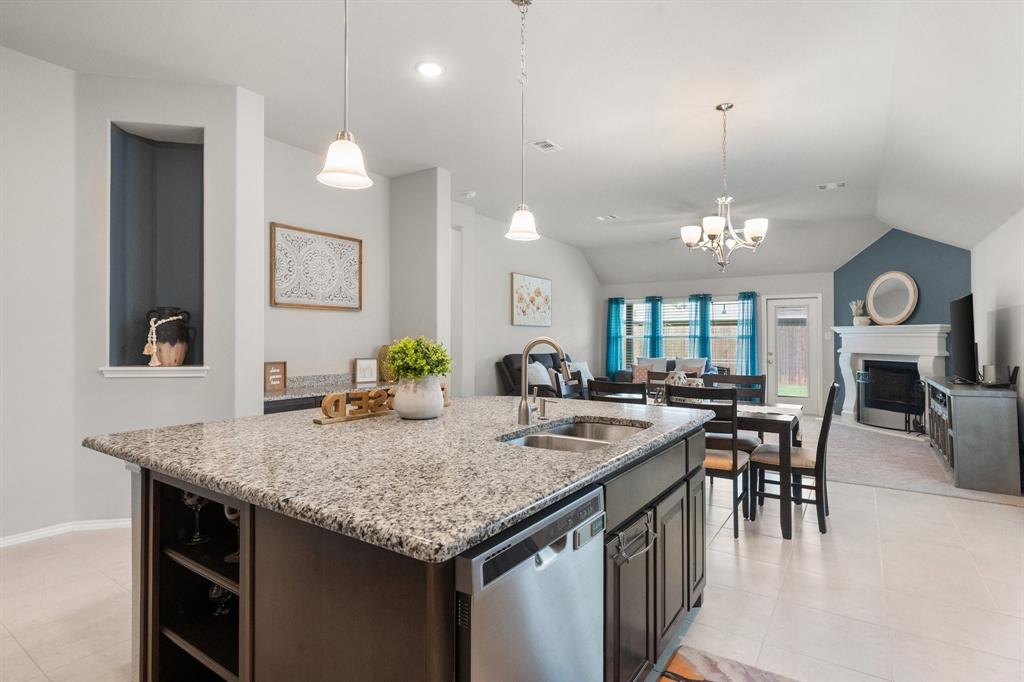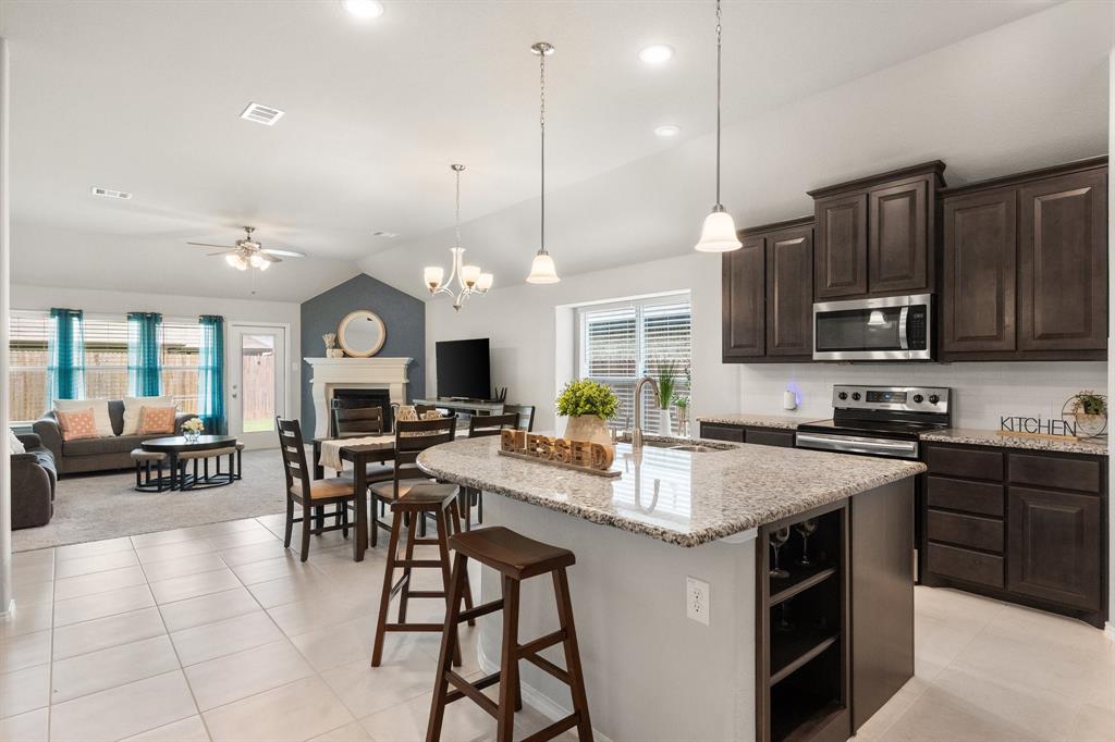 Nestled in a charming Fort Worth neighborhood, conveniently located near Crowley and Burleson, this delightful home offers modern living with a touch of elegance. Built in 2021, this 1,874 square foot residence features 3 bedrooms and 2 bathrooms, providing ample space for comfortable living. The open floorplan seamlessly connects the spacious kitchen and living room, perfect for entertaining and family gatherings. A versatile flex room offers endless possibilities – a home office, formal dining area, or a fun-filled recreation space. The kitchen boasts granite countertops, a large island, and modern appliances, making it a chef's dream. The primary bedroom is a true retreat, featuring a cozy window seat and a luxurious ensuite bath with a large vanity, relaxing garden tub, upgraded tile shower, and a generously sized walk-in closet.
