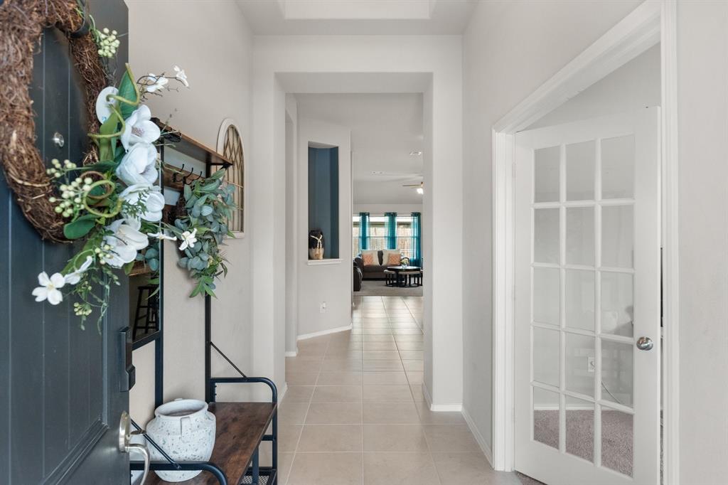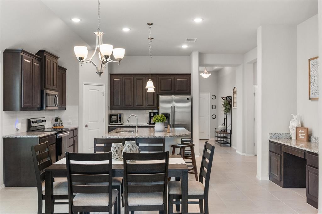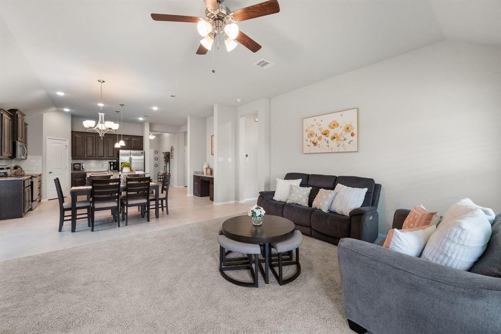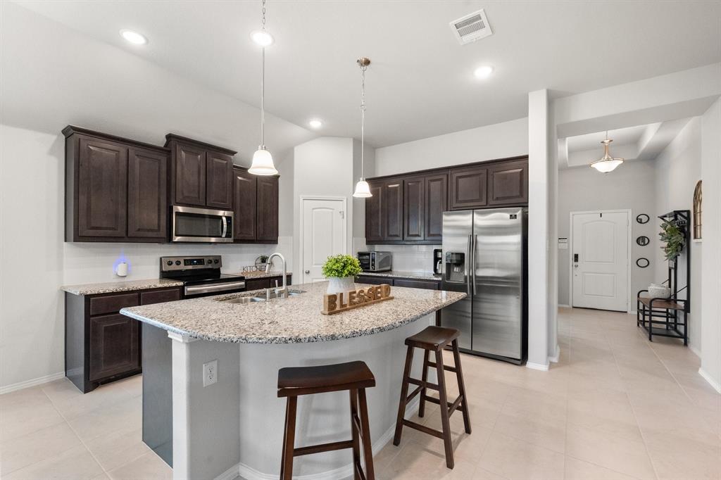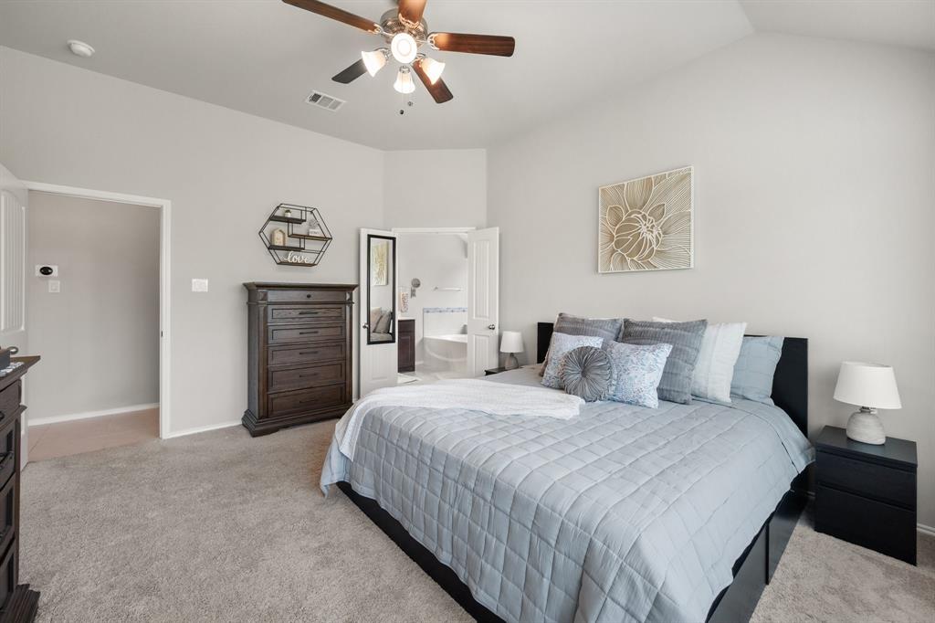 Nestled in a charming Fort Worth neighborhood, conveniently located near Crowley and Burleson, this delightful home offers modern living with a touch of elegance. Built in 2021, this 1,874 square foot residence features 3 bedrooms and 2 bathrooms, providing ample space for comfortable living. The open floorplan seamlessly connects the spacious kitchen and living room, perfect for entertaining and family gatherings. A versatile flex room offers endless possibilities – a home office, formal dining area, or a fun-filled recreation space. The kitchen boasts granite countertops, a large island, and modern appliances, making it a chef's dream. The primary bedroom is a true retreat, featuring a cozy window seat and a luxurious ensuite bath with a large vanity, relaxing garden tub, upgraded tile shower, and a generously sized walk-in closet.