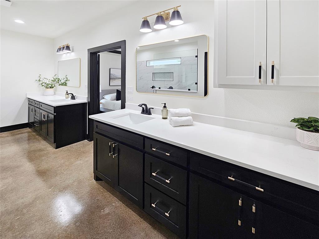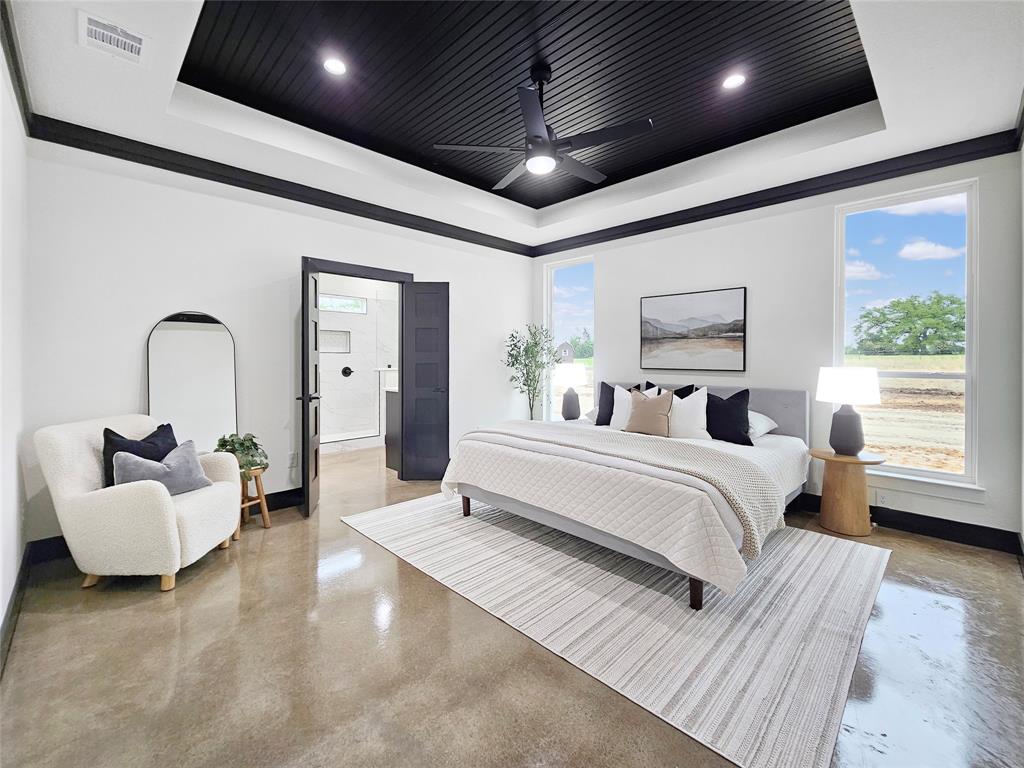 Inside, you'll find a refined blend of clean lines and warm finishes, including quartz countertops, real wood soft-close cabinetry with under-cabinet lighting (no MDF here), and impressive 10-foot ceilings. The kitchen is gas-ready—just bring your propane tank! The master suite is a sanctuary with a tray ceiling, spacious walk-in closet, dual vanities, and a spa-like double shower.