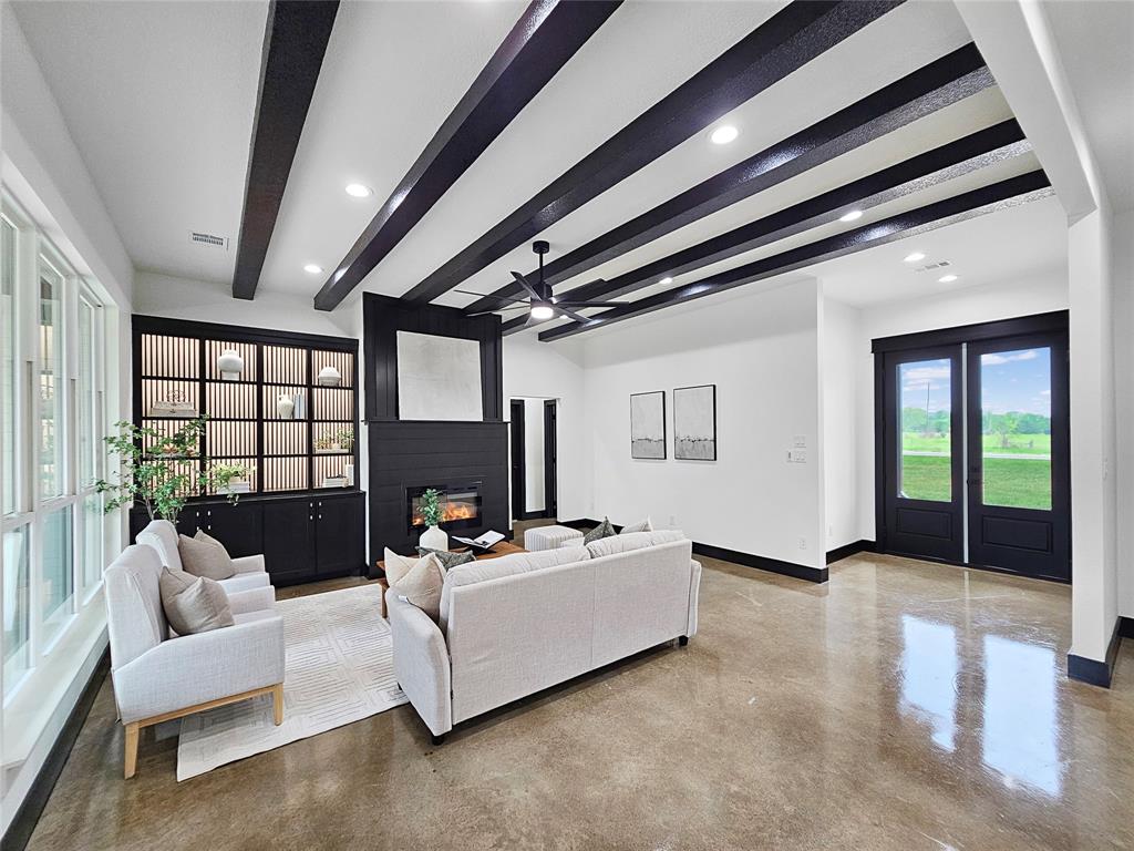 Additional highlights include a sleek electric fireplace, built-in bookcase with lighting, wide interior doors for wheelchair accessibility, and energy-efficient features such as spray foam insulation, premium windows, and a top-tier Trane HVAC system.
