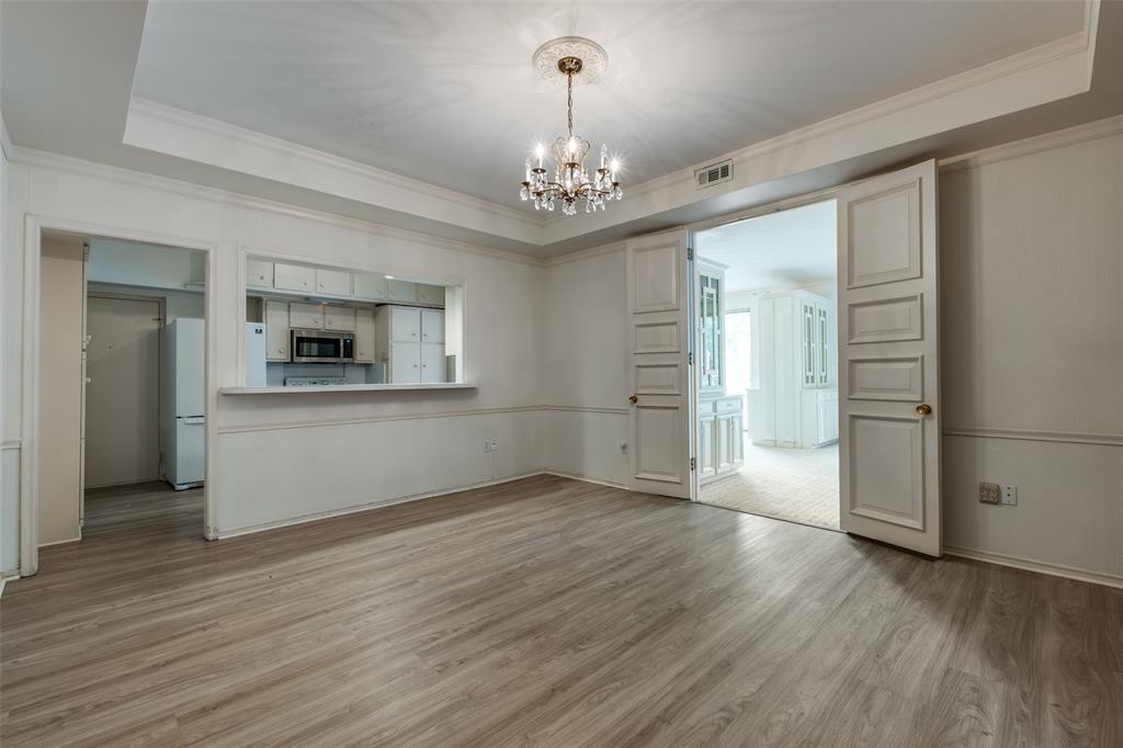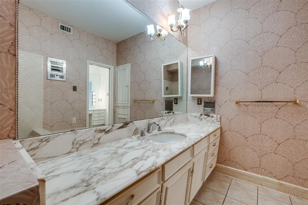 Desirable first floor condominium located in the heart of Dallas’ storied Behind the Pink Wall neighborhood—an iconic mid-century enclave developed in the 1950s and ‘60s by Hal Anderson and partners—this desirable first-floor condo at Royal Arms Condominiums, offers a rare blend of history, charm, and effortless living. Once and still a symbol of prestige and exclusivity, the area remains a quiet retreat just moments from Preston Center, NorthPark Center, and US-75, offering walkability, serenity, and a unique sense of place. Inside, the home features an elegant layout with two spacious living areas, a formal dining room, and two generously sized bedrooms—each with its own private bath. Two sliding glass doors open directly to the community gardens and the pool, creating a seamless connection between indoor and outdoor living. Just beyond the back door, two side-by-side covered parking spaces add everyday convenience. Perfect for those seeking a true lock-and-leave lifestyle, the active and welcoming HOA covers all utilities, exterior maintenance, and insurance—simplifying homeownership and making this residence ideal for full-time living or a Dallas pied-à-terre.