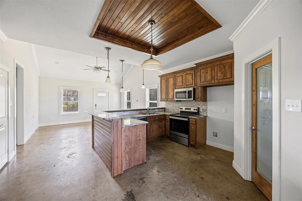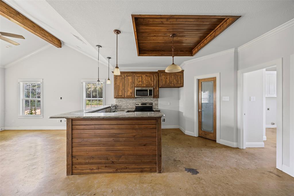 This 2-acre property features a modern 3-bedroom, 2-bath prairie-style home built in 2020. Inside, you'll find polished concrete floors, an open layout, and a large kitchen and living area. A huge covered patio extends your living space outdoors, perfect for gatherings or quiet evenings. The home also includes covered parking for two cars. The property is in a flood zone — flood insurance may be required.