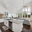 The chef’s kitchen is the true showstopper, boasting a massive island, granite countertops, custom backsplash, matte black fixtures, and elegant built-in glass cabinetry—a perfect balance of function and style.