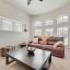 The heart of the home features a thoughtfully arranged open-concept kitchen, living, and dining area, with custom built-ins that add both charm and practical storage. Oversized windows and high ceilings enhance the open, airy feel, making the home ideal for both everyday living and entertaining.