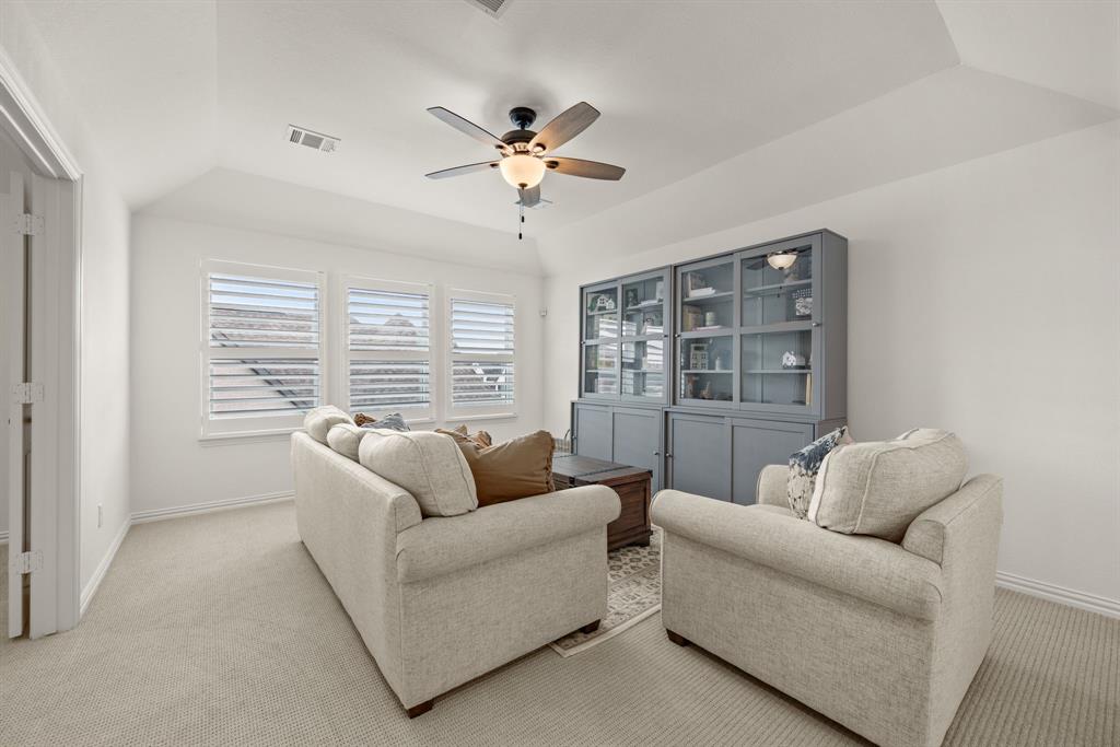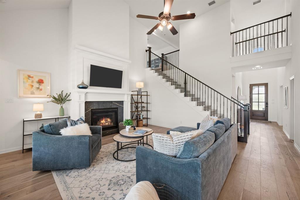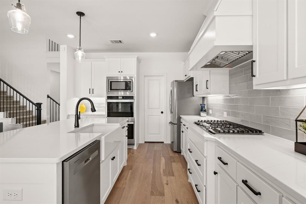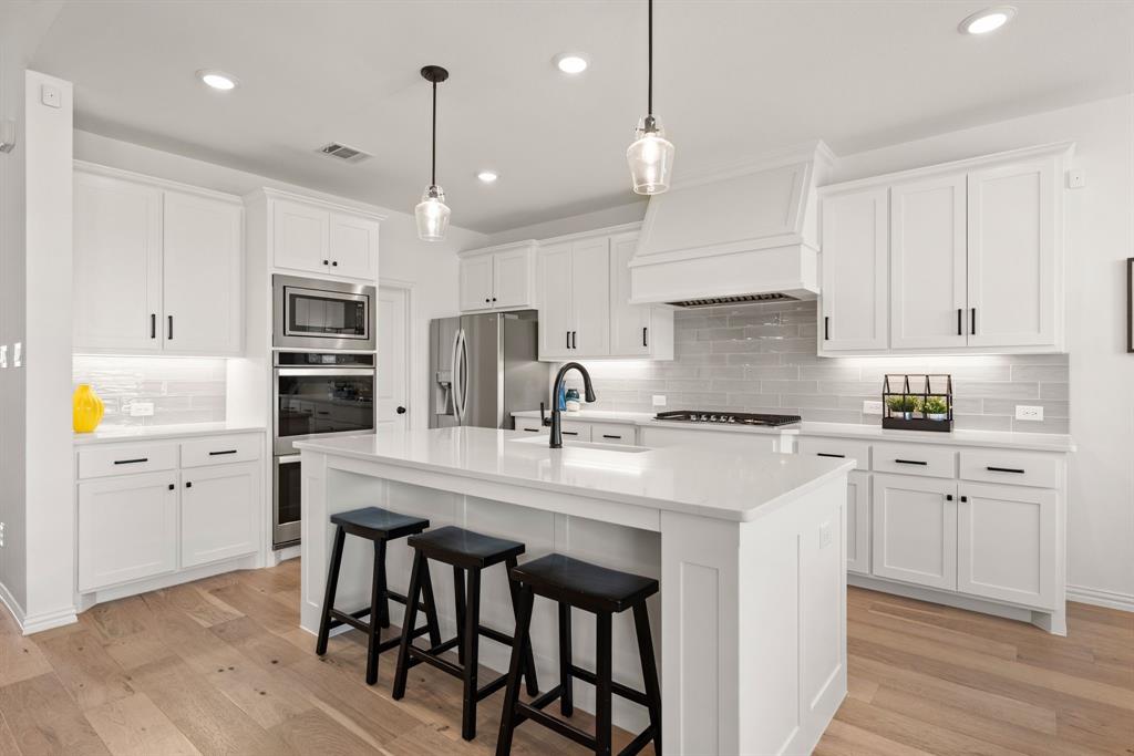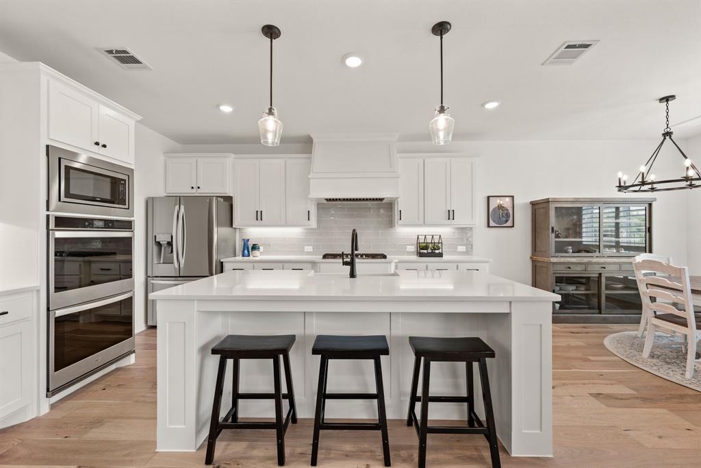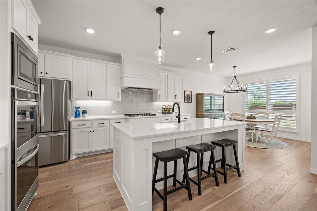 Better than New! This stunning home exceeds expectations and is move-in ready! This nearly 3,200 sq. ft, 4 bed, 3.5 bath home in Haslet features $85K in upgrades. Featuring soaring ceilings, plantation shutters throughout, the open concept living area is just off the chef’s kitchen featuring dual ovens and a premium gas top stove with deluxe vent hood. The massive island with ample seating, quartz countertops, built-in cabinetry and a walk-in pantry make the kitchen the center for entertaining. The extended WiFi and full security system—including window break detection—add smart comfort. The home’s stunning stone and brick exterior with perfect front porch adds curb appeal and timeless charm.