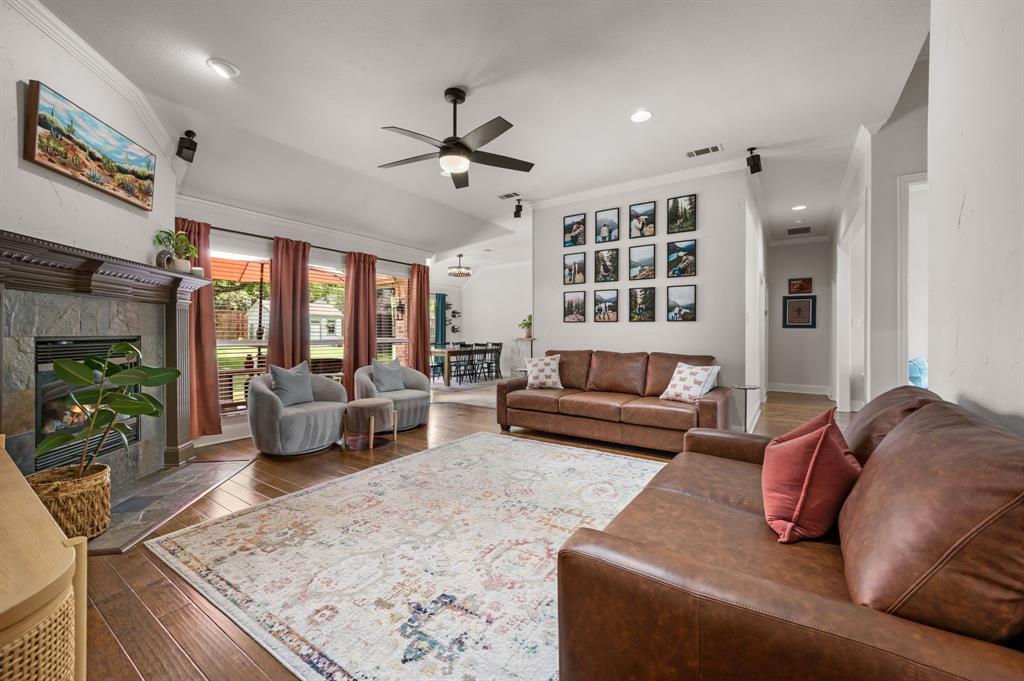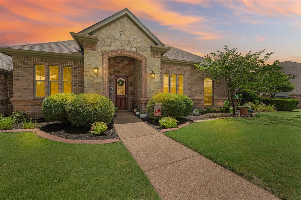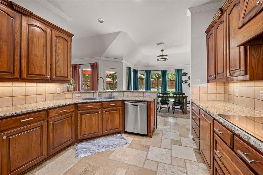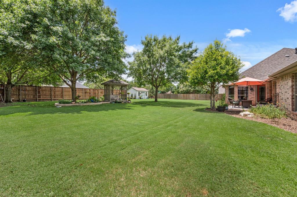Welcome to 113 Applewood Lane, where comfort meets character on nearly half an acre of lush, beautifully maintained land! Step through the charming front entry into a light filled foyer flanked by large windows and inviting flex spaces, ideal for a home office or second living area. The heart of the home is a warm and timeless kitchen featuring rich custom cabinetry, granite countertops and stainless steel appliances. The open layout flows seamlessly into the dining area, offering scenic views and natural light. Just off the kitchen is a spacious living area that is perfect for entertaining or relaxing by the fireplace. Retreat to the oversized primary suite with a spa inspired bath showcasing a luxurious walk in shower, soaking tub dual vanities and a large walk in closet. Generously sized secondary bedrooms and a large guest bathroom with slate tile floors and dual sinks offer comfort and style. The dedicated laundry room includes granite counters and ample storage. Updated lighting fixtures and classic finishes carry throughout the home. Step outside to your dreamy Texas sized backyard with an extended patio and vibrant landscaping. Whether sipping morning coffee under the shade of mature trees or hosting evening gatherings, this outdoor space is your private oasis. An added bonus includes a custom 12X16 storage shed, side yard access for a trailer or boat and a picturesque sunset view that seals the deal. Located in an established neighborhood within the highly sought after NISD, minutes from schools, dining and shopping, this home truly has it all!