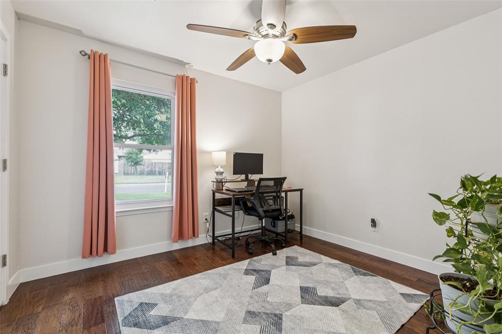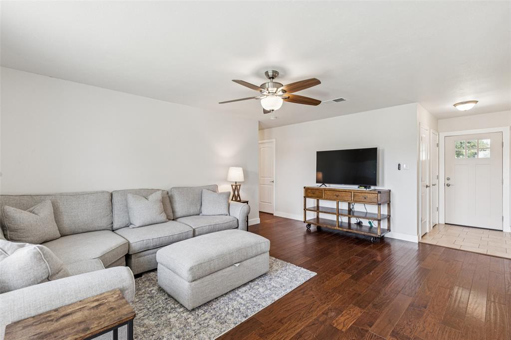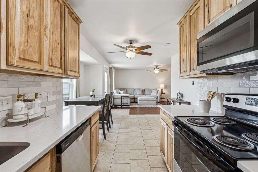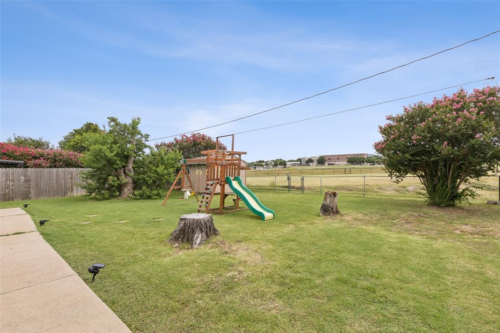 LIKE NEW CONSTRUCTION + BACKS TO THE BRICK — Zoned to Top-Rated Mound Elementary! This fully renovated 3-bed, 2-bath home feels brand new with extensive updates throughout. Backs directly to the Burleson Recreation Center (BRiCk), with views of walking trails, soccer fields, and a playground—literally steps from your backyard. The list of upgrades is extensive: new roof, Honeywell thermostat, attic insulation, interior and exterior doors, quiet garage door opener, fresh interior paint, popcorn ceiling removal, decorative lighting, ceiling fans, smoke detectors, and more. The kitchen has been completely redesigned with gorgeous quartz countertops, subway tile backsplash, new real wood cabinets, and appliances (refrigerator, microwave, stove, and dishwasher is included). Bathrooms have also been updated with new vanities, modern sinks, updated toilets, a walk-in shower, and new tub. Mechanicals have also been brought up to speed—new electrical panel with surge protection, GFCI outlets, and hot water heater. The HVAC system—including the furnace, condenser, and ductwork—has been professionally serviced and cleaned for optimal performance. Relax or entertain outside on the extended concrete patio with direct views of the BRiCk’s green space.