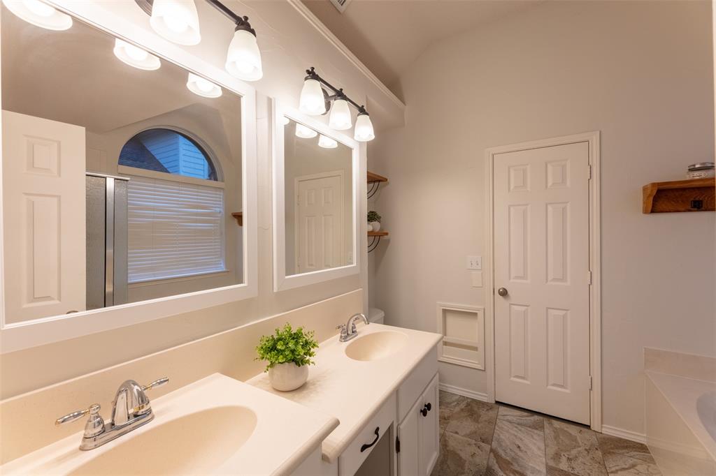 Buyer's will love this three bedroom, two bath and the location couldn't be more perfect! The home is located in the heart of Flower Mound and is close to major roads, with easy access to DFW Airport and shopping. Recent upgrades such as new flooring, paint, ceramic tile and more make the home feel move-in ready. The property has neutral colors, and a flexible layout that includes a cozy fireplace. Potential Buyers will appreciate the well equipped Kitchen with new dishwasher and features such as a stainless steel, gas range for those who love to cook. This adorable home has updated bathrooms, framed mirrors and decorator lighting. The Primary-bedroom has soaring vaulted ceilings and an ensuite with garden tub, separate shower, dual sinks and walk-in-closets. The functional sized secondary bedrooms and split floor-plan are great for those that value their privacy and space. Fully sprinklered back yard with nice size patio & garden area for you favorite herbs with room for the children to run and play. There are great near-by parks and easy access to all Flower Mound has to offer. This home is a perfect starter home yet flexible enough for those who are looking to downsize. You will love the great neighborhood and large driveway and garage for when company comes over! Lots of natural light and great curb appeal make this home one that you will fall in love with!