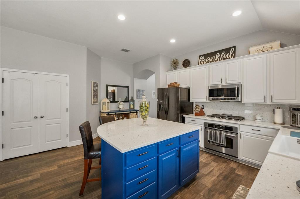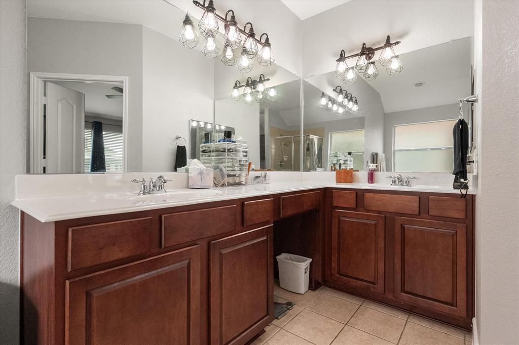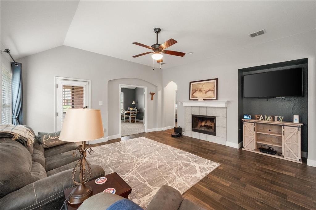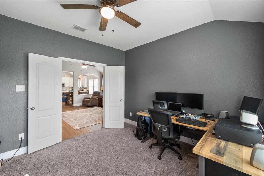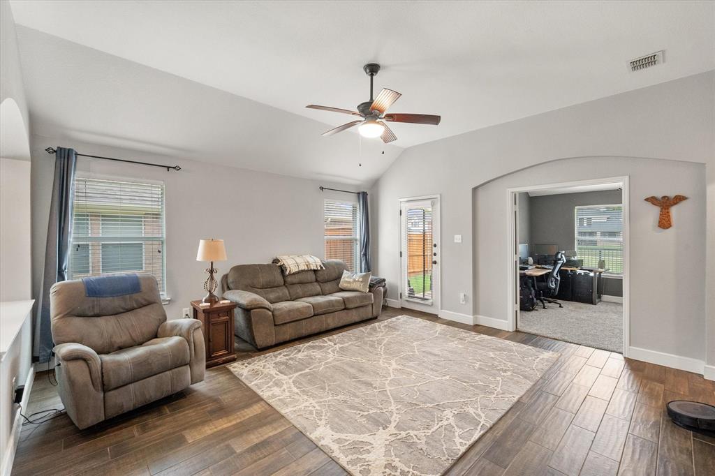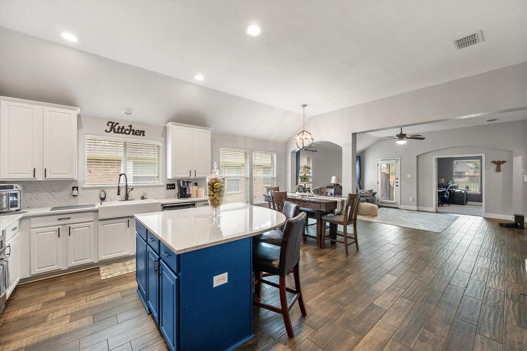 Come see this beautifully updated and well-maintained home in the sought-after subdivision of Mira Lagos! Fall in love with the open concept floor plan that's ideal for entertaining! It features a large and freshly renovated kitchen with crisp white cabinets, granite countertops, stainless steel appliances, and a perfect pop of color on the spacious island that accommodates seating for family and friends. It's an ideal Pinterest enthusiast kitchen with tons of natural light. The bedrooms are a split floor plan with 3 bedrooms, 2 full bathrooms, a flex space that can be used as a dining room or workout space, and a separate home office. Enjoy the open living area with a fireplace as the focal point, along with a custom-carved niche for your big screen TV, or make it a built-in bookshelf. The primary suite is nestled in the back of the home for maximum enjoyment. It has a large walk-in closet, a soaking tub with a separate shower, and a double vanity with ample storage and lighting. Enjoy a fresh cup of coffee on the back patio that has a nice view of the neighborhood's jogging paths. Mira Lagos offers three community pools, two jogging paths, a clubhouse, a soccer field, a playground, and so much more. It's located in MISD. The HVAC system was replaced in 2022.