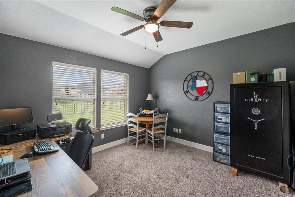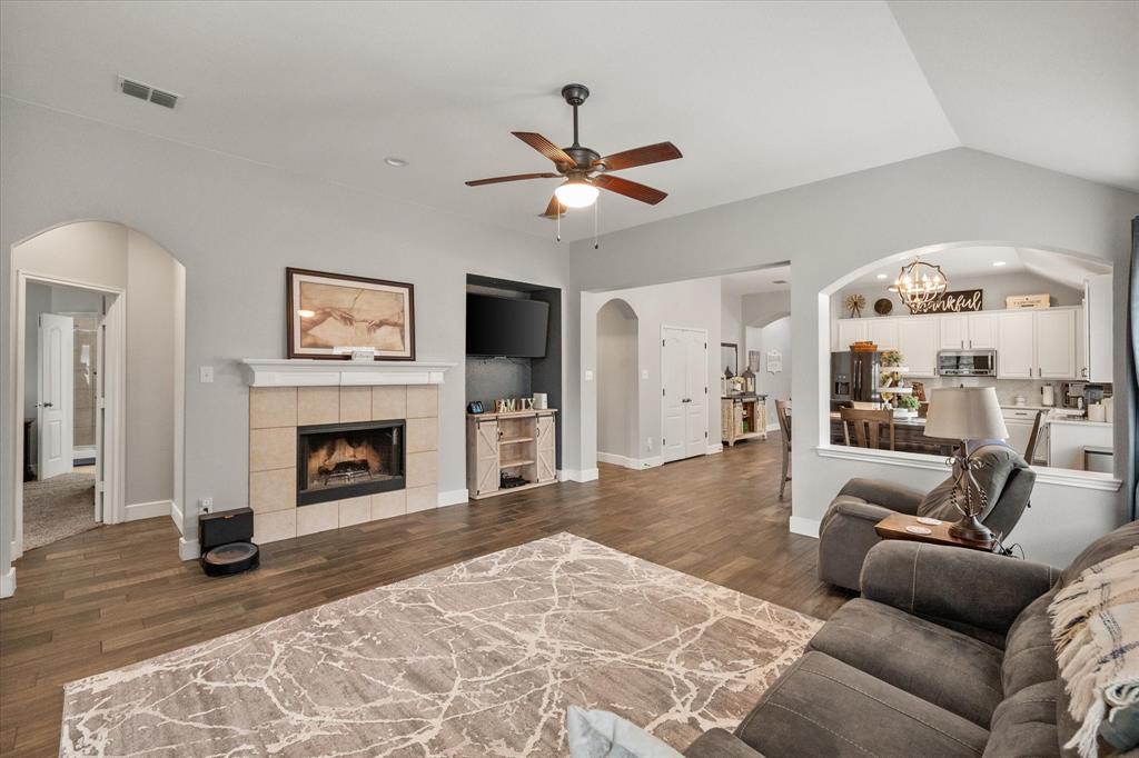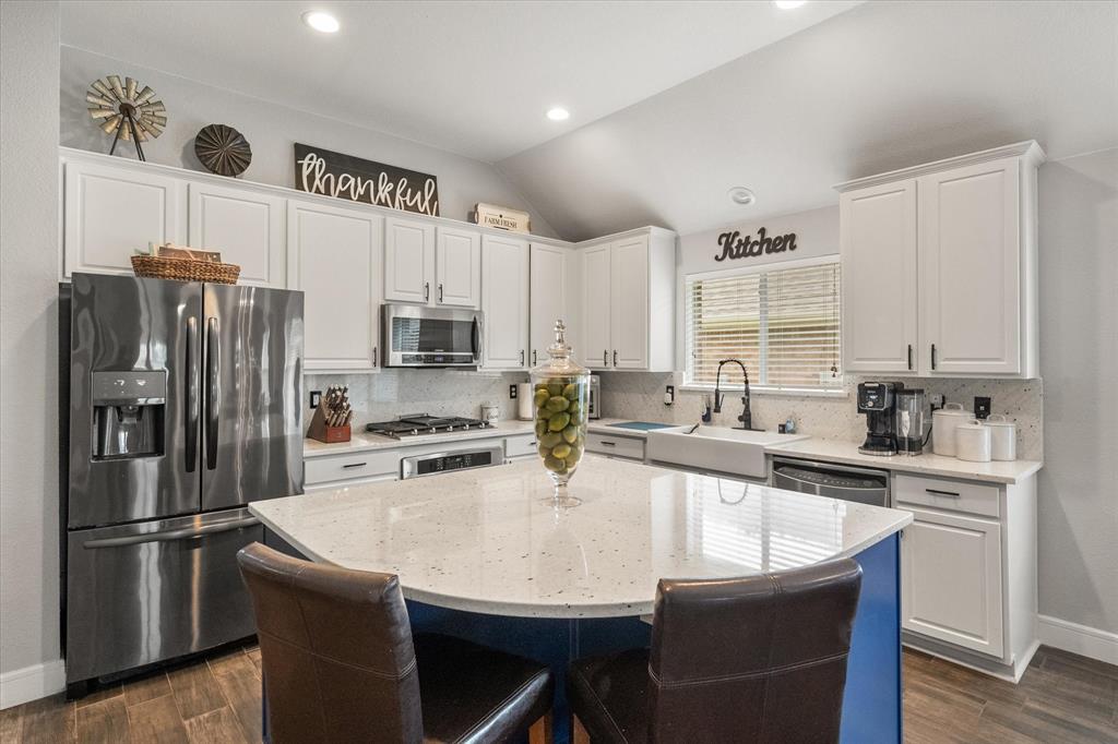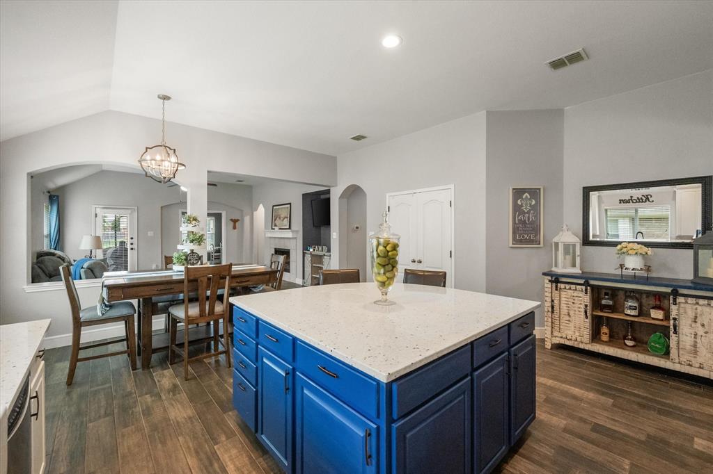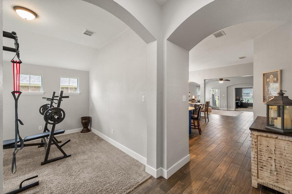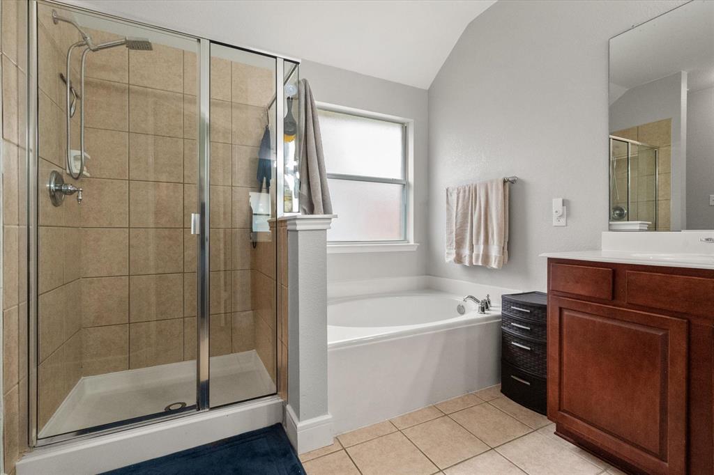 Come see this beautifully updated and well-maintained home in the sought-after subdivision of Mira Lagos! Fall in love with the open concept floor plan that's ideal for entertaining! It features a large and freshly renovated kitchen with crisp white cabinets, granite countertops, stainless steel appliances, and a perfect pop of color on the spacious island that accommodates seating for family and friends. It's an ideal Pinterest enthusiast kitchen with tons of natural light. The bedrooms are a split floor plan with 3 bedrooms, 2 full bathrooms, a flex space that can be used as a dining room or workout space, and a separate home office. Enjoy the open living area with a fireplace as the focal point, along with a custom-carved niche for your big screen TV, or make it a built-in bookshelf. The primary suite is nestled in the back of the home for maximum enjoyment. It has a large walk-in closet, a soaking tub with a separate shower, and a double vanity with ample storage and lighting. Enjoy a fresh cup of coffee on the back patio that has a nice view of the neighborhood's jogging paths. Mira Lagos offers three community pools, two jogging paths, a clubhouse, a soccer field, a playground, and so much more. It's located in MISD. The HVAC system was replaced in 2022.