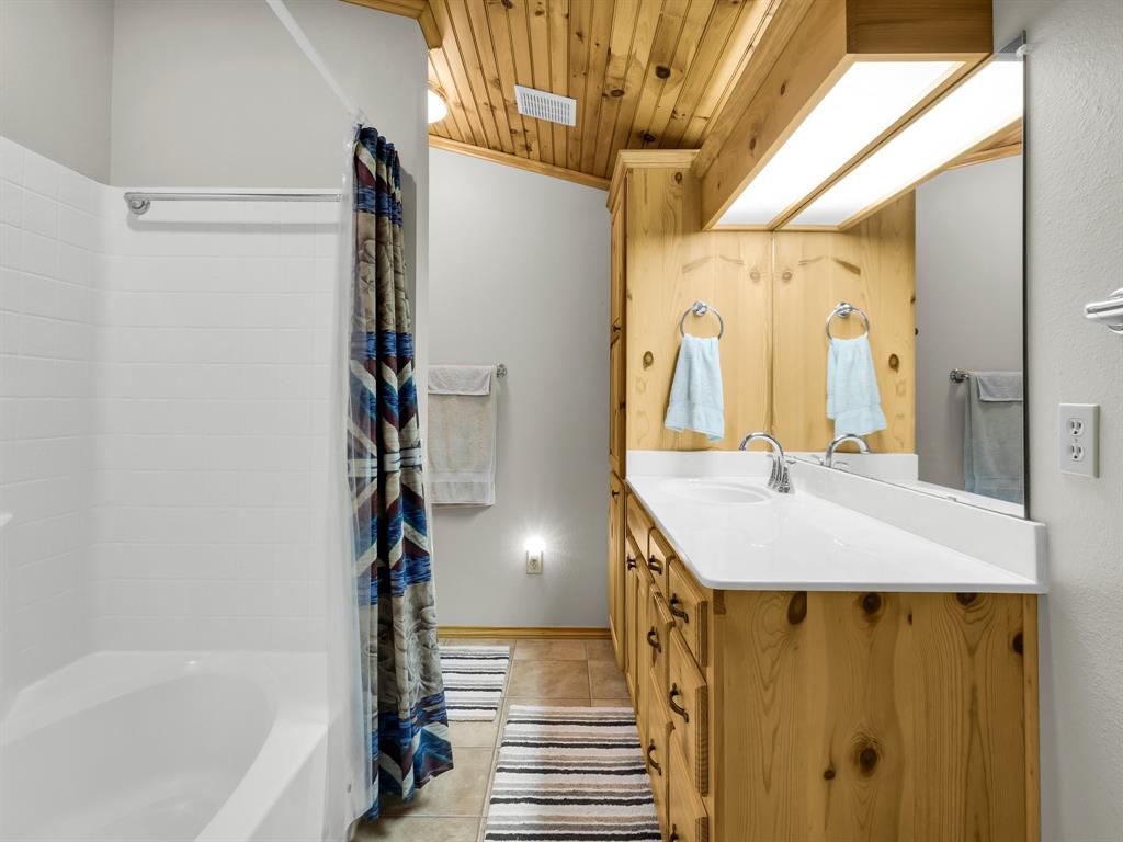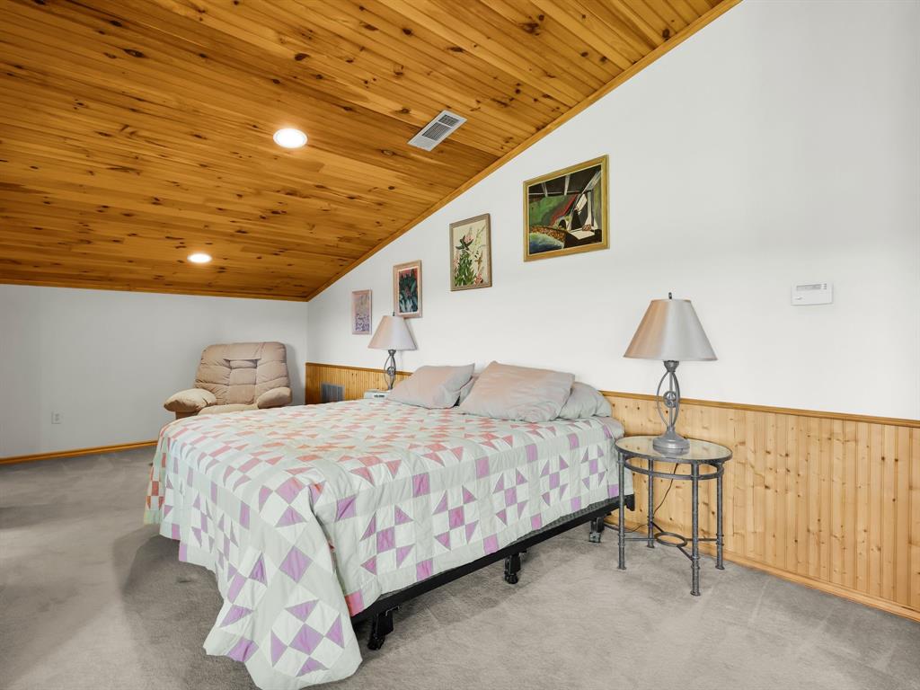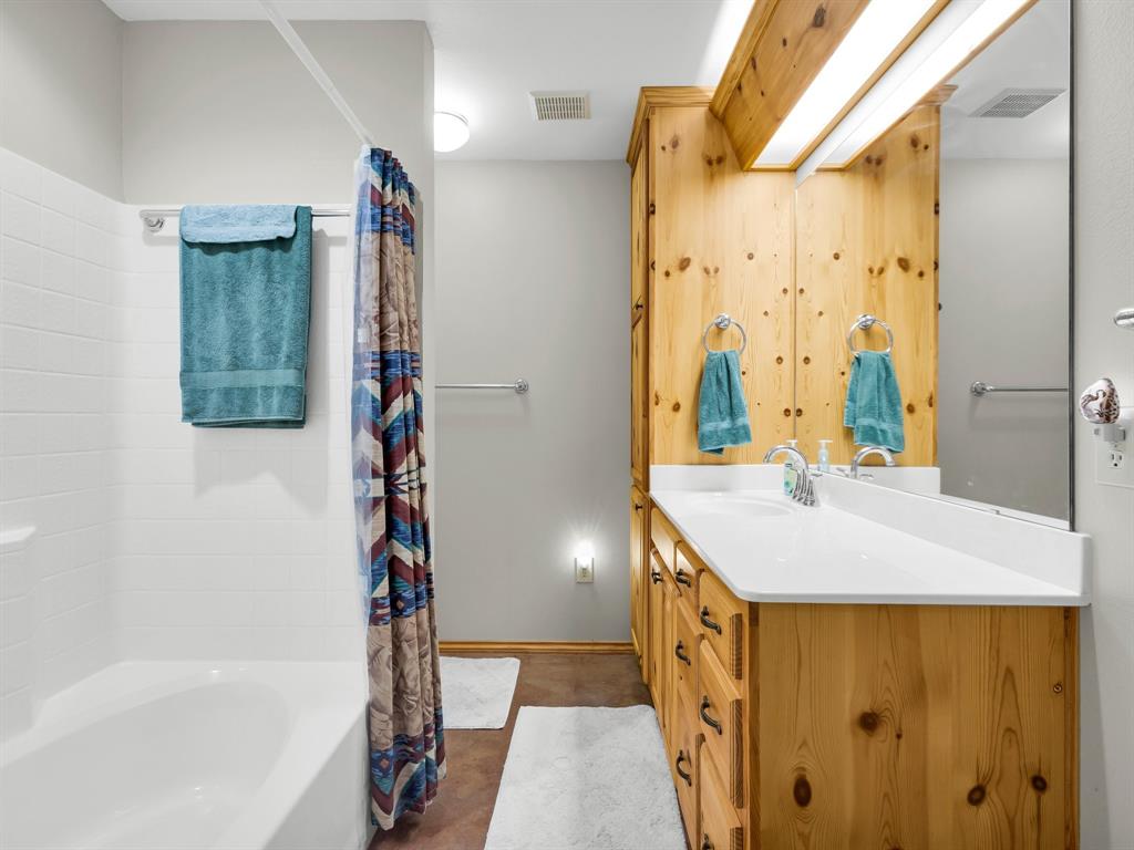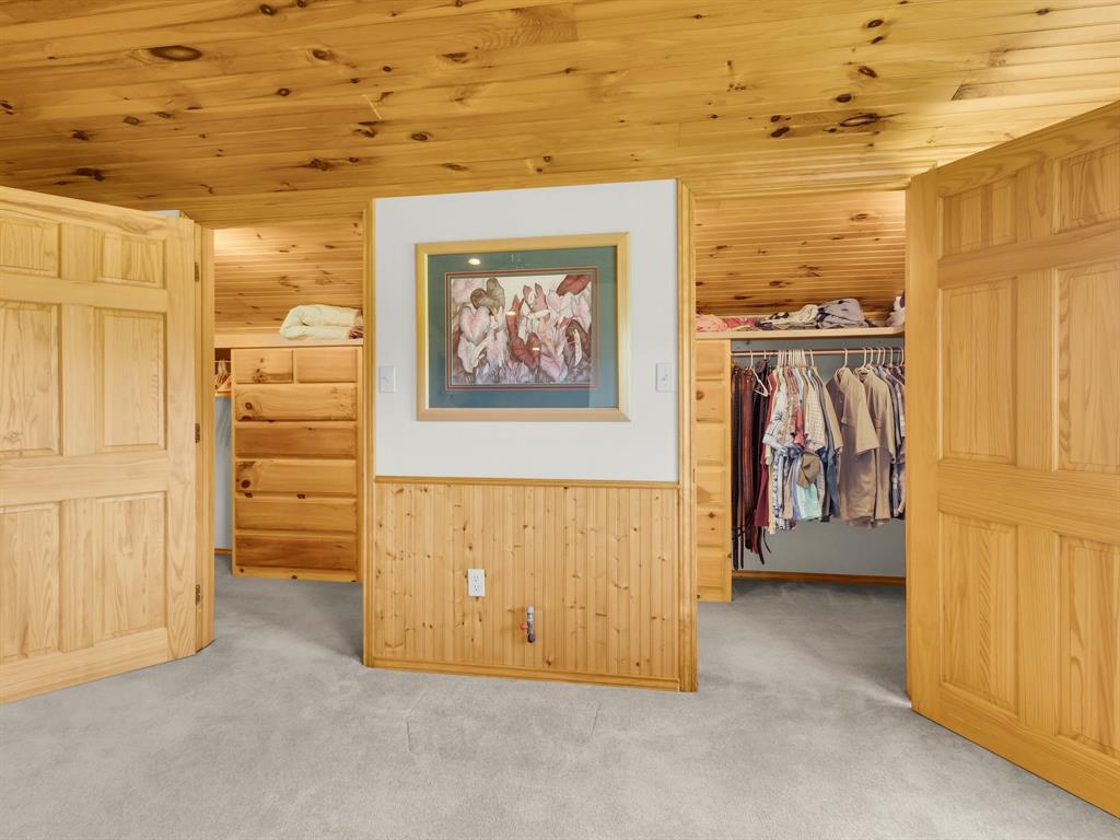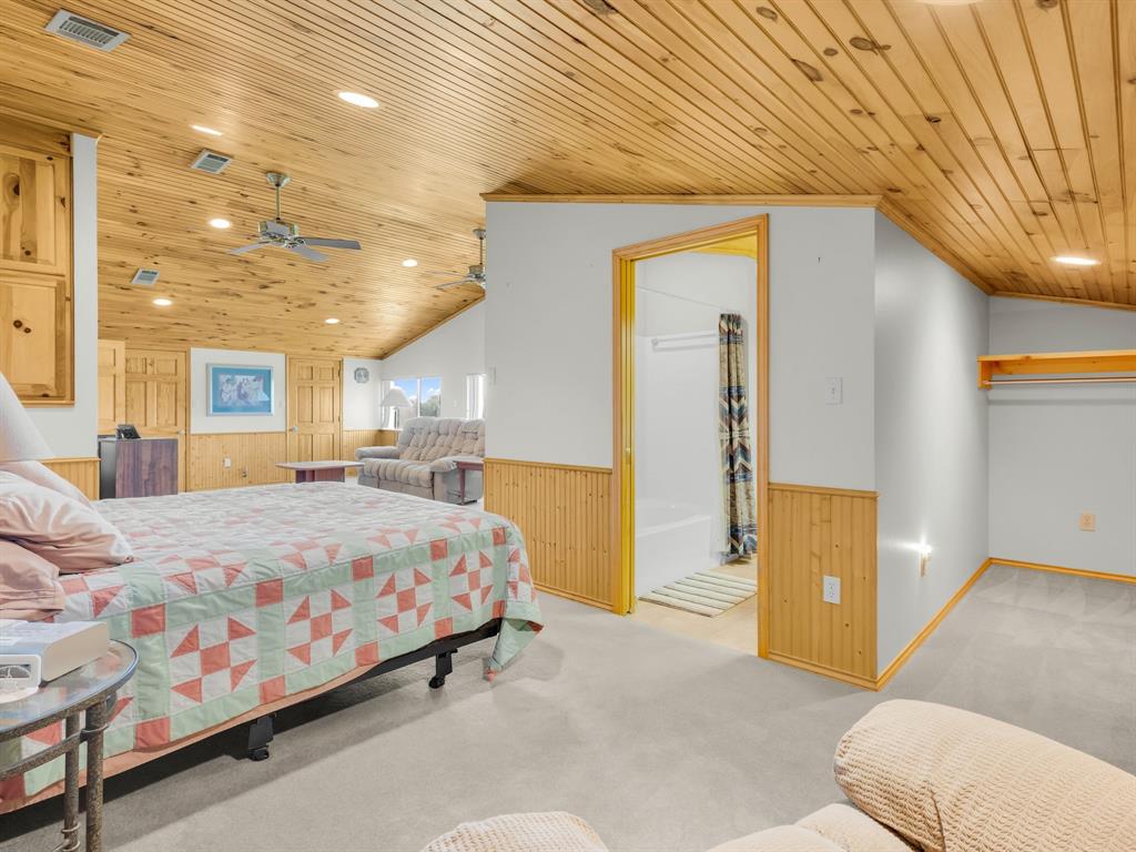 Inside, you’ll find custom handcrafted pine cabinetry, durable stained concrete floors downstairs, plush carpet in the upstairs bedroom, and a tankless water heater for on-demand efficiency.