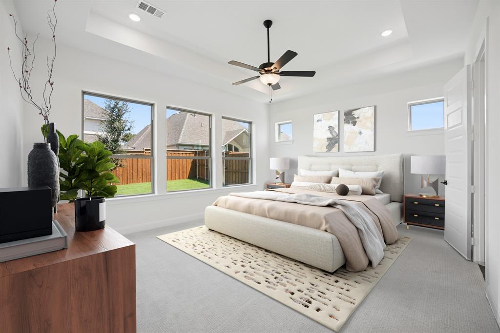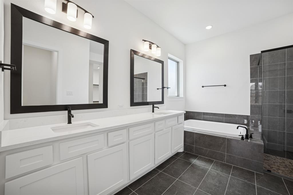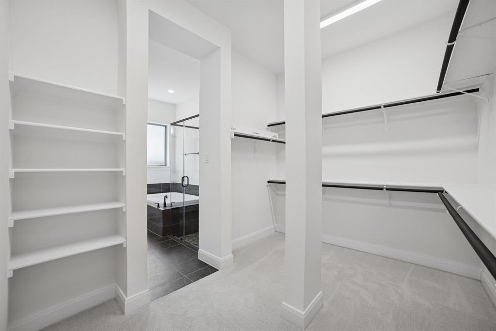 Prestige Pointe, Step into a world of sophistication and grandeur in this stunning luxury home that sits on an oversized corner homesite, where timeless design meets modern convenience. The breathtaking two-story living room, bathed in natural light from expansive windows, creates an awe inspiring space perfect for both lavish entertaining and intimate gatherings. You can’t miss the spacious and well appointed butler’s pantry, that offers ample storage and prep space. Indulge in spa like relaxation in the sumptuous soaking tub, a private retreat designed for ultimate tranquility.