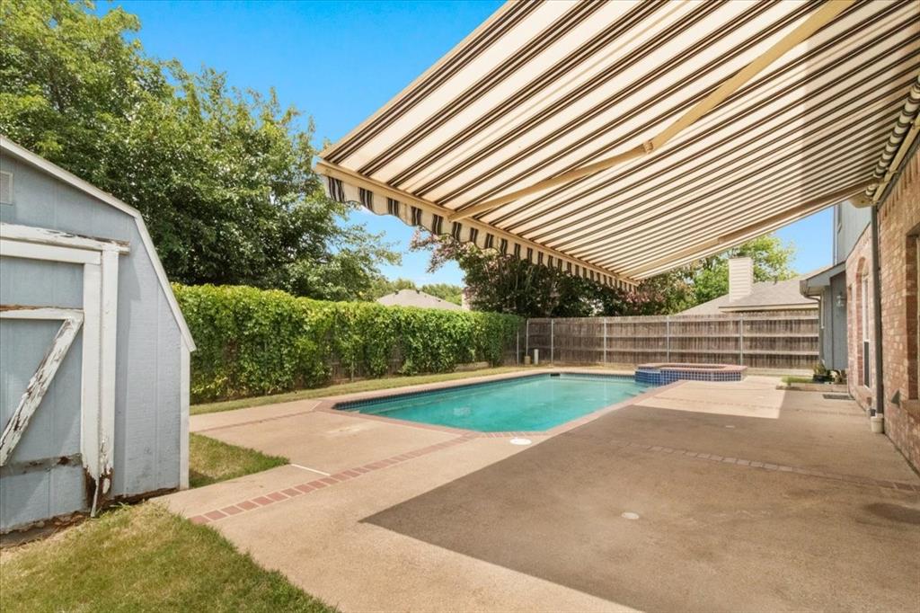Spacious 4-bedroom home with a beautiful pool and attached spa. Downstairs master with wood floors and the master bath has a garden tub and separate shower. 2 dining areas and the living room also has wood floors. Upstairs has 3 bedrooms, a full bath, and a 26x17 game room! Knockout half bath and utility room remodel! Zoned HVAC, storage building, and quick possession is available. Great location near 360 and Joe Pool Lake. Solar panels to be paid off by the seller at closing