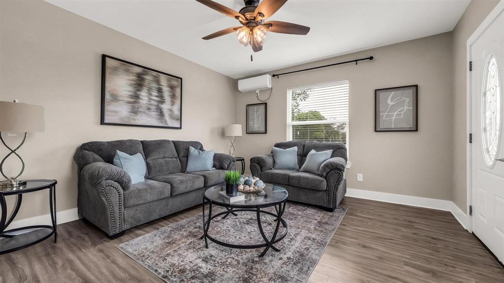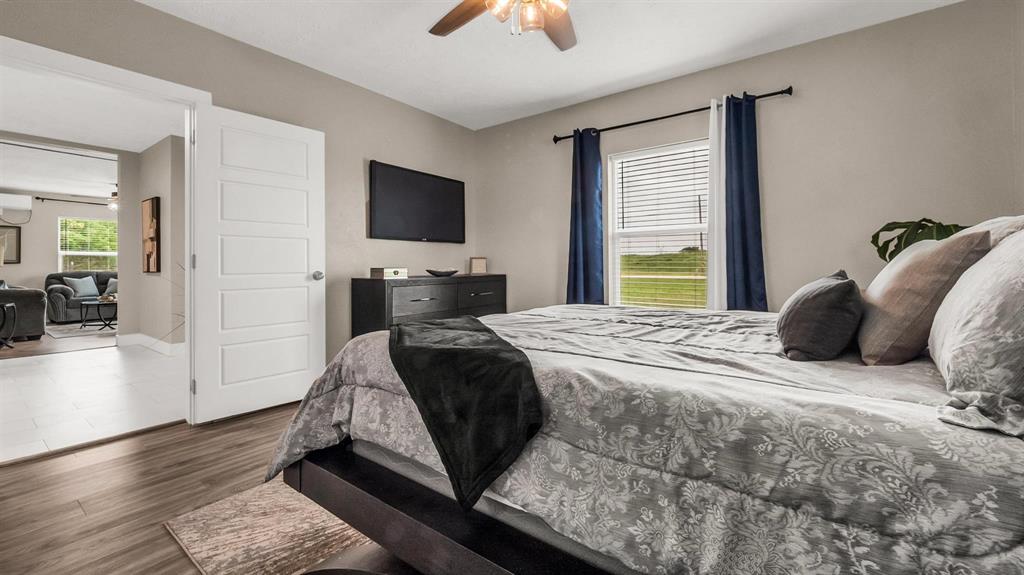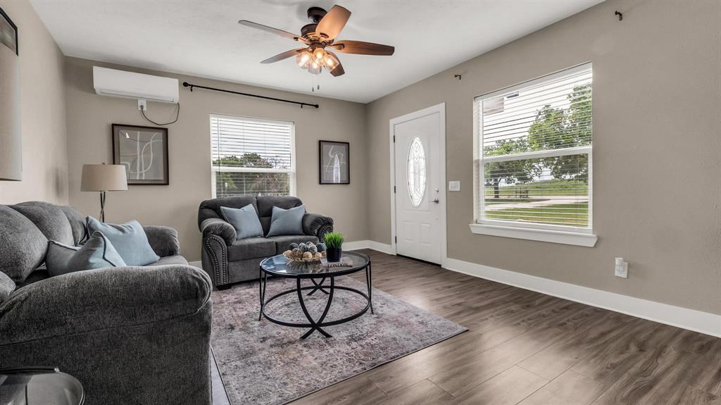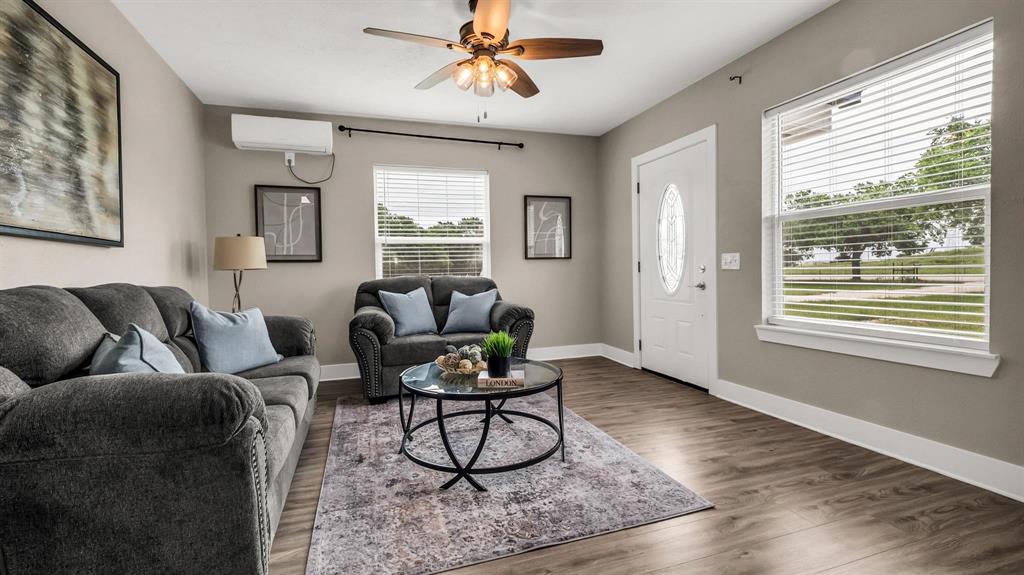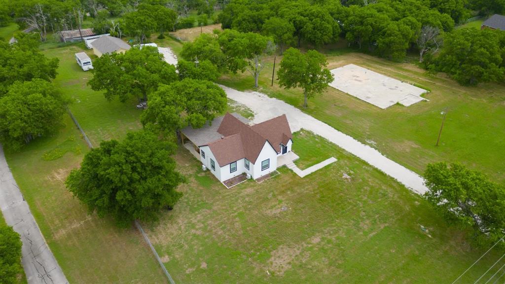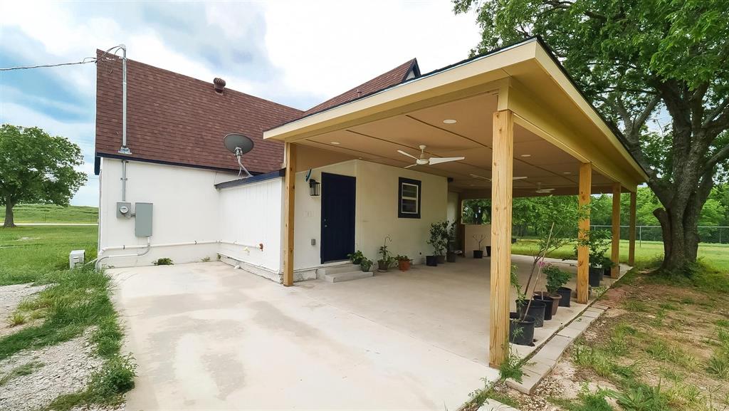MULTIPLE OFFERS RECEIVED! Perfectly situated on a generous 2.5 acre lot with mature trees & peaceful surroundings, this picturesque home features both classic & modern charm! This Farmhouse retreat has been beautifully renovated featuring 2 spacious bedrooms, 2 full bathrooms & a functional floor plan that's perfect for everyday living. The charming & cozy living room is filled with an abundance of natural light & leads to the spacious eat-in kitchen that's a Chef's delight, complete with vibrant quartz counters, plenty of cabinetry, beautiful subway tile backsplash & generous counter space for all of your cooking needs. Each bedroom also provides a comfortable retreat. The Primary bedroom includes an ensuite bath featuring a walk-in closet, single sink vanity & a stunning walk-in shower. Other features & upgrades completed in 2024 include fresh exterior paint, new windows, new flooring throughout, new insulation, new ss appliances, new cabinetry, new interior & exterior doors, new electrical & new plumbing throughout, along with upgraded heating. This property also includes a sep laundry room, private well water & a massive 24x46 detached garage providing lots of storage & workspace, along with an extended driveway that's perfect for multiple vehicles. This beautiful home offers peace, privacy & beautiful sunsets with modern living & a touch of Texas Charm! The extended covered patio provides peaceful views of rural tranquility & is perfect for outdoor gatherings or quite country living. The ample outdoor space allows you to create your own backyard retreat with room for all of your outdoor activities & gardening aspirations. Despite it's tranquil setting, this property is conveniently located next to nearby towns, offering easy access to shopping, dining, schools & other amenities! This property also includes a concrete slab with plumbing rough along with complete building plans for added convenience, adding exceptional value! NO HOA!