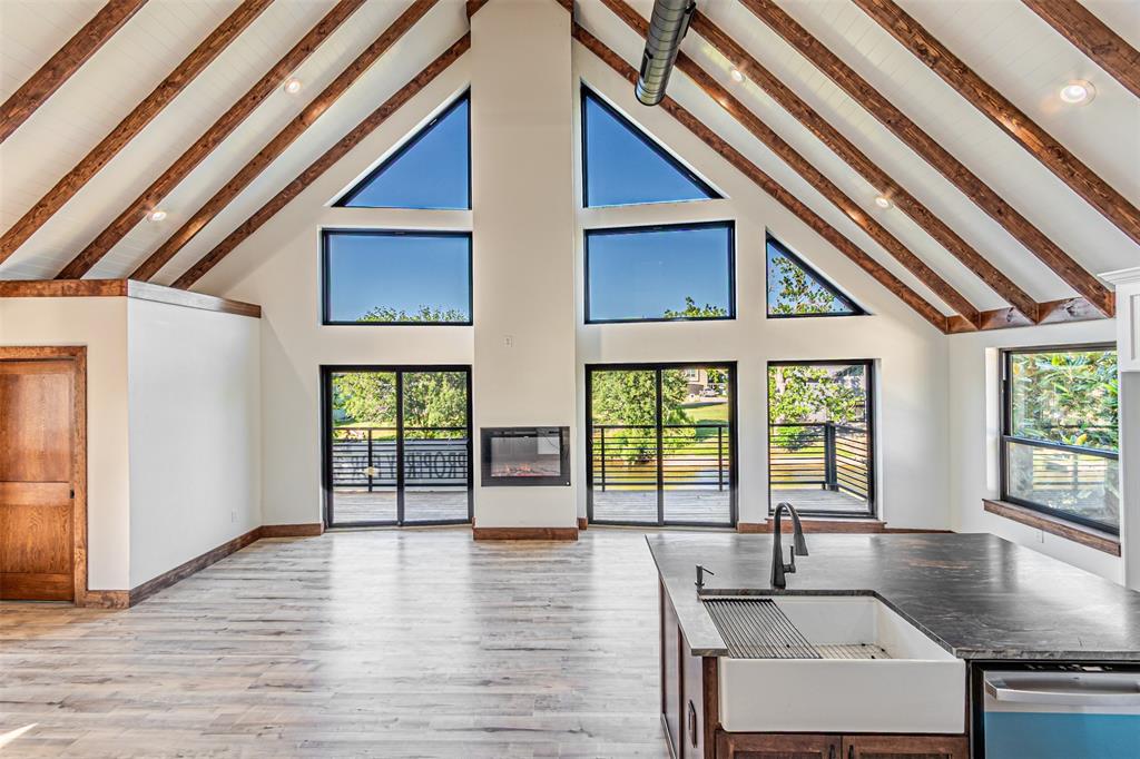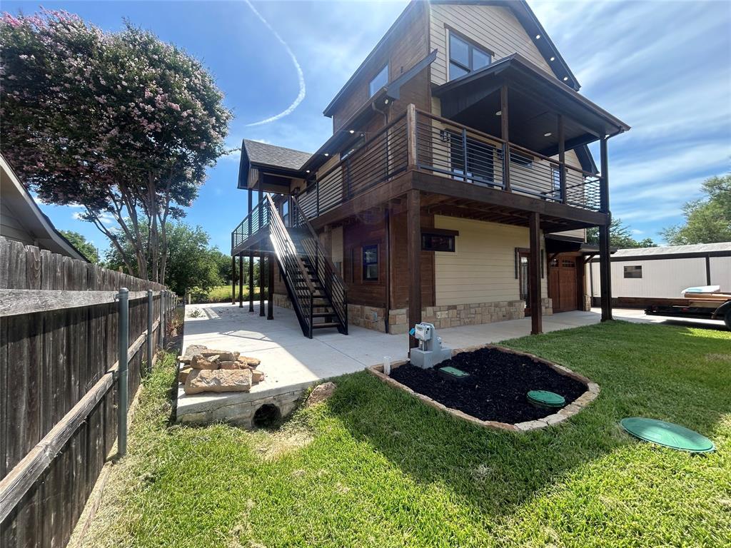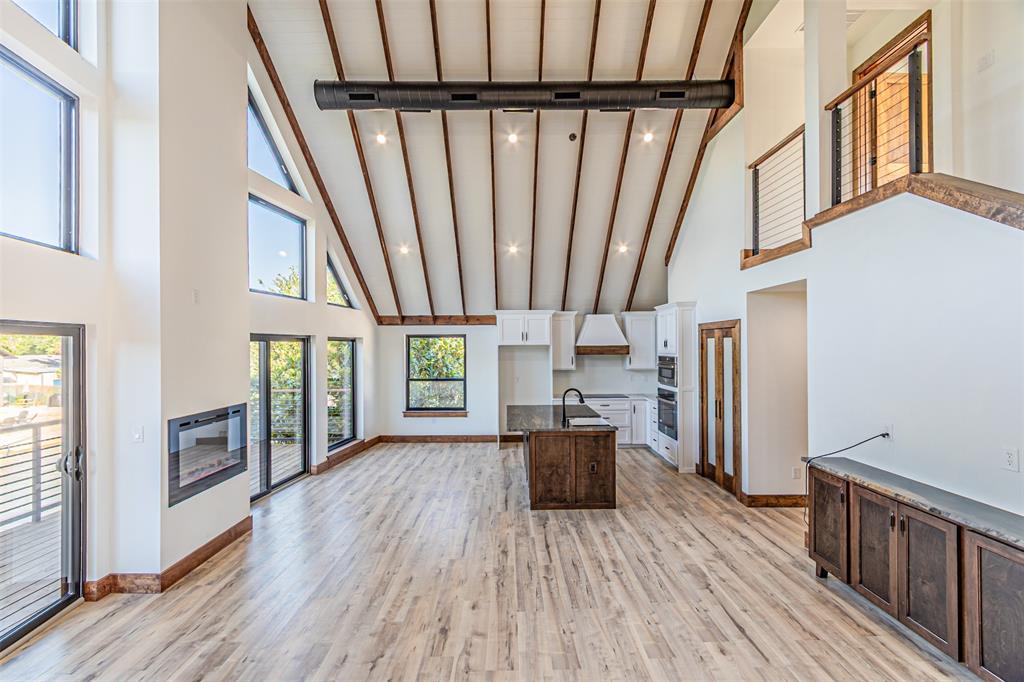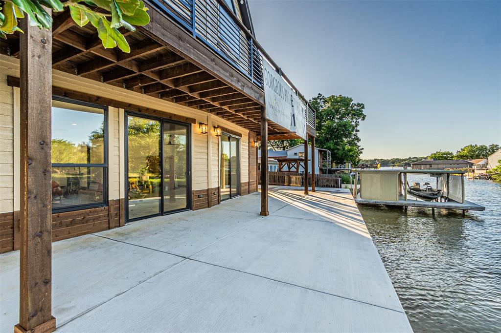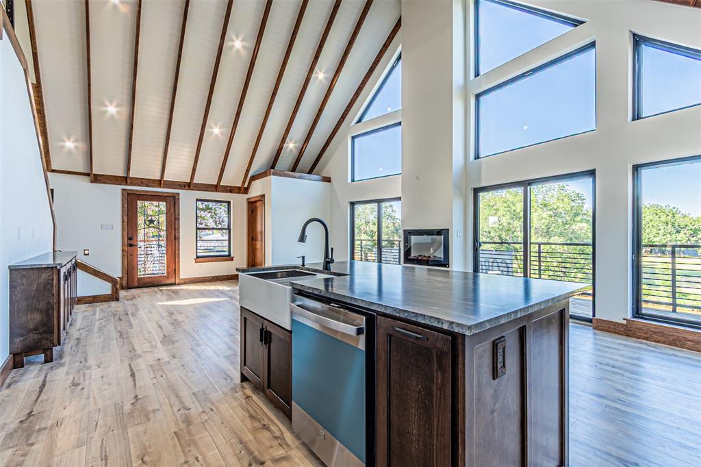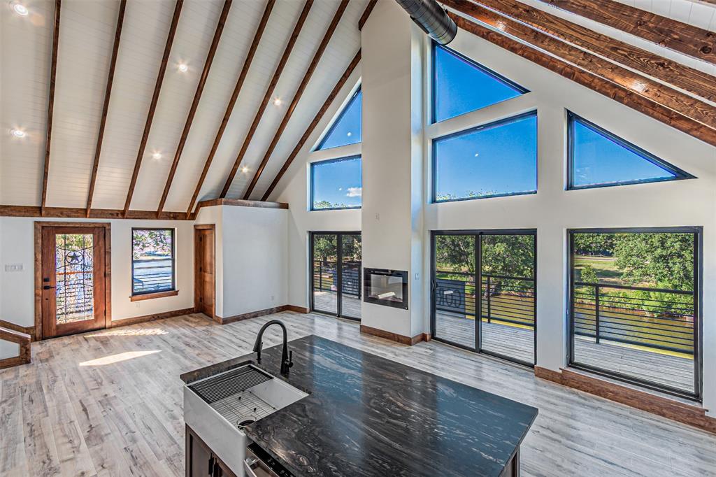 High-end finishes thuout, including high-end Pergo flooring, granite & quartz countertops, custom stain-grade wooden ceiling beams & ceiling woodwork. Gourmet kitchen, featuring stainless steel appliances, oven & convection-microwave oven, 36in drop-in cooktop, 36 in custom vent hood 26-ft ceilings in living area w an upgraded drop-in fireplace, room for a flat-screen TV. 5 sliding glass doors & 27 black-on-black windows for unobstructed lake views & natural light. 3rd Floor Luxury Retreat w High ceilings & stunning woodwork. Custom spa-like bathroom w brushed gold fixtures, double-sink vanity, exceptional tile work on floors, walls, & ceiling High-end wooden ceiling fan. Concreted extra parking. St. Augustine sod, Gutters & lrg culvert for proper drainage. 3 quarter wrap-around porch with gorgeous lake views. Built with attention to detail, ensuring a home that's perfect for luxurious lakeside living. Thi home IS AN **exceptional property** combines the best of lakefront living & high-end craftsmanship, offering a truly **unique opportunity** for those seeking a **luxurious, one-of-a-kind home** on Lake Granbury.